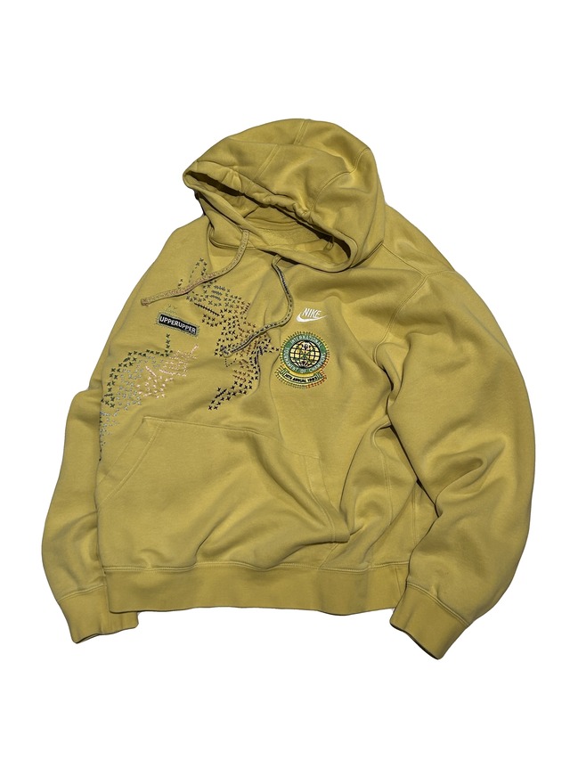 ご覧いただきありがとうございます!こちらのUPRUPR upcycle hoodie XLは、2021年製のNIKEパーカーを使用したアップサイクル品です。フリースタイルの刺し子刺繍によるカラフルなステッチとビンテージワッペンが印象的で、フェードがかかった檸檬色のボディと絶妙な配色のワッペンが一体となり、ユニークなスタイルを演出します。フード紐のステッチも目を惹くデザインとなっています。ボディのシルエットも適度なゆるさと質感で、肌触りも快適です。 ■ カラー/サイズ/バリエーション ・XLサイズで、ややゆったりとしたシルエットが特徴です。 ・平置き採寸 身幅:69 cm 着丈:68 cm 肩幅:55 cm 袖ぐり:32 cm 袖丈:64 cm ■ 素材/製造国 ・2021年製NIKEのパーカーを使用しています。 ■ 状態 ・経年による風合いの変化や多少の使用感はありますが、全体的に良好な状態です。 ■ お手入れ/取り扱い注意事項 ・洗濯ネットの使用と水洗いを推奨します。乾燥機のご使用は避けてください。 ■ 発送・注文に関する情報や注意事項 ・ご注文確認後、迅速に発送いたしますので、安心してお待ちください。 商品に関するご質問や不明点がございましたら、ショップのお問い合わせからお気軽にお知らせください。