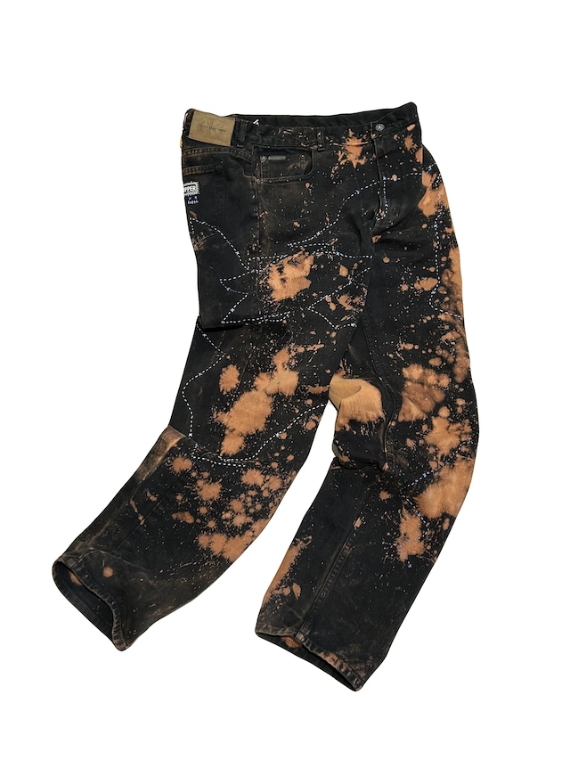ご覧いただきありがとうございます!こちらのUPRUPR upcycle jeans W38は、2000年代のカルバンクラインジーンズを使用したアップサイクル品です。大胆かつ巧妙に変色加工を施し、フリースタイルの刺し子ステッチで装飾を施したユニークなデザインが特徴です。当時感あふれるシルエットの定番ブランド品を、履いた時に気分が上がる一本に仕上げています。 ■ カラー/サイズ/バリエーション ・W38サイズで、リラックスしたシルエットが魅力です。 ・平置き採寸 ウエスト:91 cm / 36 in 股下:84 cm / 33 in 股上:30 cm もも幅:35 cm 裾幅:20 cm ■ 素材/製造国 ・上質なヘビーオンスのデニム素材を使用し、快適な履き心地。 ■ 状態 ・古着を使用しているため、経年による風合いの変化やユニークな表情があり、これも個性としてお楽しみいただけます。 ■ お手入れ/取り扱い注意事項 ・洗濯ネットのご使用と、水洗いを推奨します。色移りにご注意ください。乾燥機のご使用はお避けください。 ■ 発送・注文に関する情報や注意事項 ・ご注文確認後、迅速に発送いたしますので、安心してお待ちください。 商品に関するご質問や不明点がございましたら、ショップのお問い合わせからお気軽にお知らせください。