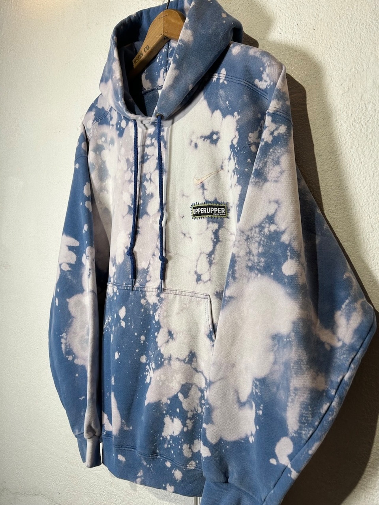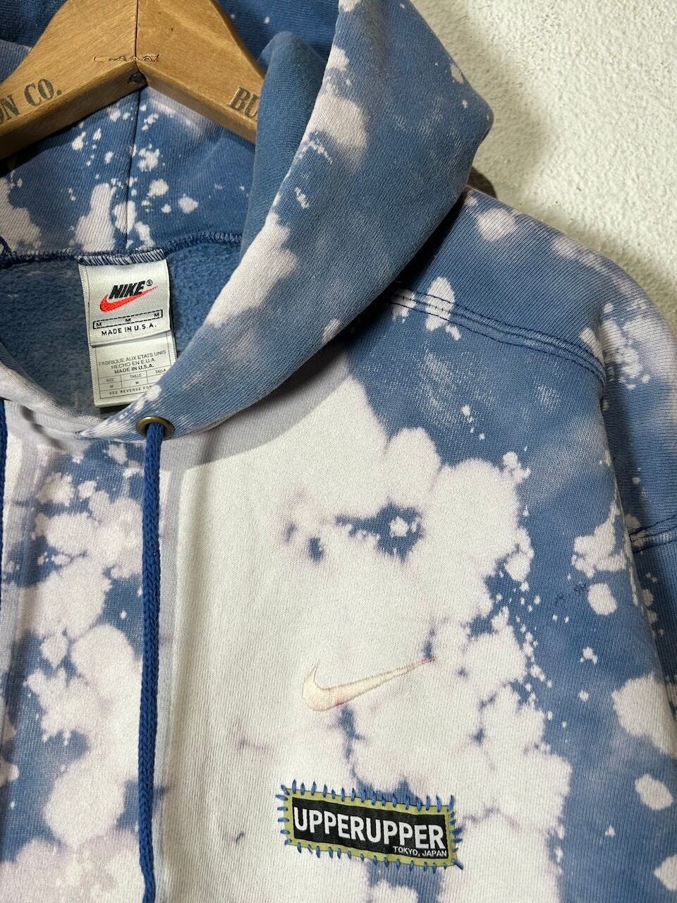 クラシックで魅力的なデザインの、UPRUPR upcycle hoodie Mをぜひご覧ください。このフーディは、90年代のアメリカ製NIKEの古着ボディを使用し、手染め加工を施した独特な雰囲気を持つアップサイクル品です。無造作な染まり具合と深みのある色合いが特徴で、上品さと個性を持ち合わせた一品です!手縫い刺繍で装飾したupperupperタグがオンリーワン&エコなスローファッションの証となっています。