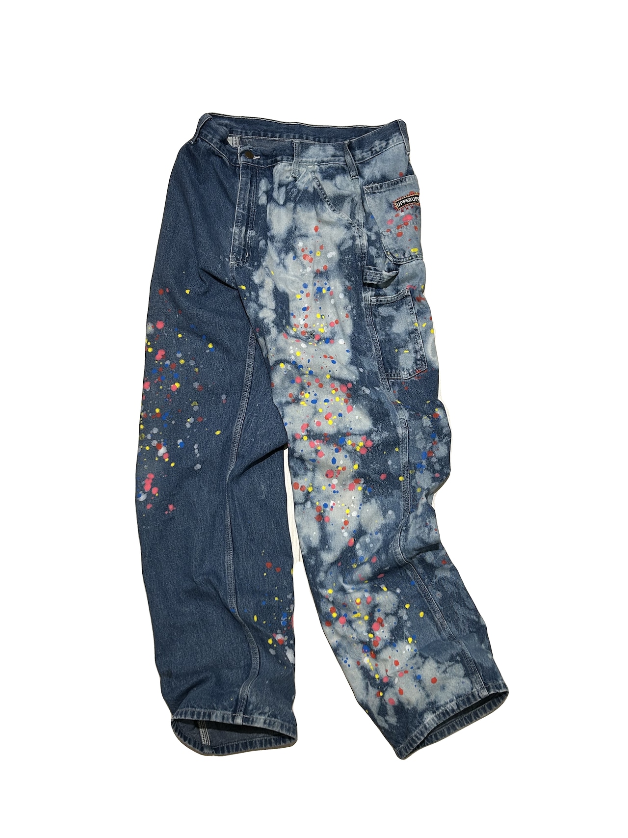 ご覧いただきありがとうございます!こちらのUPRUPR upcycle jeans W36は、2000年代の上質なCarhartt古着ボディを使用した特別なアップサイクル品です。手染め後に施したペイント加工でカラフルに彩り、無骨なワークウェアにアート感を添えた一本。シルエットも太めで今っぽさも持ち合わせるレトロな雰囲気の作品です!