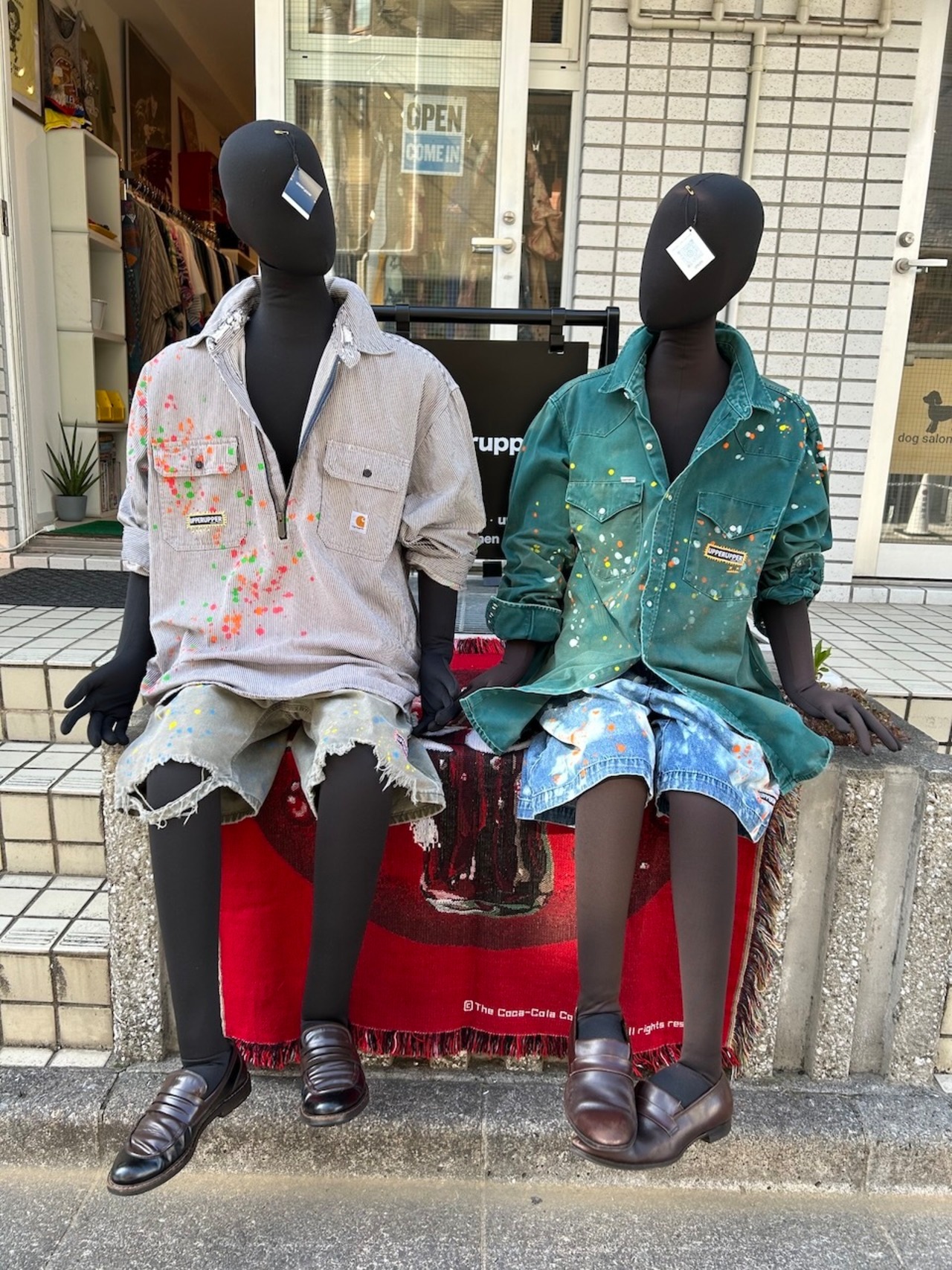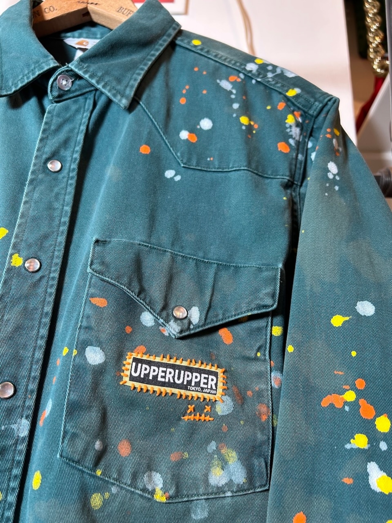 ご覧いただきありがとうございます!こちらのUPRUPR upcycle shirt Lは、90年代の上質なCarhartt古着ボディを使用した特別なアップサイクル品です。うっすら色むら加工後に施したペイントデザインでカラフルに彩り、無骨でウェスタンなワークウェアにアート感を添えた一本となっております!シルエットは程良いフィット感を持ち、割とシュッとするイメージ。