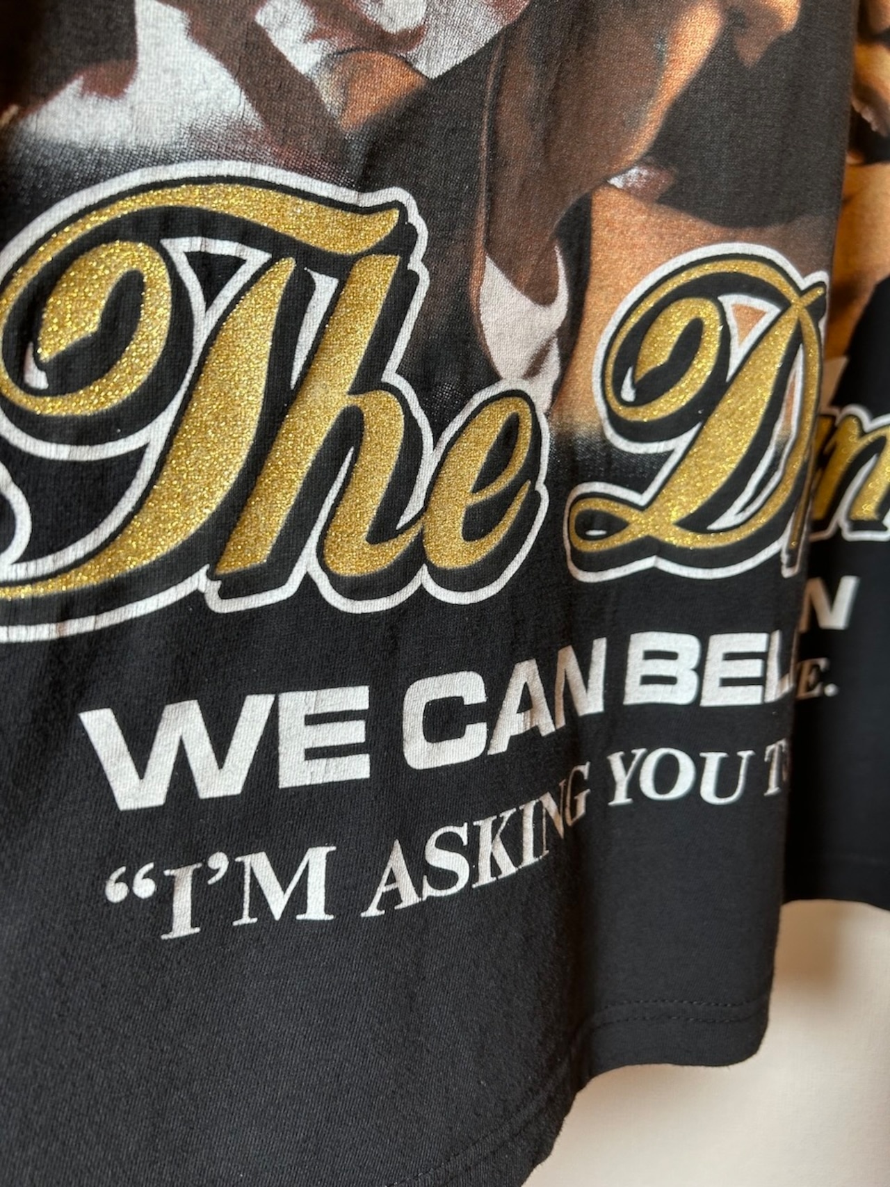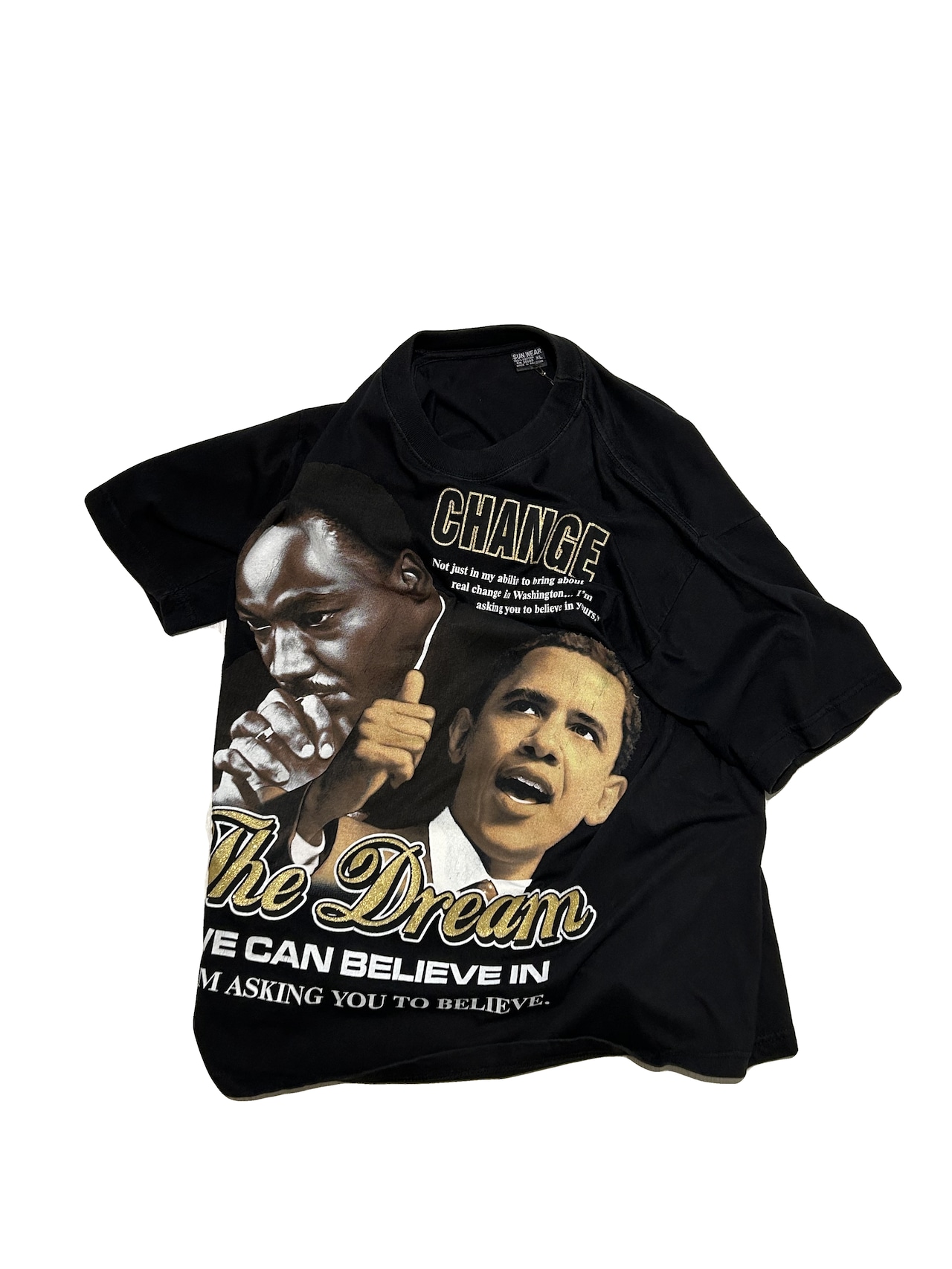 ご覧いただきありがとうございます!こちらの00's King & Obama Tee XLは、2000年代に生まれた特別な一着です。オバマ大統領とキング牧師の貴重なコラボレーションデザインが特徴で、彼らの偉大なメッセージを体現しています!程よい厚みがあり、パキスタンコットン製のボディは着心地抜群で、強いメッセージを持つ一枚を通して、あなたのスタイルを際立たせます。
