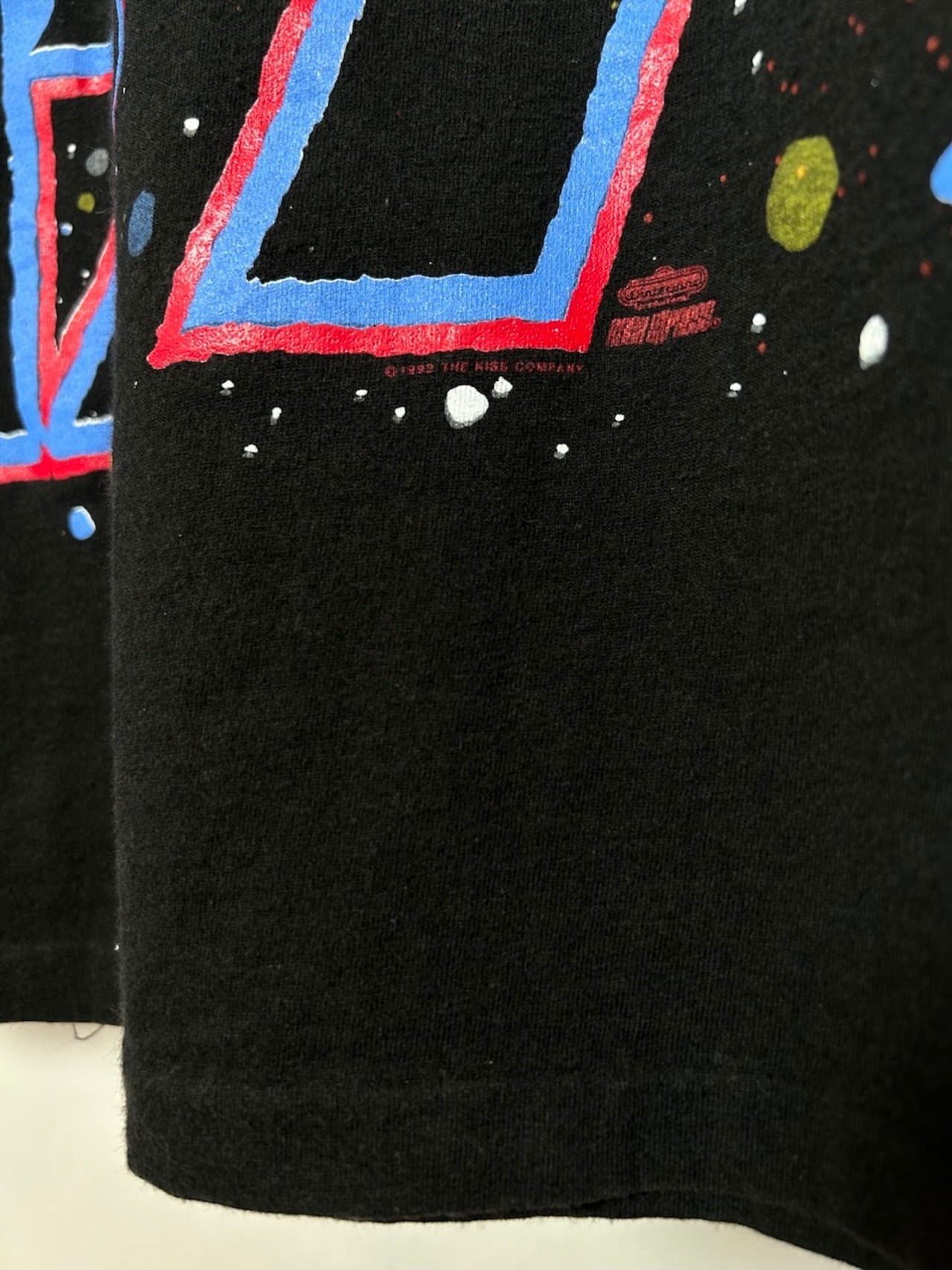 ご覧いただきありがとうございます!こちらの1992 Kiss cutoff Tee XLは、1992年製の特別なビンテージロックTシャツです。首元と袖がカットオフされたロックンロールを全面に押し出したアイテムで、当時の熱気を感じさせる一着です!
