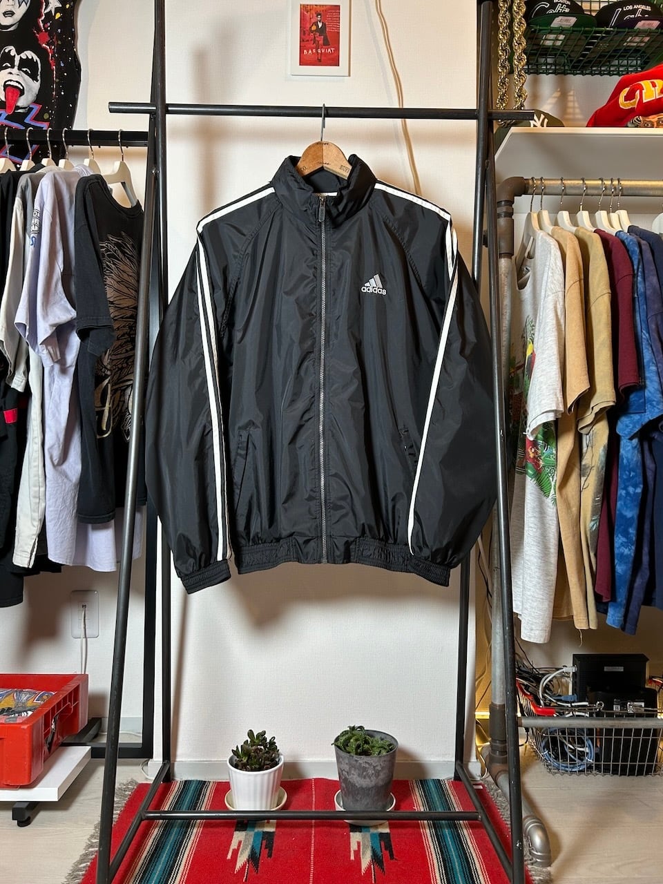 ご覧いただきありがとうございます!こちらの90's adidas jacket Mは、90年代のアディダス製ナイロンジャケットです。シンプルでクラシックなデザインが魅力で、状態も良好、ヘビロテ必至の有能ジャケットです!