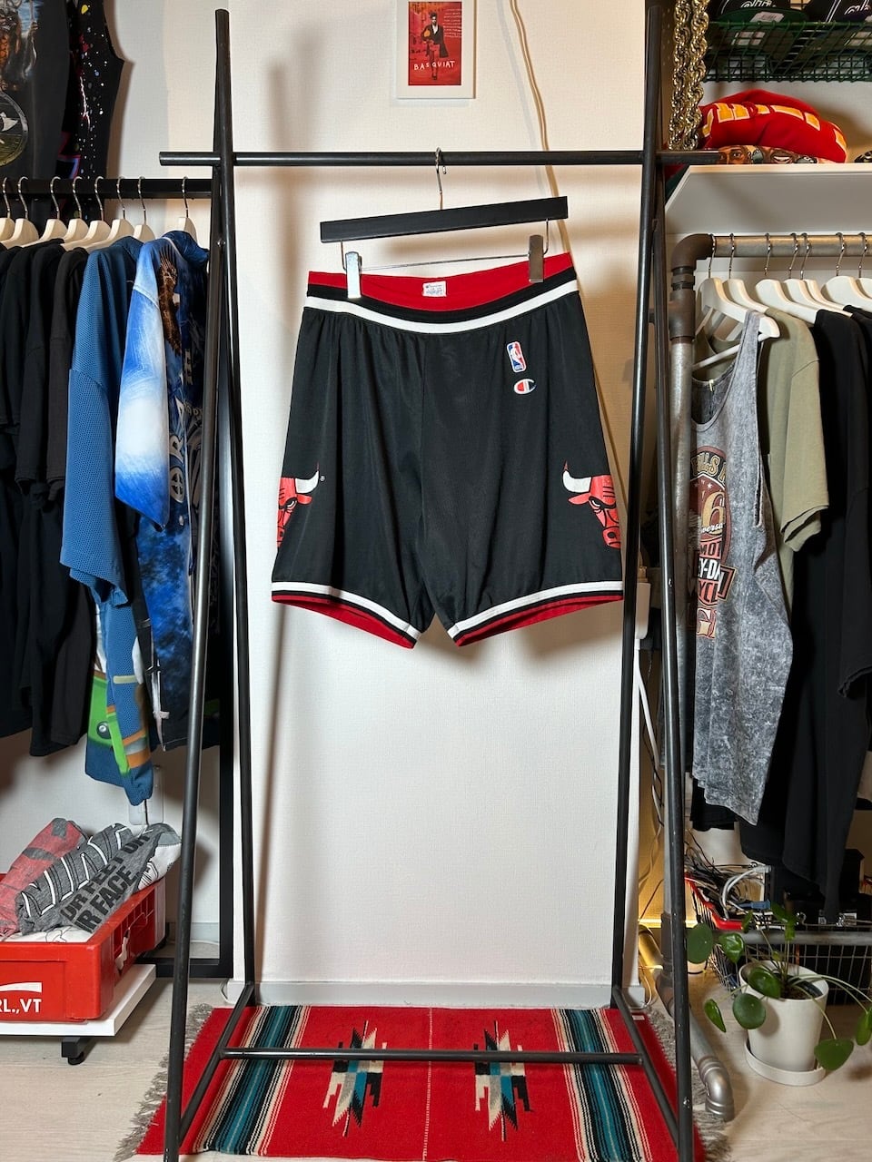 ご覧いただきありがとうございます!こちらの90's Bulls shorts Lは、90年代アメリカ製のシカゴブルズのゲームショーツです。この時代のゲームショーツは非常にレアです。ストリートファッションにも合わせやすく、白Tや長袖とも絶妙にマッチし、またはセットアップで合わせたりと、さまざまなスタイルを楽しむことができます。ウエストゴムには多少の伸びが見られますが、オリジナルのストレッチ紐付きでウエスト調節が可能です。