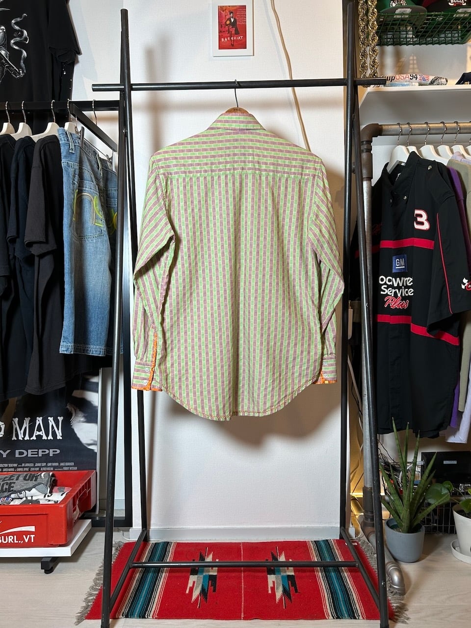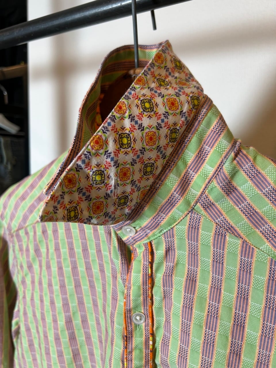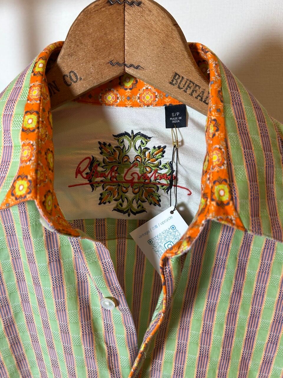 ご覧いただきありがとうございます!こちらの00's Rebert Graham shirt Sは、2000年代製のロバートグラハムのシャツで、こだわりの詰まった一枚です。独特な織りのジャガード生地で、鮮やかなカラーリングのストライプに、裏地にもこだわりが現れ、ロゴ刺繍と共に「knowladge, wisdom, truth」の刺繍も施されており、特別感あふれるデザイン。普段使いから華やかなシーンまで、幅広く活躍してくれること間違いなしです。