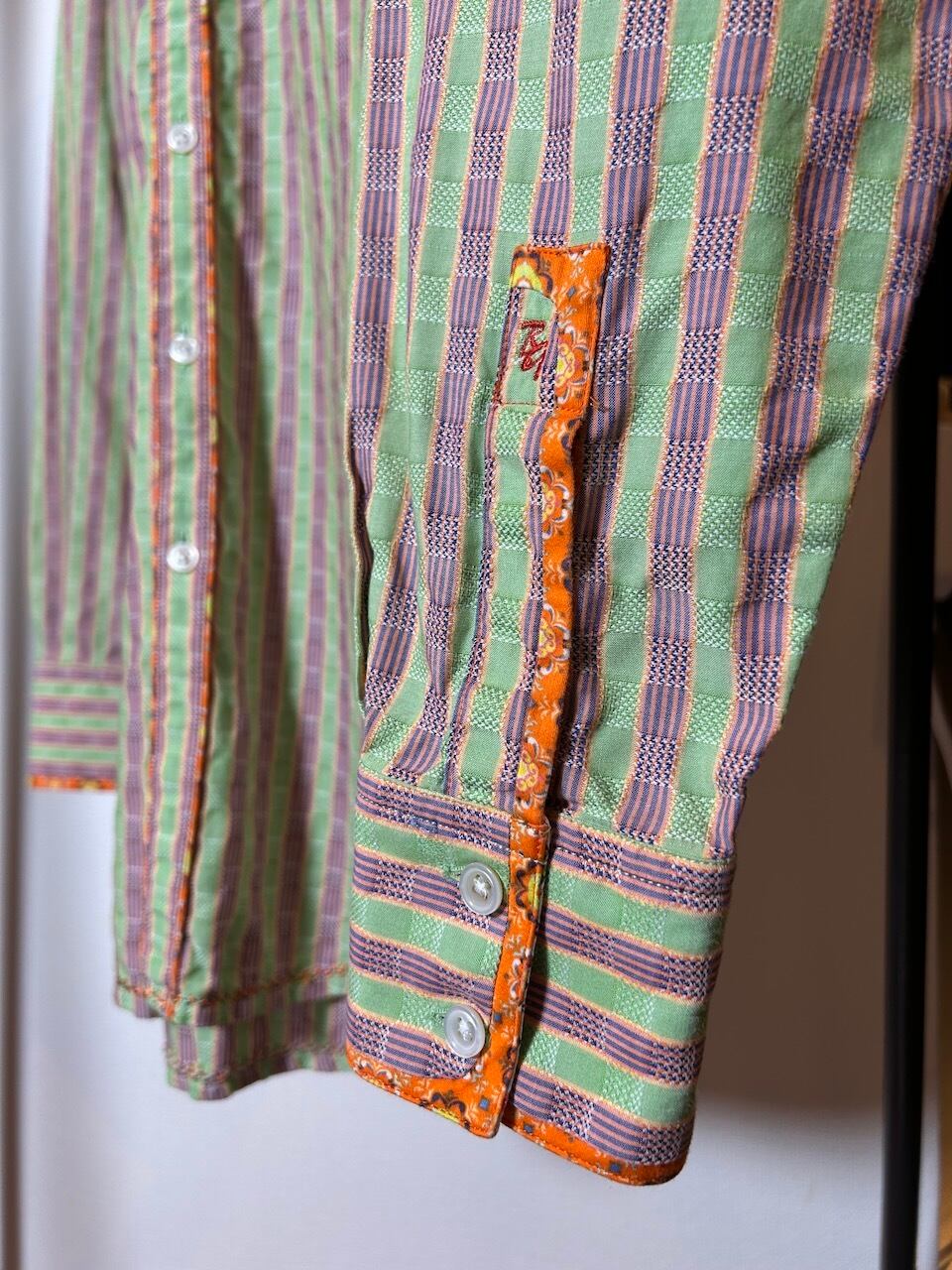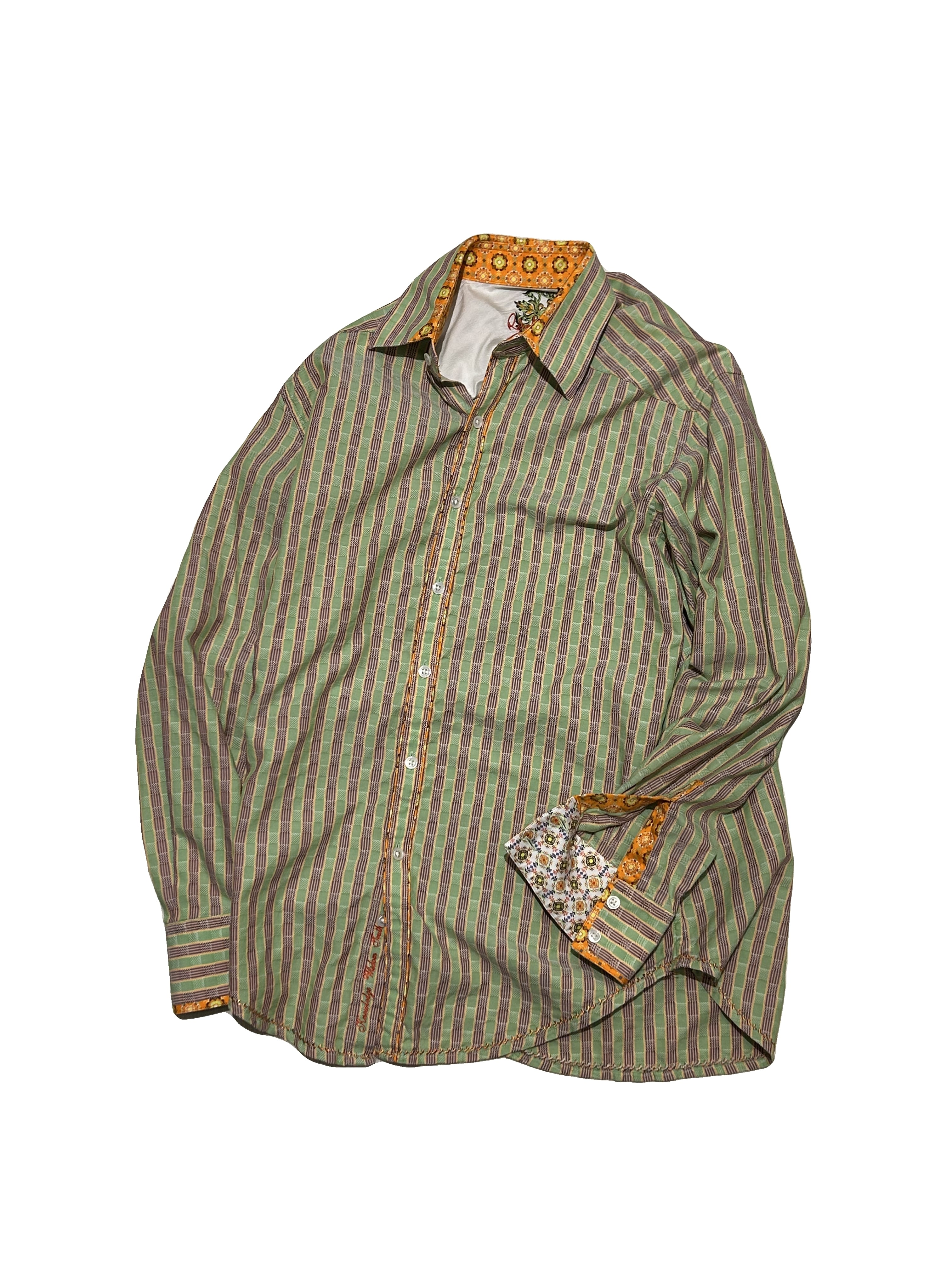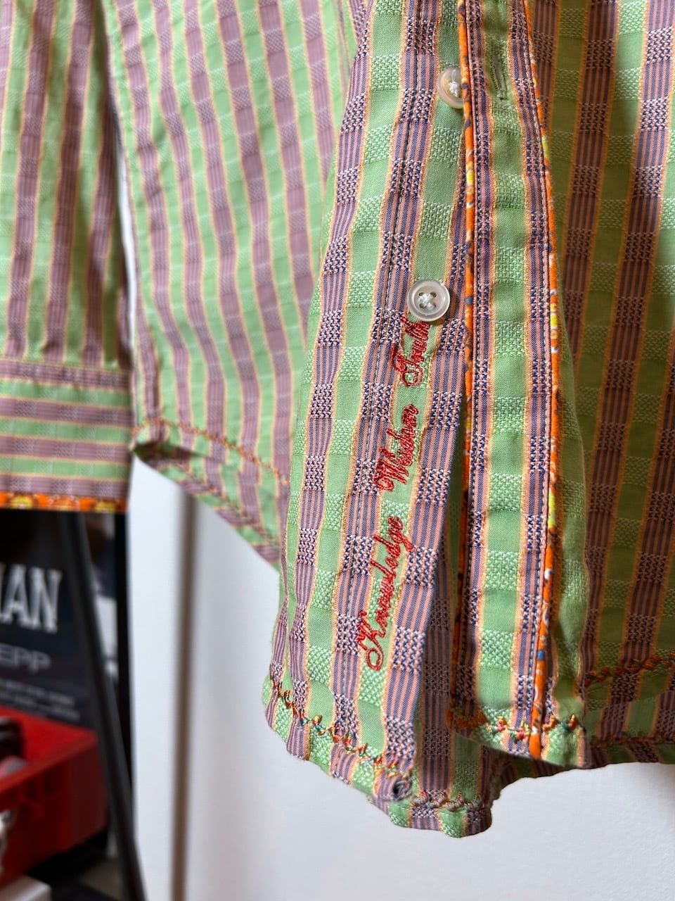 ご覧いただきありがとうございます!こちらの00's Rebert Graham shirt Sは、2000年代製のロバートグラハムのシャツで、こだわりの詰まった一枚です。独特な織りのジャガード生地で、鮮やかなカラーリングのストライプに、裏地にもこだわりが現れ、ロゴ刺繍と共に「knowladge, wisdom, truth」の刺繍も施されており、特別感あふれるデザイン。普段使いから華やかなシーンまで、幅広く活躍してくれること間違いなしです。