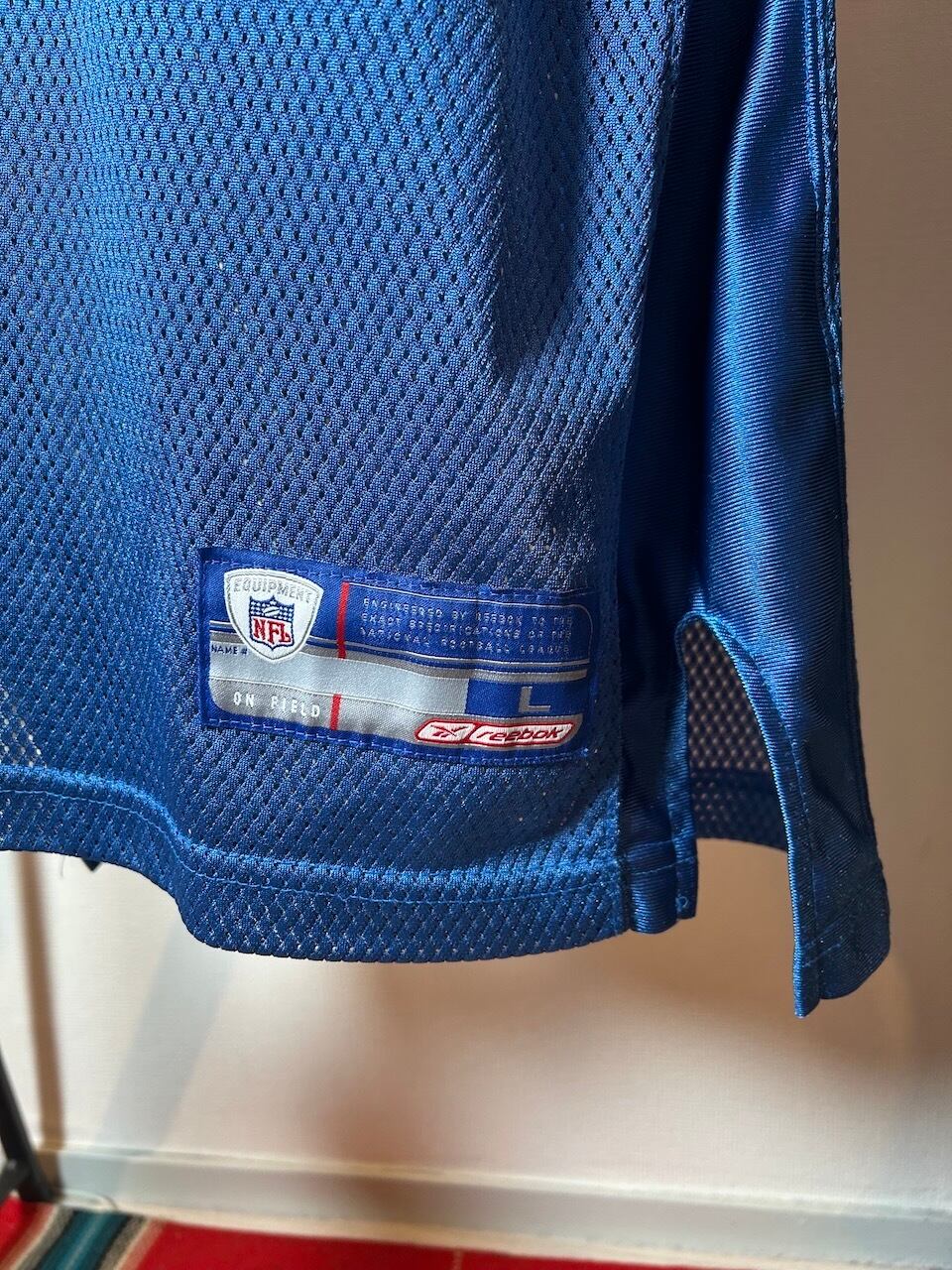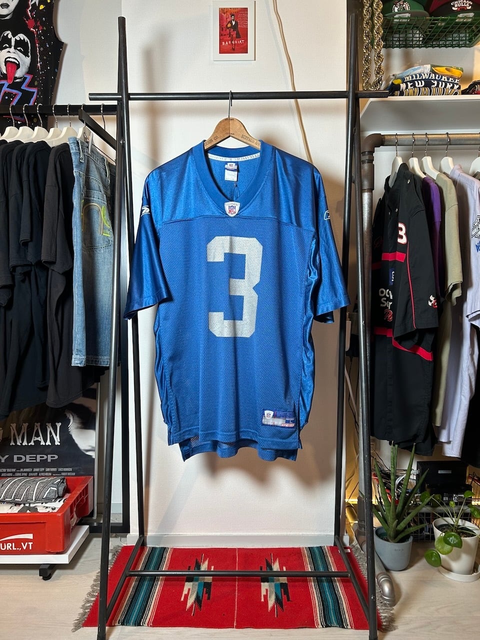ご覧いただきありがとうございます!こちらの00's Lions jersey Lは、2000年代初期にリーボック製で作られたデトロイトライオンズ、ジョーイハリントンのゲームシャツで、柔らかなナイロン生地と大きなナンバリングが特徴の一着です。良色なチームカラーのブルーにシルバーのプリントが際立っています!
