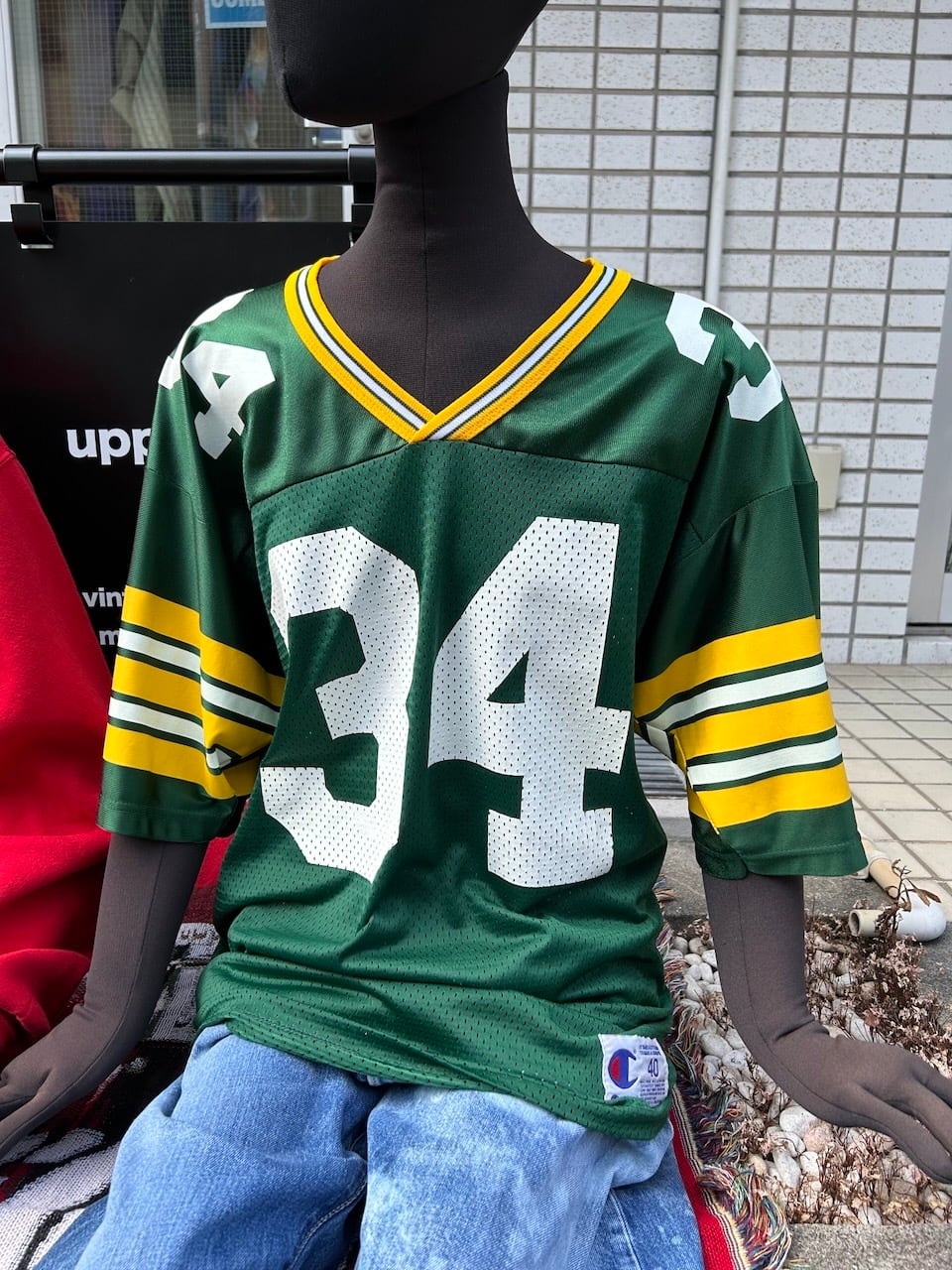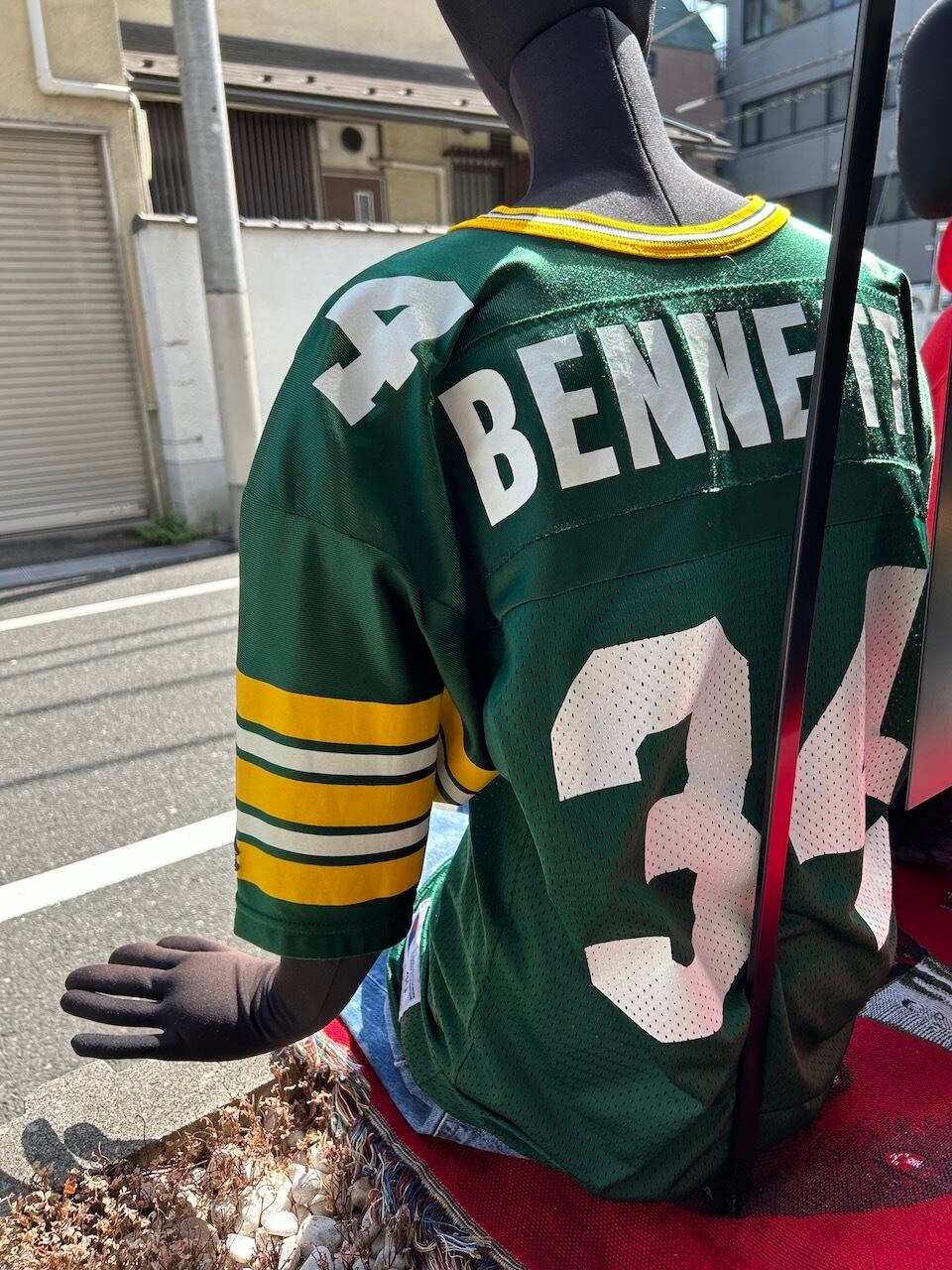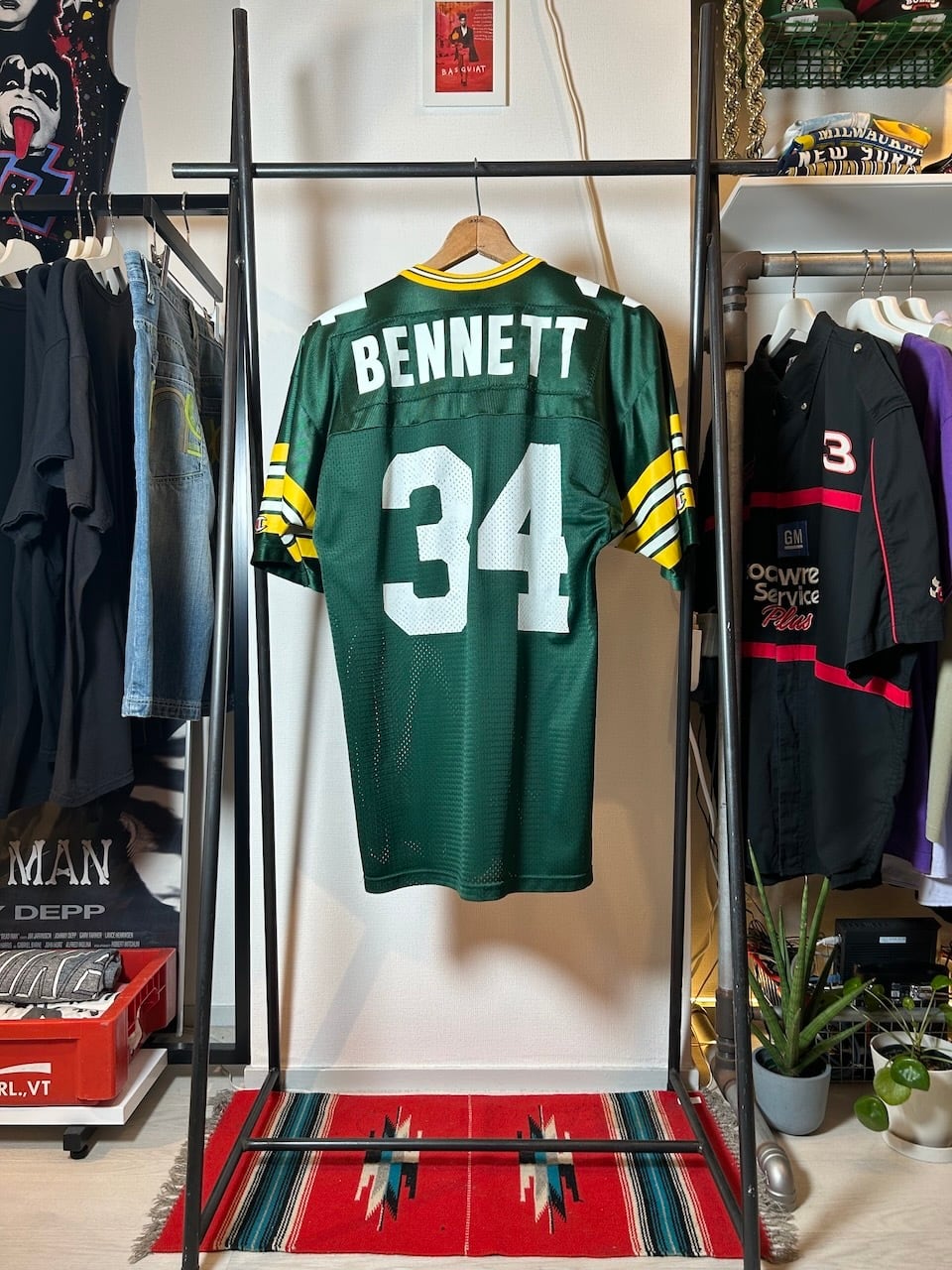 ご覧いただきありがとうございます!こちらの90's Packers jersey Mは、90年代チャンピオン製のグリーンベイパッカーズ、エドガーベネットのゲームシャツです。レトロなカラーリングとそのシルエットが当時感に溢れる魅力的な一着です。
