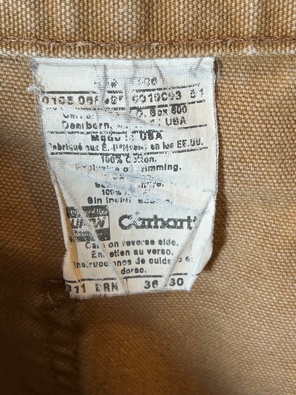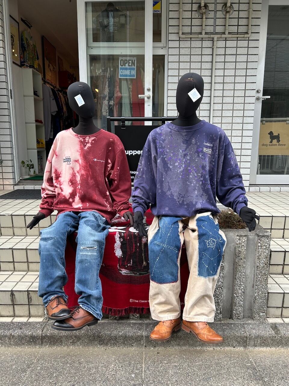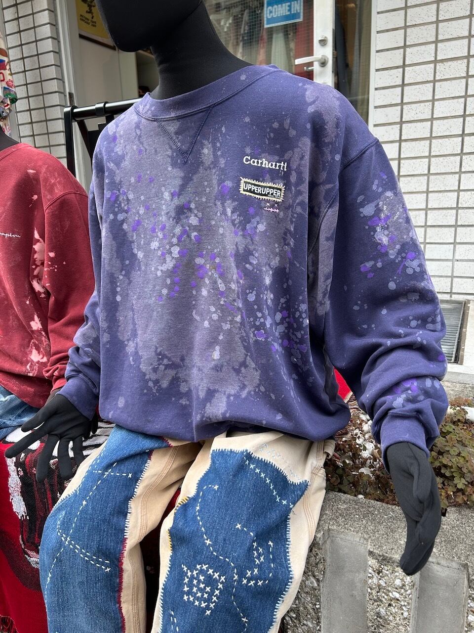 ご覧いただきありがとうございます!こちらのUPRUPR upcycle pants W36は、良く履き込まれた2000年代アメリカ製のCarharttダックパンツに、70年代の色落ちデニム生地を膝周辺に大胆に当て、手縫いで装飾したユニークな一本です。自由に動く刺し子風の刺繍が元々の無骨な雰囲気と相まって、独特なアート感を放つアイテムです。白いシャツと合わせて大人っぽく、またはパーカーと合わせてカジュアルにと、幅広く楽しめるアイテムです。