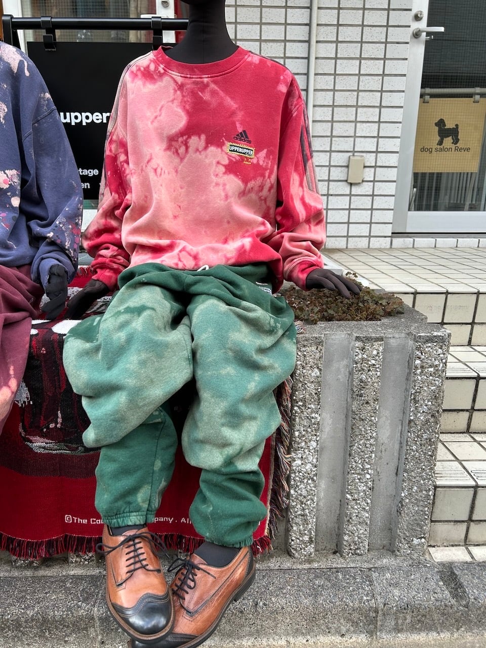 ご覧いただきありがとうございます!こちらのUPRUPR upcycle pants XLは、2000年代Starter製のバギーなスウェットパンツを使ったアップサイクル品です。膝周辺に大胆に施されたグラデーションのような変色加工が、アート感溢れる配色バランスを実現しています。バギーなシルエットは、様々なスタイルと合わせやすく、シンプルなトップスとの相性もとても良いアイテムです。