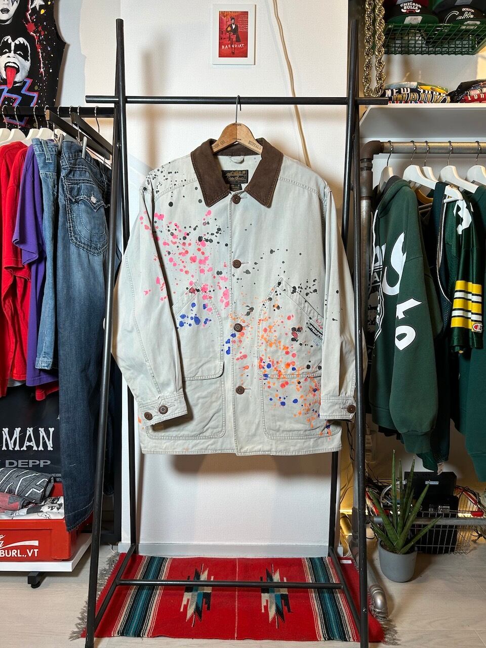 ご覧いただきありがとうございます!こちらのUPRUPR upcycle jacket Mは、90年代製エディバウアーのハンティングジャケットを使用したアップサイクル品です。クラシックなディテールやシルエットをそのままに、カラフルなペイント加工を施した一着。独特なアート感を醸し出しています!