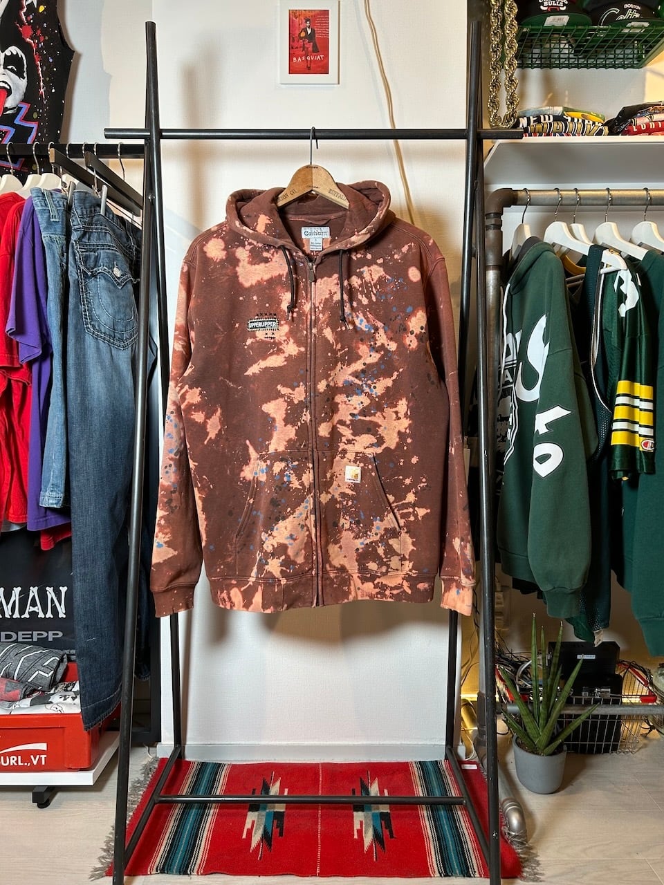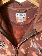 ご覧いただきありがとうございます!こちらのUPRUPR upcycle hoodie Lは、2000年代のCarharttジップパーカーを使用したアップサイクル品です。上質な生地感と程よい使用感をそのままに、変色加工とペイントで独特なデザインに仕上げています。インパクトのあるスタイルが魅力の一着です!