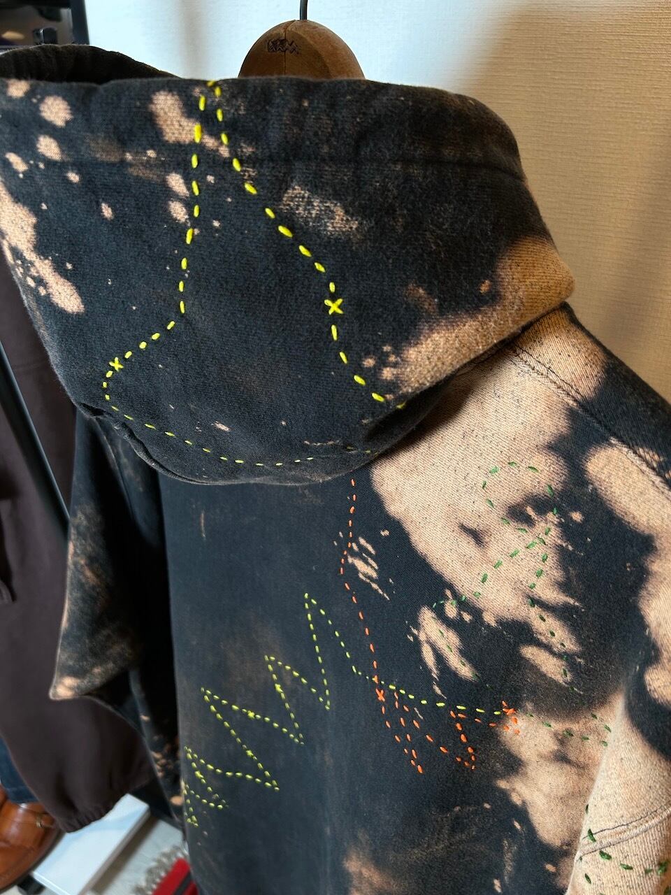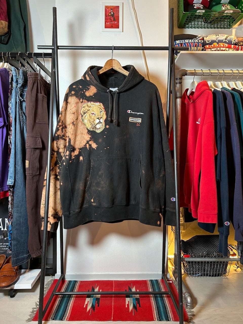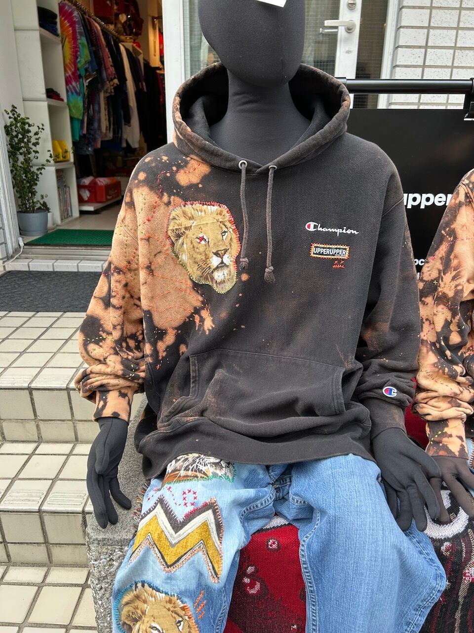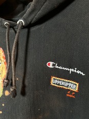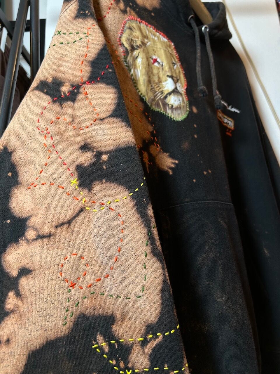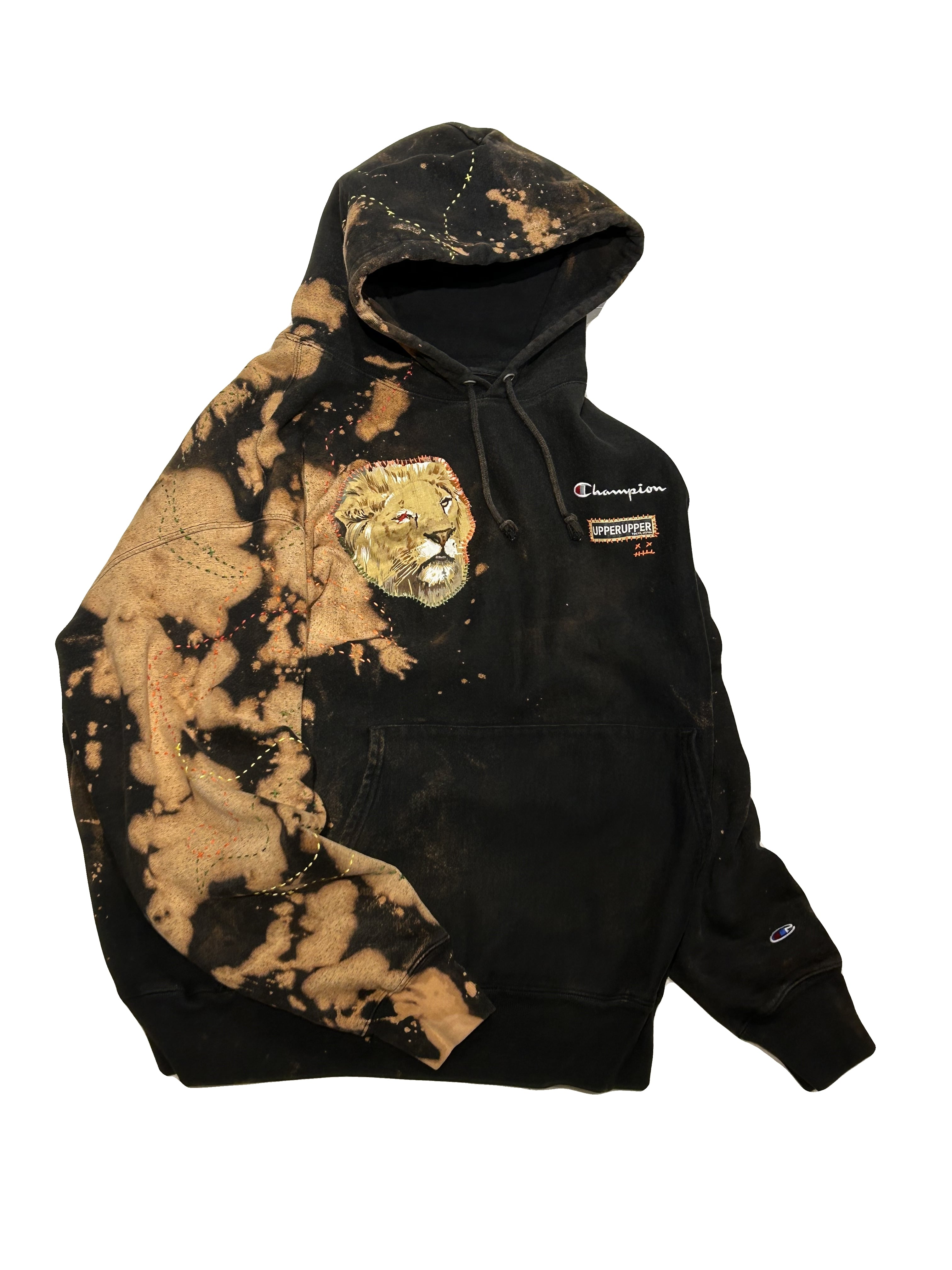 ご覧いただきありがとうございます!こちらのUPRUPR upcycle hoodie 2XLは、2010年代チャンピオンのリバースウィーブパーカーを使用したアップサイクル品です。ハンドメイドで変色加工を施し、ビンテージ生地のライオンイラストアートを手縫いで装飾し、カラフルな刺繍ステッチを縦横無尽にけけ巡らせた一着です!