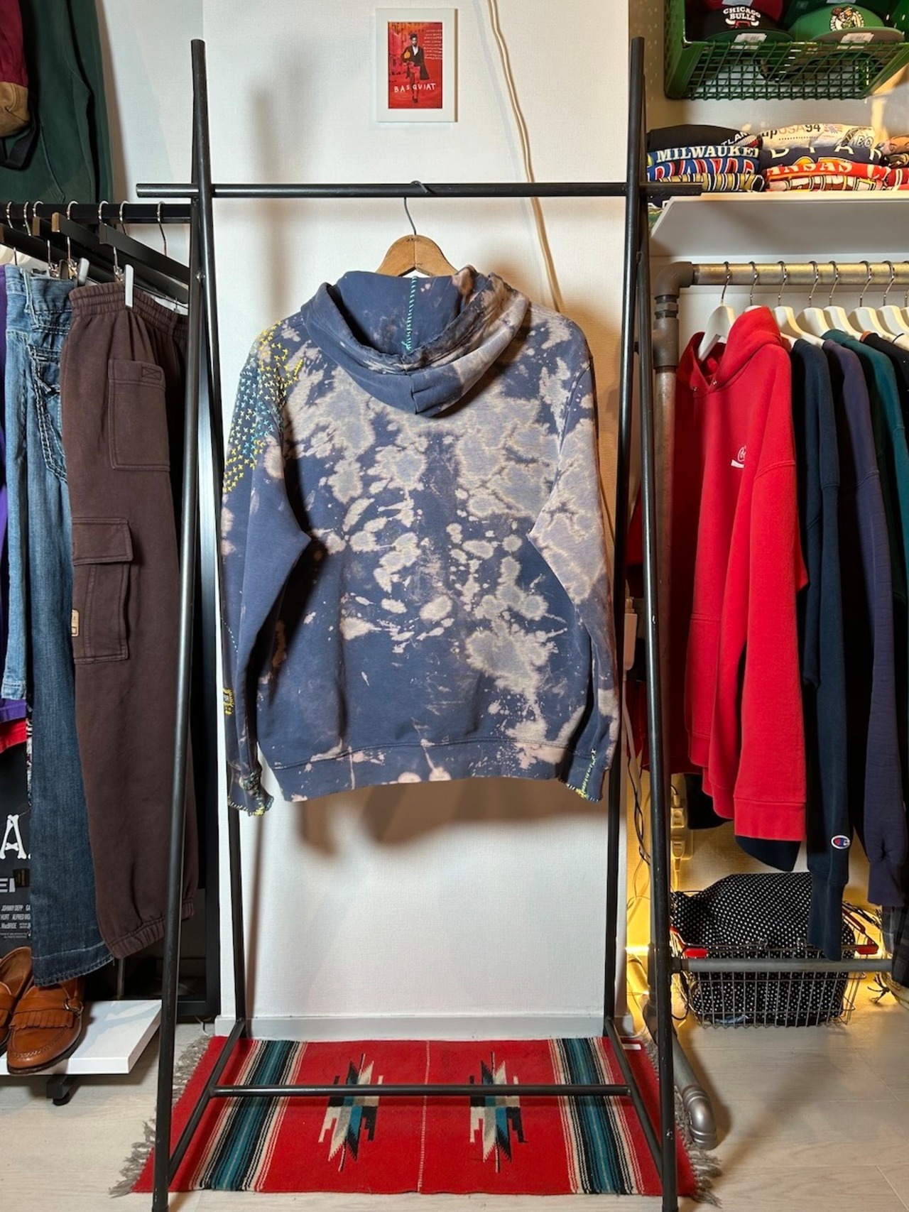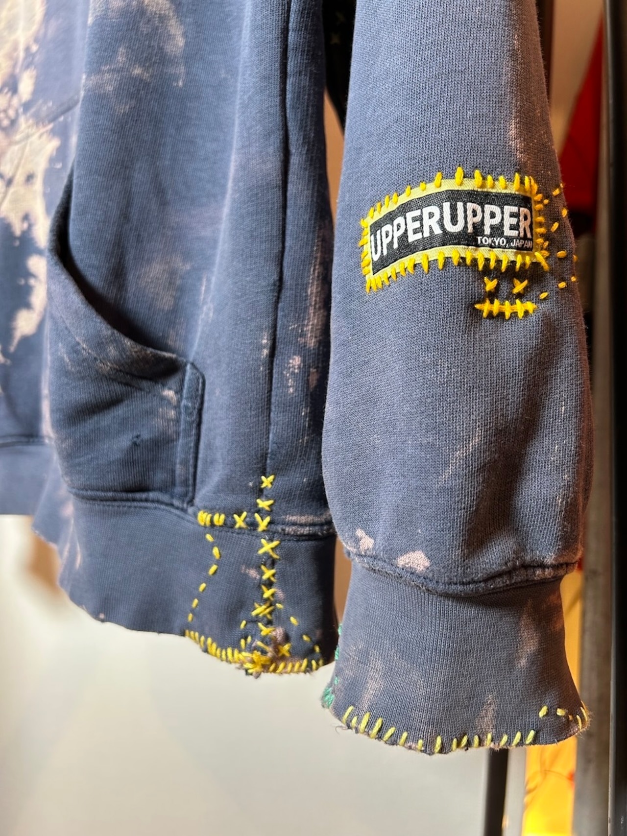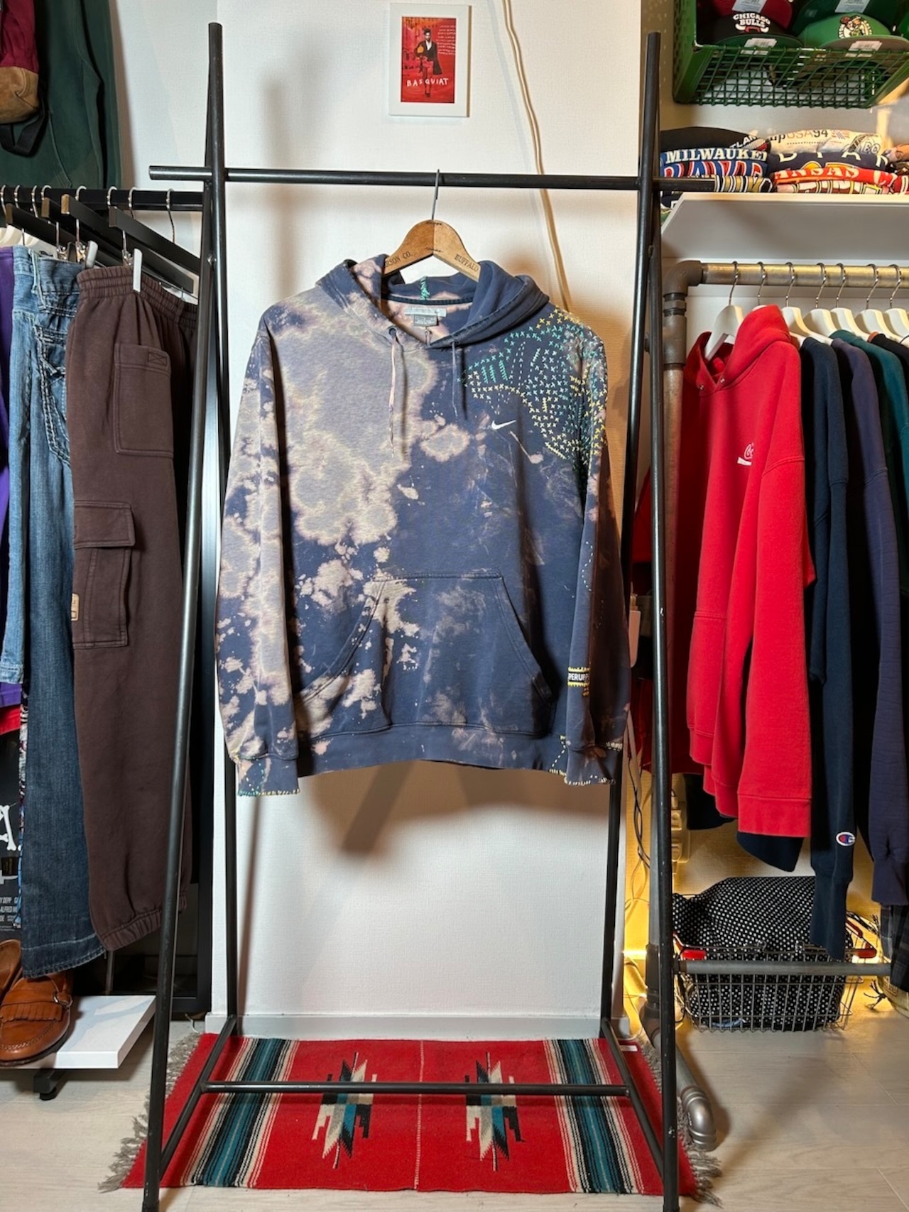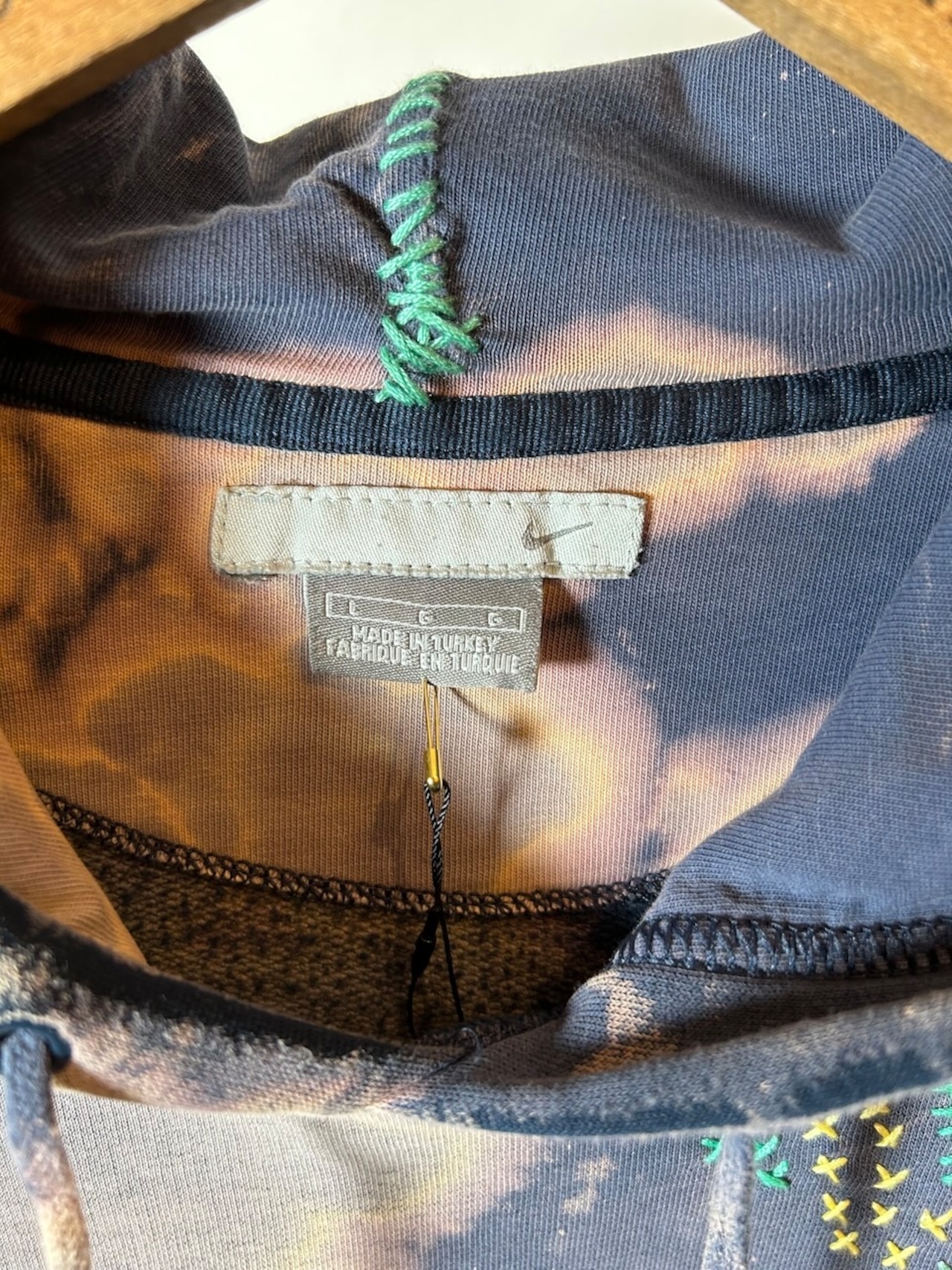 ご覧いただきありがとうございます!こちらのUPRUPR upcycle hoodie Lは、2000年代製のNIKEパーカーを使用したアップサイクル品です。ハンドメイドで施された変色加工が目を引き、刺し子を独自にアレンジした色鮮やかな刺繍ステッチとカラフルな補修が施された一着に仕上がっています。ダメージ感と手縫いの雰囲気が絶妙に調和し、個性的なスタイルを楽しめるアイテムです!