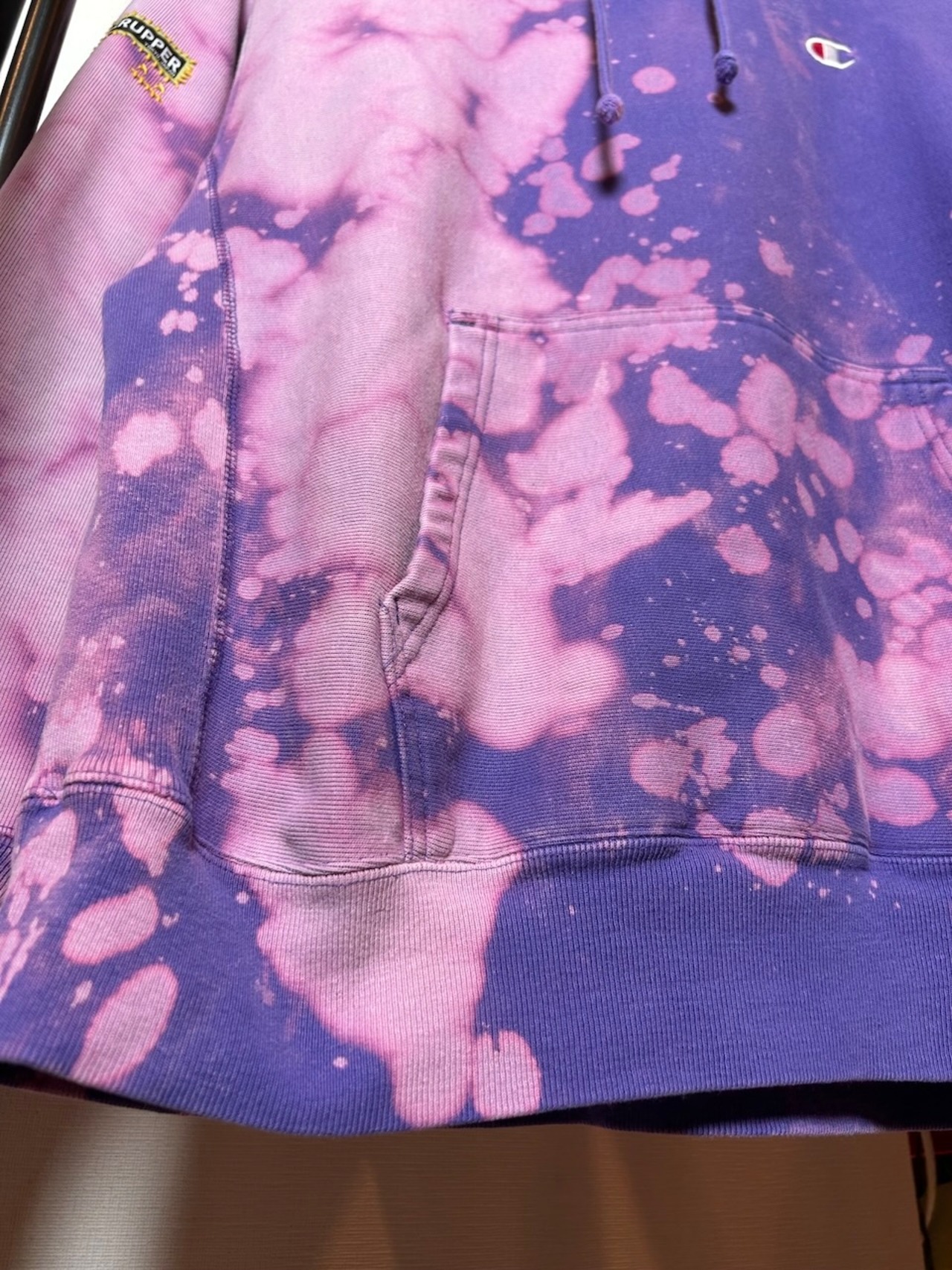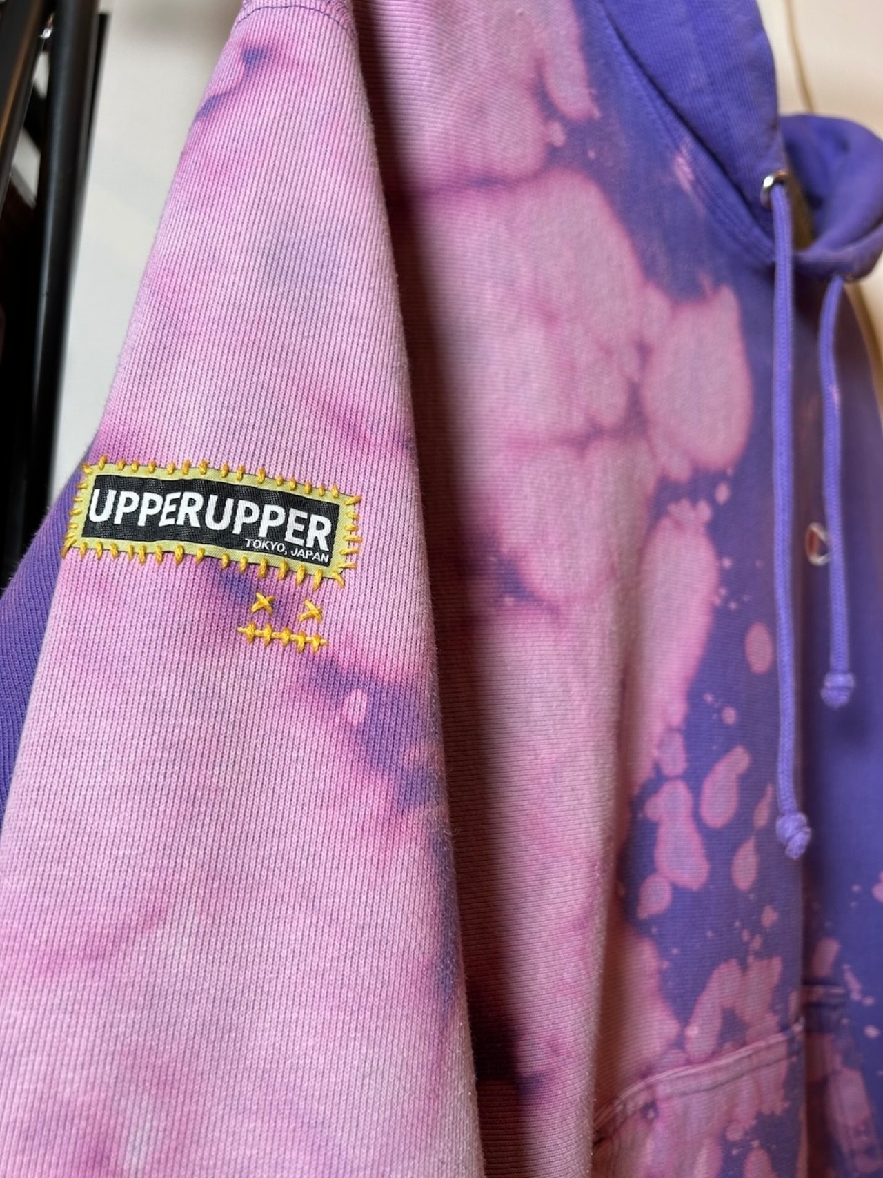 ご覧いただきありがとうございます!こちらのUPRUPR upcycle hoodie XLは、2010年代製のチャンピオンリバースウィーブパーカーを使用したアップサイクル品です。ハンドメイドで変色加工を施し、絶妙な配色バランスに仕上げました。手縫いで装飾したロゴパッチがアクセントとなって、個性あり魅力的な一着に仕上がっています!