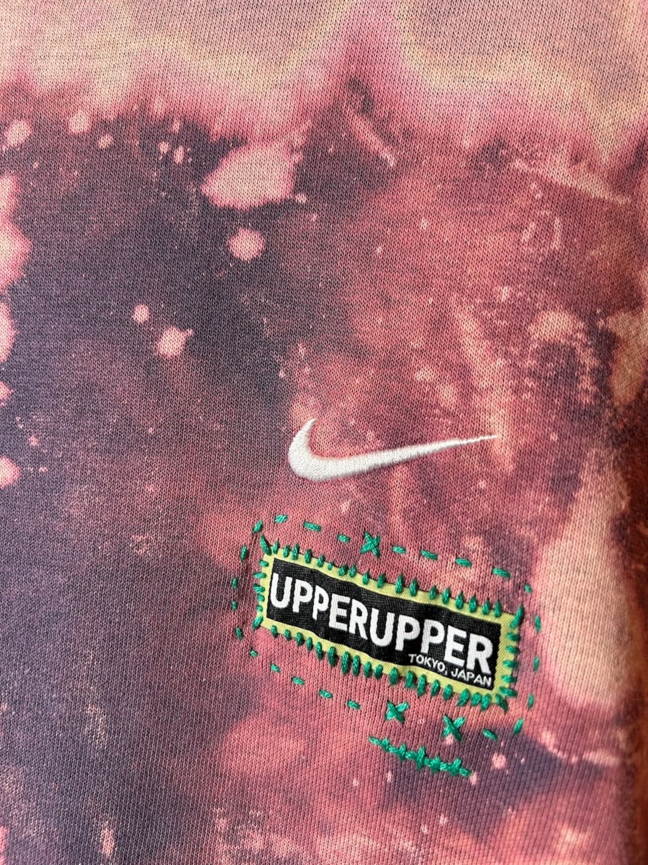 ご覧いただきありがとうございます!こちらのUPRUPR upcycle hoodie Lは、2000年代初期製のNIKEパーカーを使用したアップサイクル品です。ハンドメイドで変色加工を施し、深みのあるカラーリングに仕上げました。手縫いで装飾したロゴパッチがアクセントとなり、個性あり魅力的な一着になっています!
