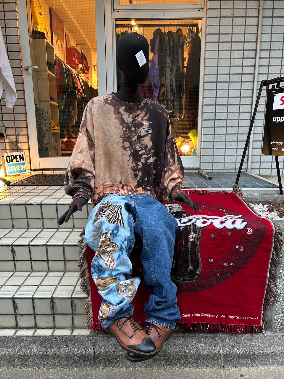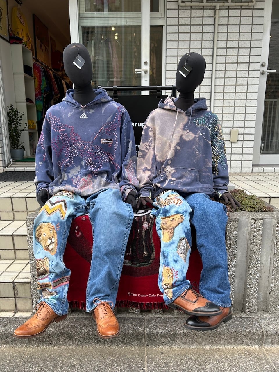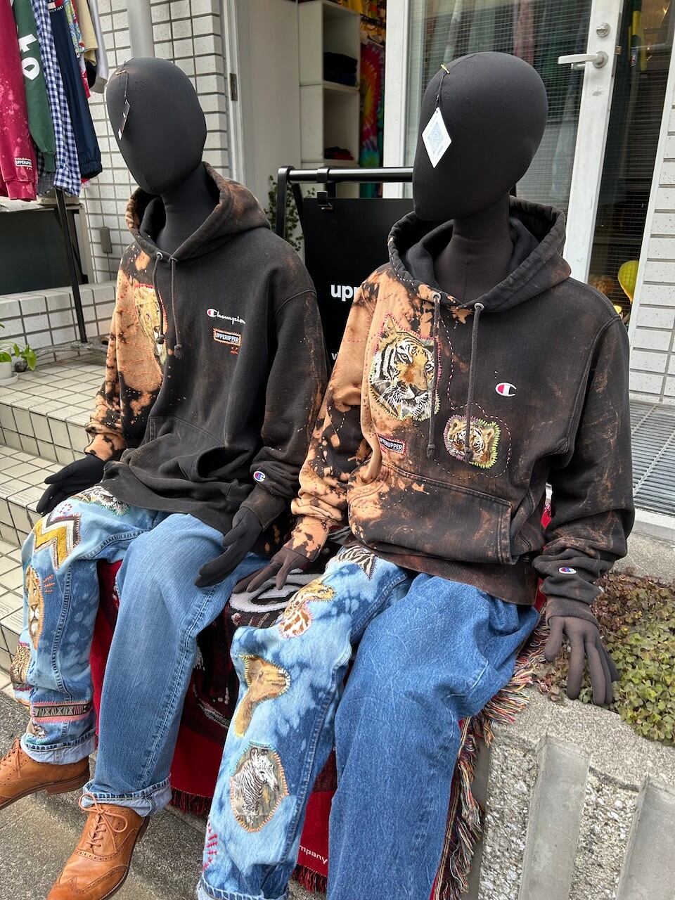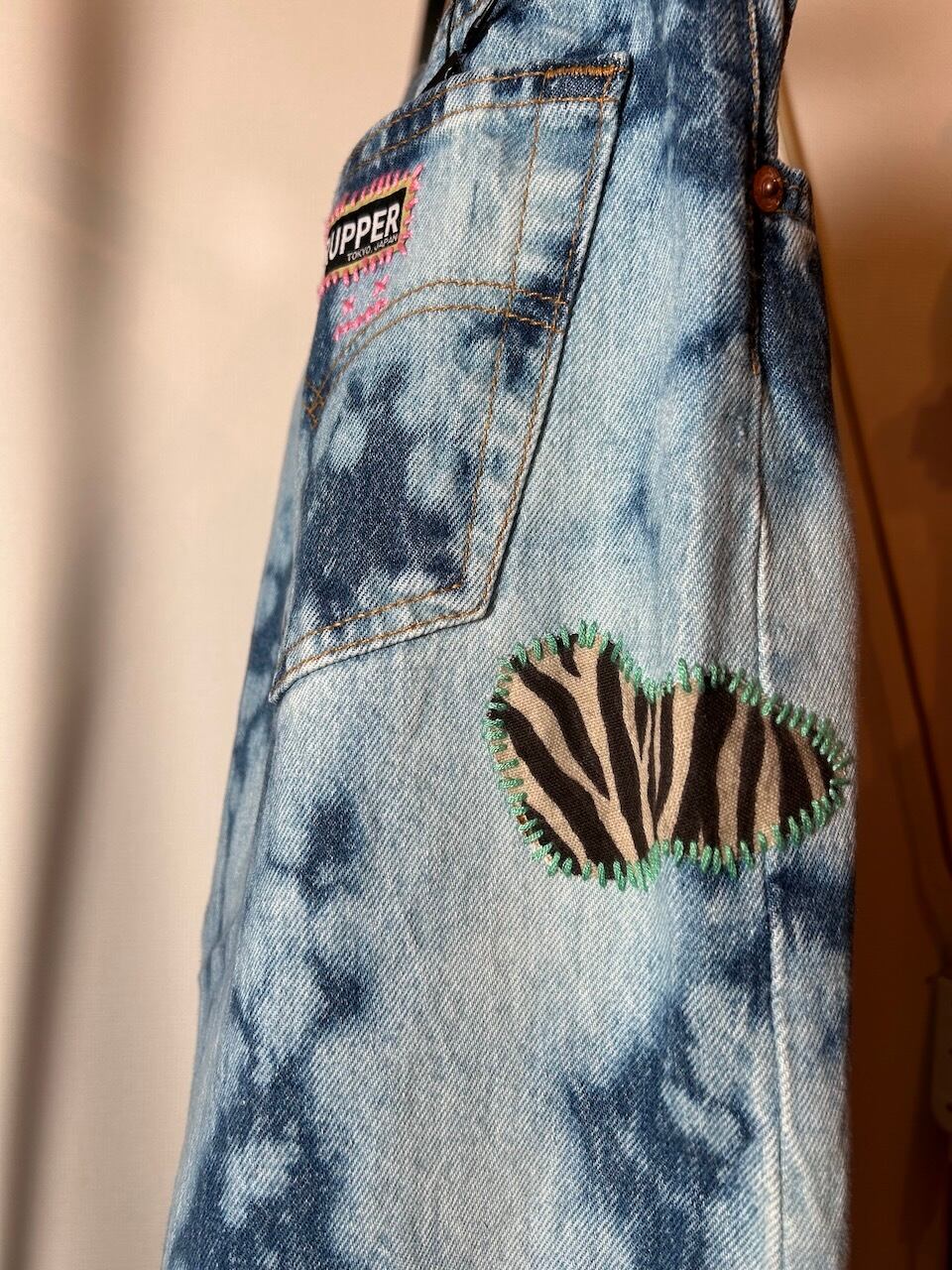 ご覧いただきありがとうございます!こちらのUPRUPR upcycle jeans W36は、90年代アメリカ製のリーバイス501を使用したアップサイクル品です。ハンドメイドで変色加工を主に片側のみ施し、独特の風合いとカラーリングに仕上げました。ビンテージ生地の野生動物イラストアートを手縫い刺繍で施し、美しい草食動物たちを草陰から狙うライオンのデザインや、裏側にひとり佇む熊とそれを取り巻く刺繍ステッチなど魅力溢れる一品です!