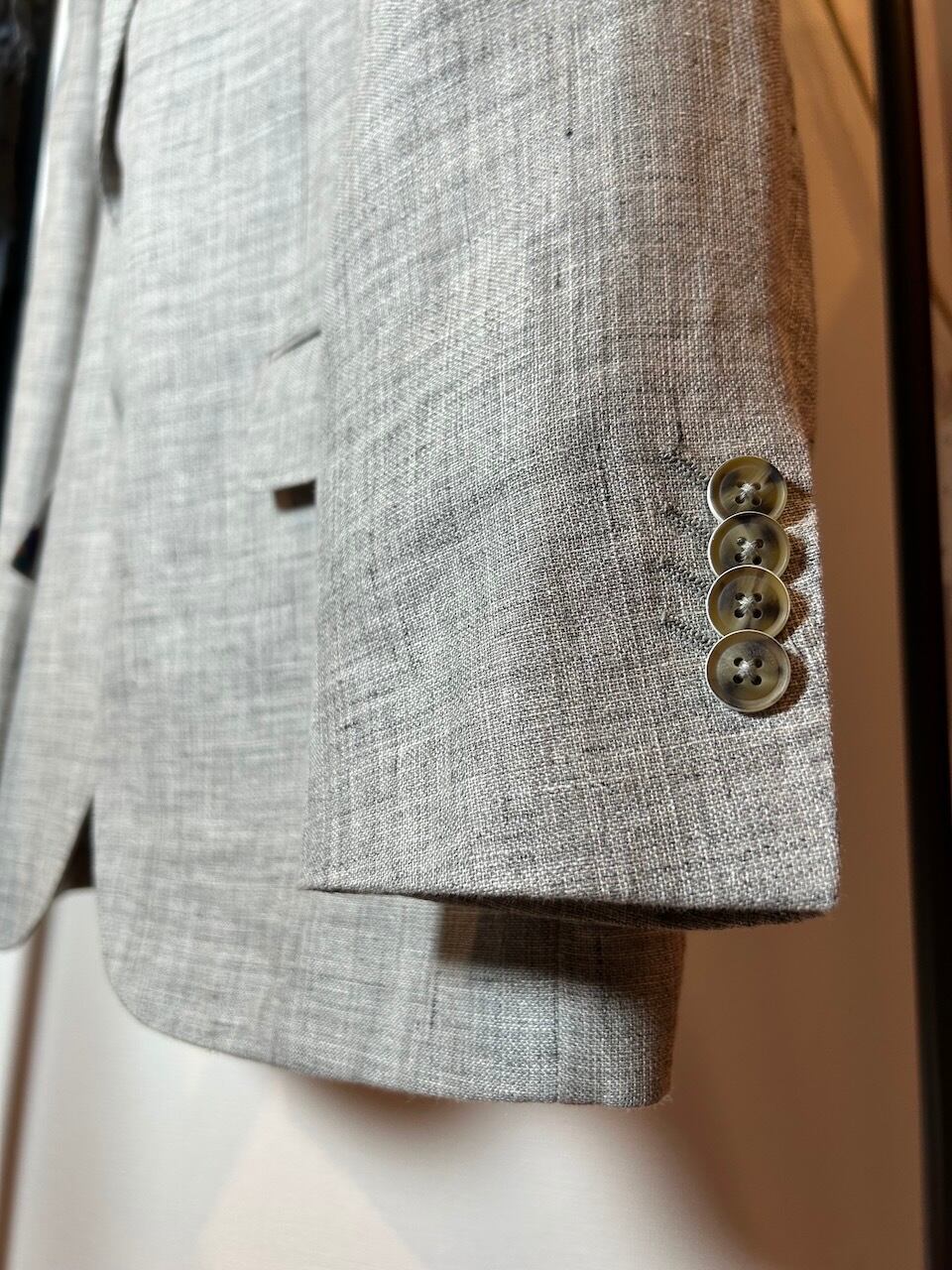 ・リネンとコットンの混合素材を使用しており、快適さを実現しています。薄手のジャケットとして活躍してくれるアイテムです。