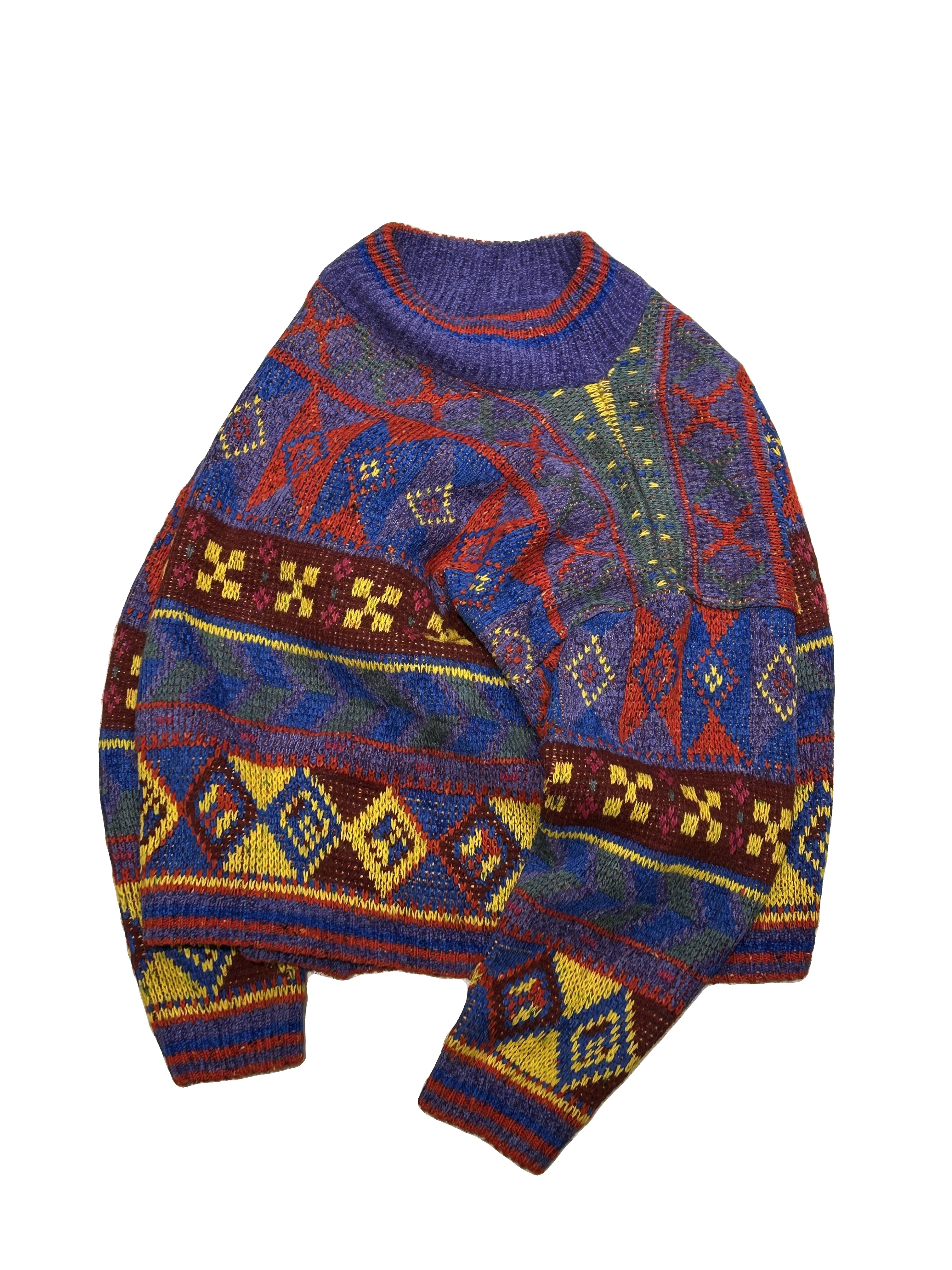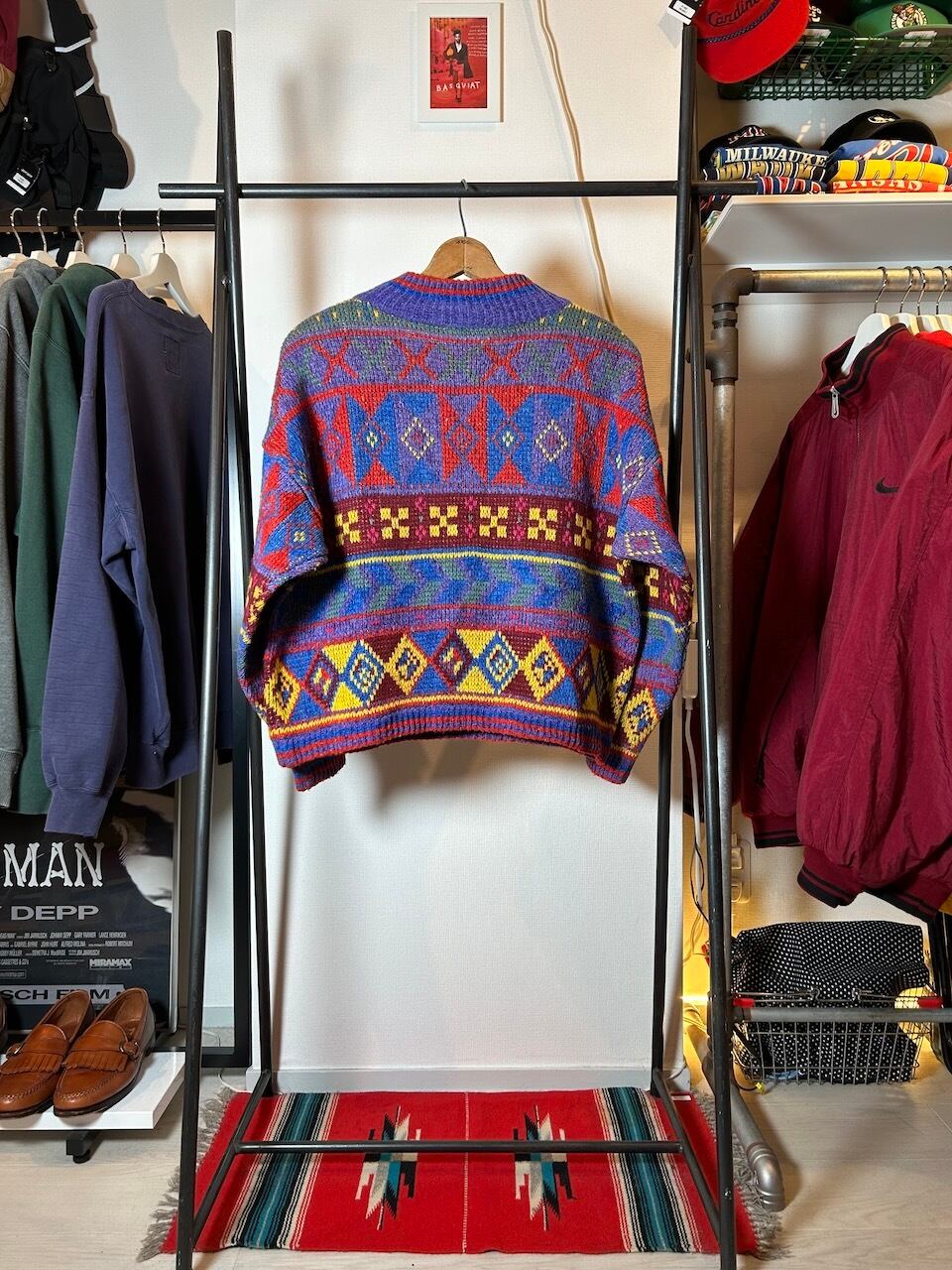 ご覧いただきありがとうございます!こちらの00's mosaic knit sweater Lは、2000年代のLiz Wear製モザイクタイル柄のニットです。ウール混の柔らかいアクリルニットは、肌触りが良く、日常使いにぴったりの一枚です。大きなモックネックと短めの丈感に加え、ワイドな身幅が今っぽくリラックスした印象を与えてくれます!