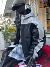 ご覧いただきありがとうございます!こちらの2004 NIKE jacket Mは、2004年製NIKEの中綿ジャケットです。スウォッシュロゴが3つ施され、厚みがあり滑らかで光沢ありのナイロンシェル仕様となっています。フードにはドローコードが装備もされており、クラシックなデザインが魅力です!