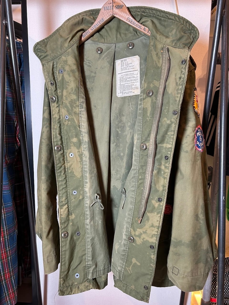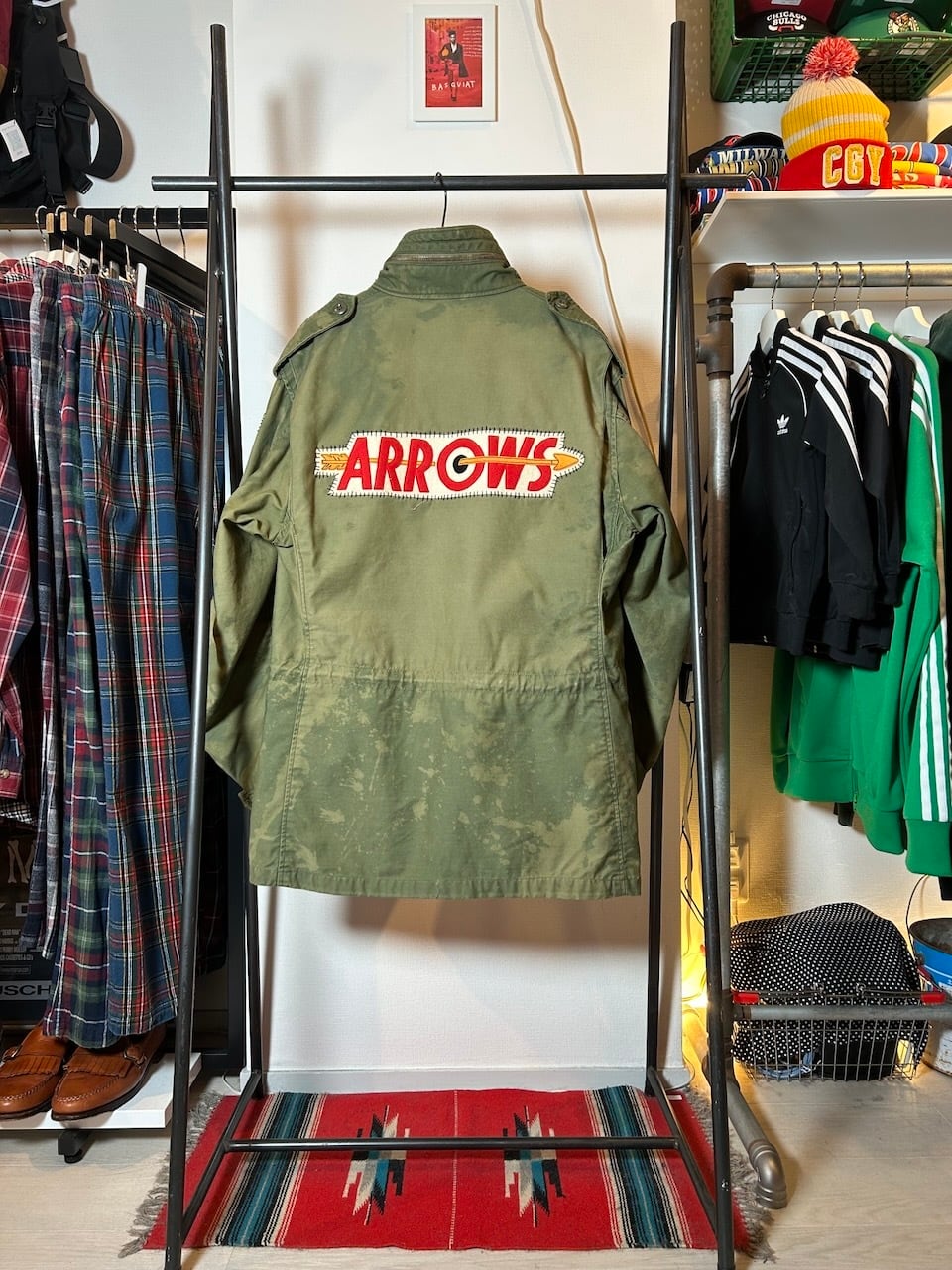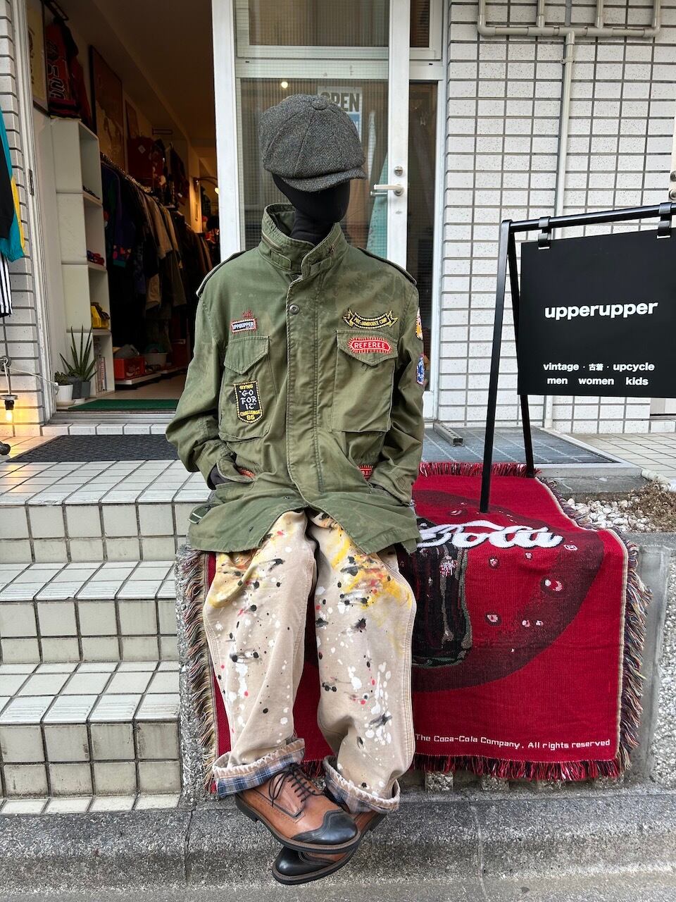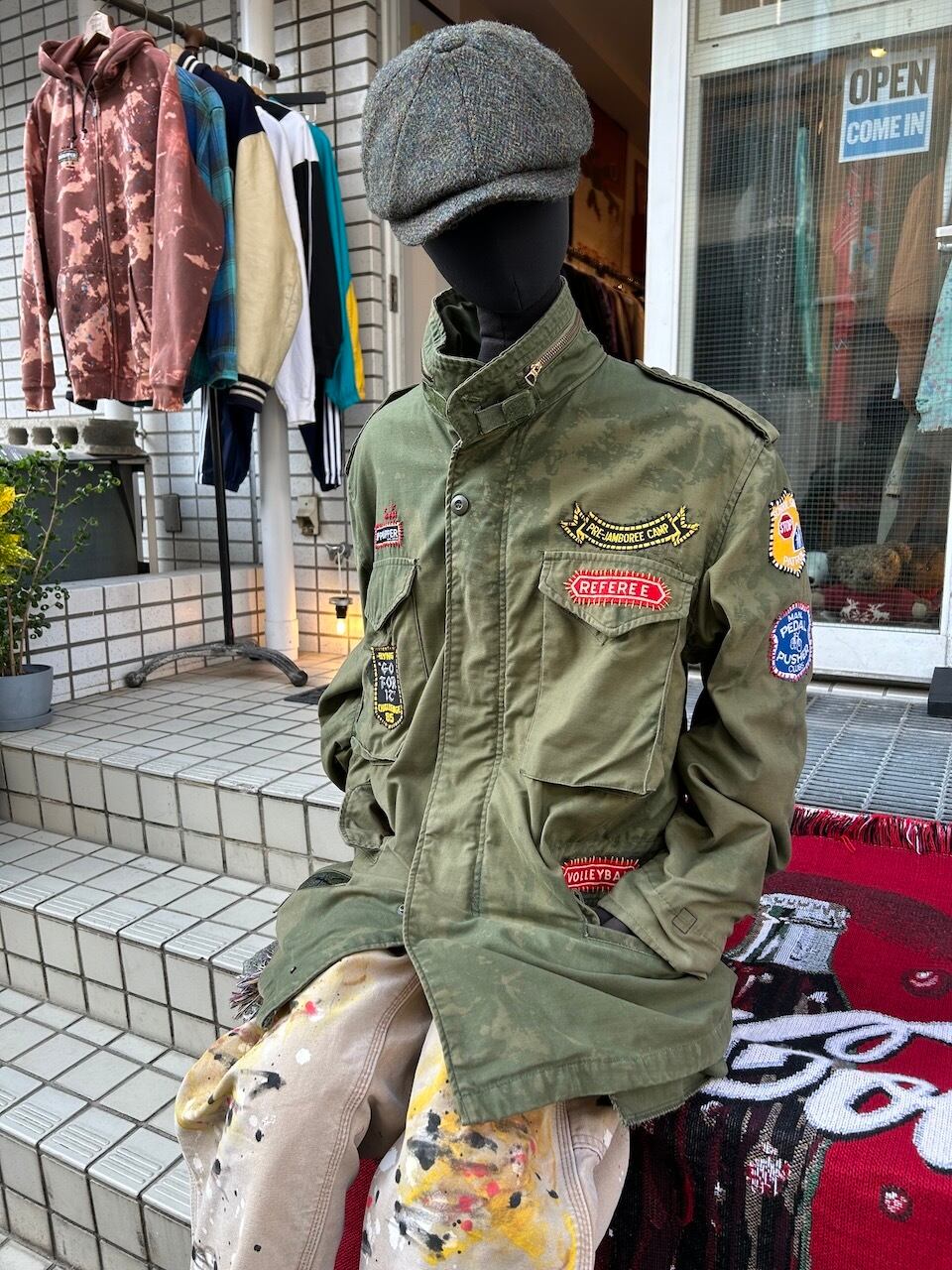 ご覧いただきありがとうございます!こちらの1980 US Army M-65 Mは、1980年製の米軍M-65ジャケットをベースにしたアップサイクルアイテムです。変色加工を施し、独特の色むらを表現。さらに、50~80年代のPEACEな雰囲気を持つビンテージワッペンを複数使い、手縫いステッチで装飾した特別な一着となっています!