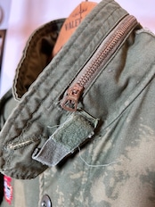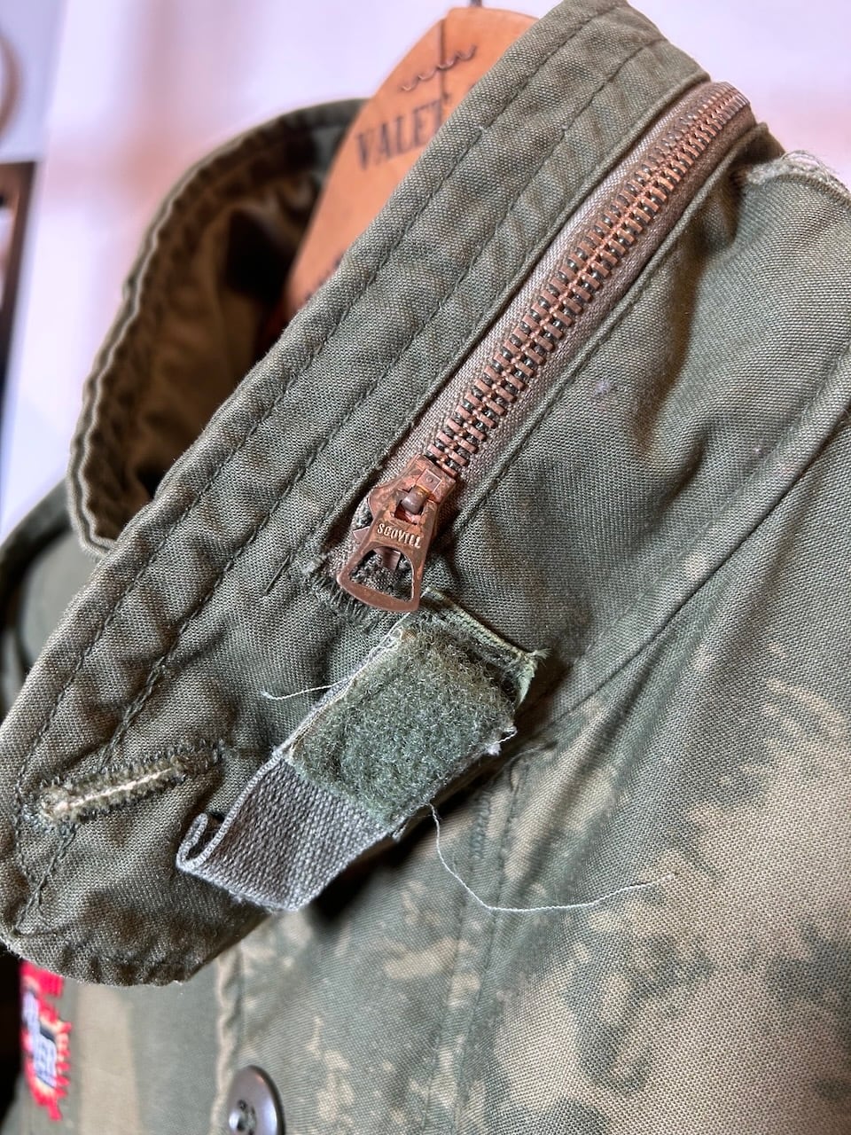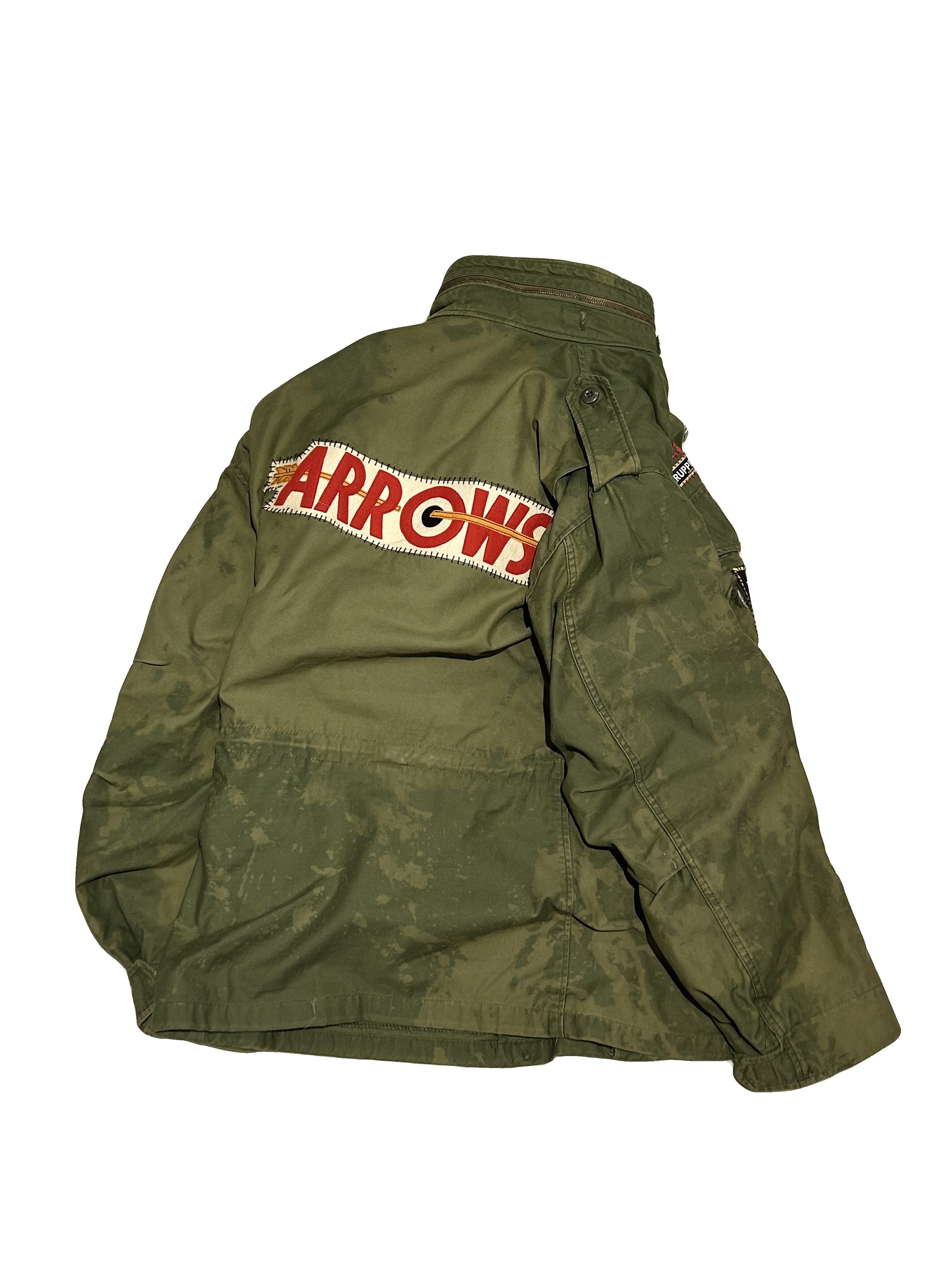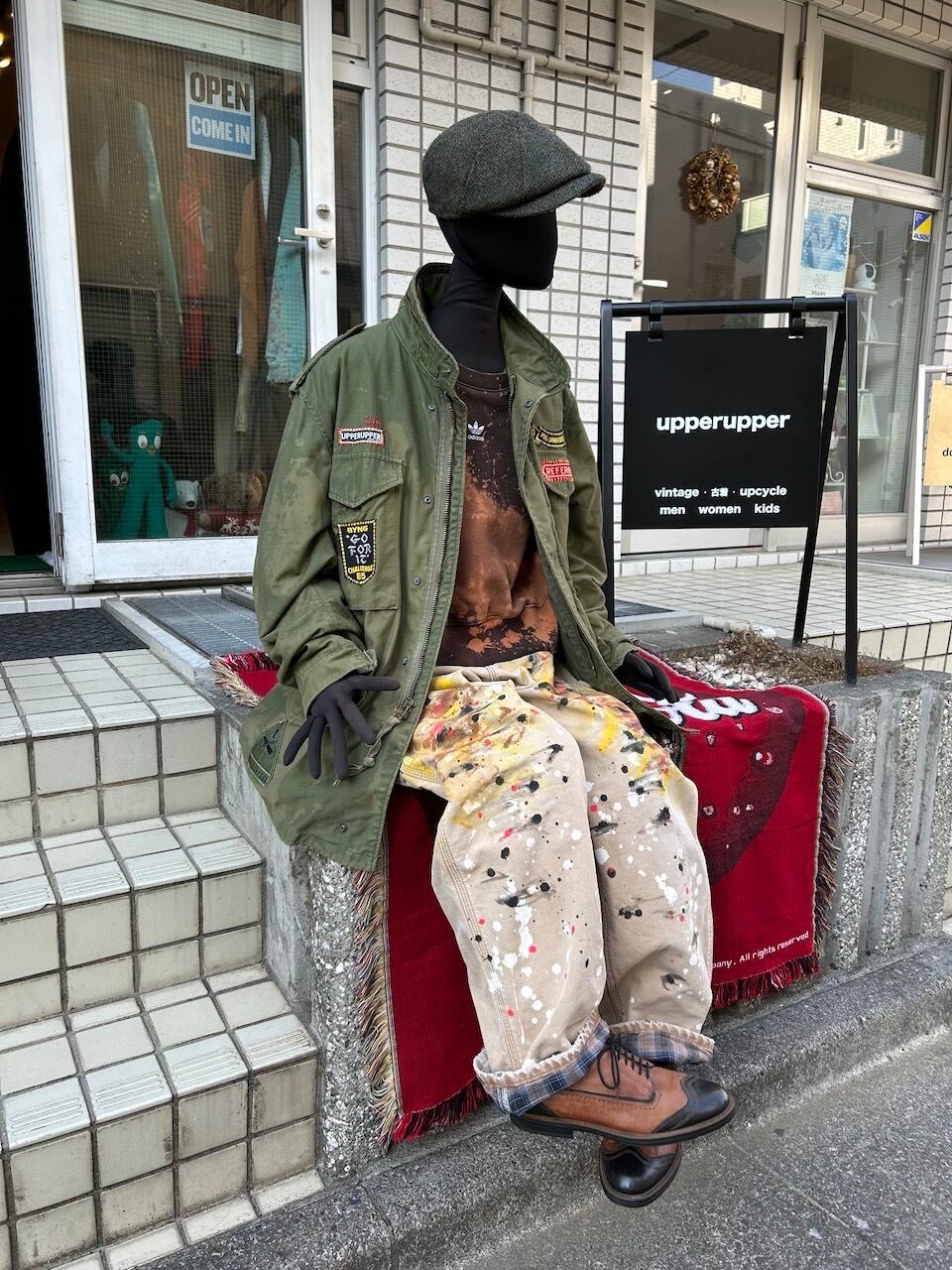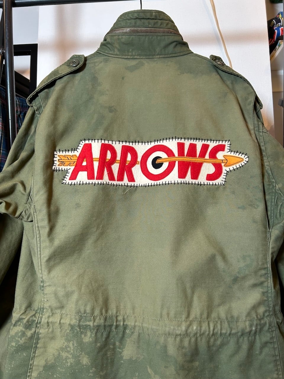 ご覧いただきありがとうございます!こちらの1980 US Army M-65 Mは、1980年製の米軍M-65ジャケットをベースにしたアップサイクルアイテムです。変色加工を施し、独特の色むらを表現。さらに、50~80年代のPEACEな雰囲気を持つビンテージワッペンを複数使い、手縫いステッチで装飾した特別な一着となっています!