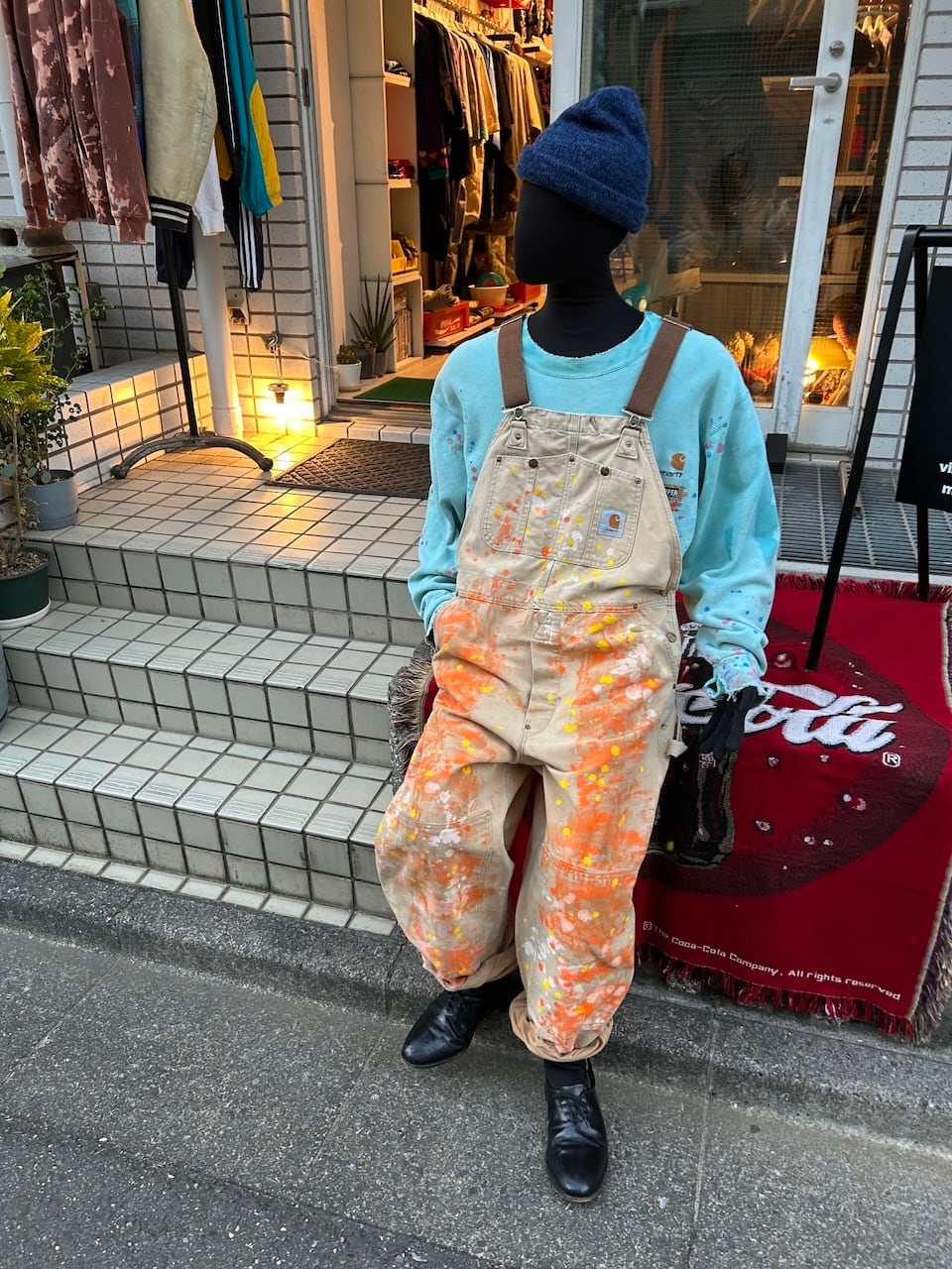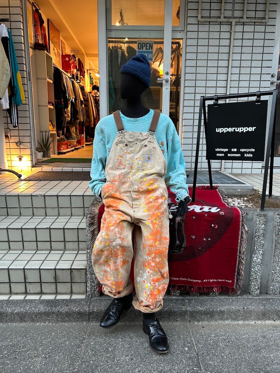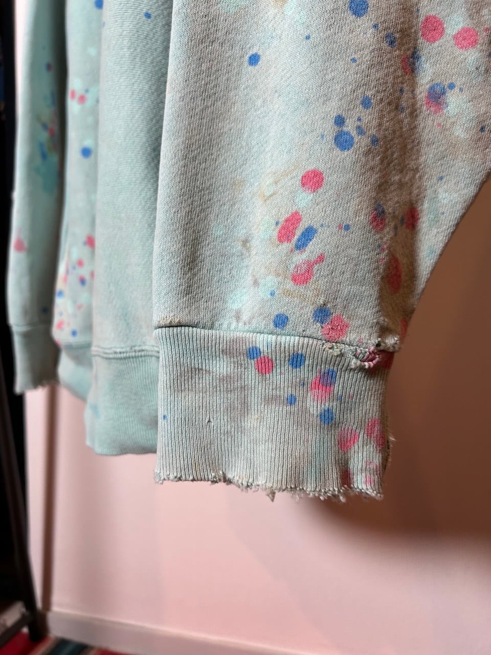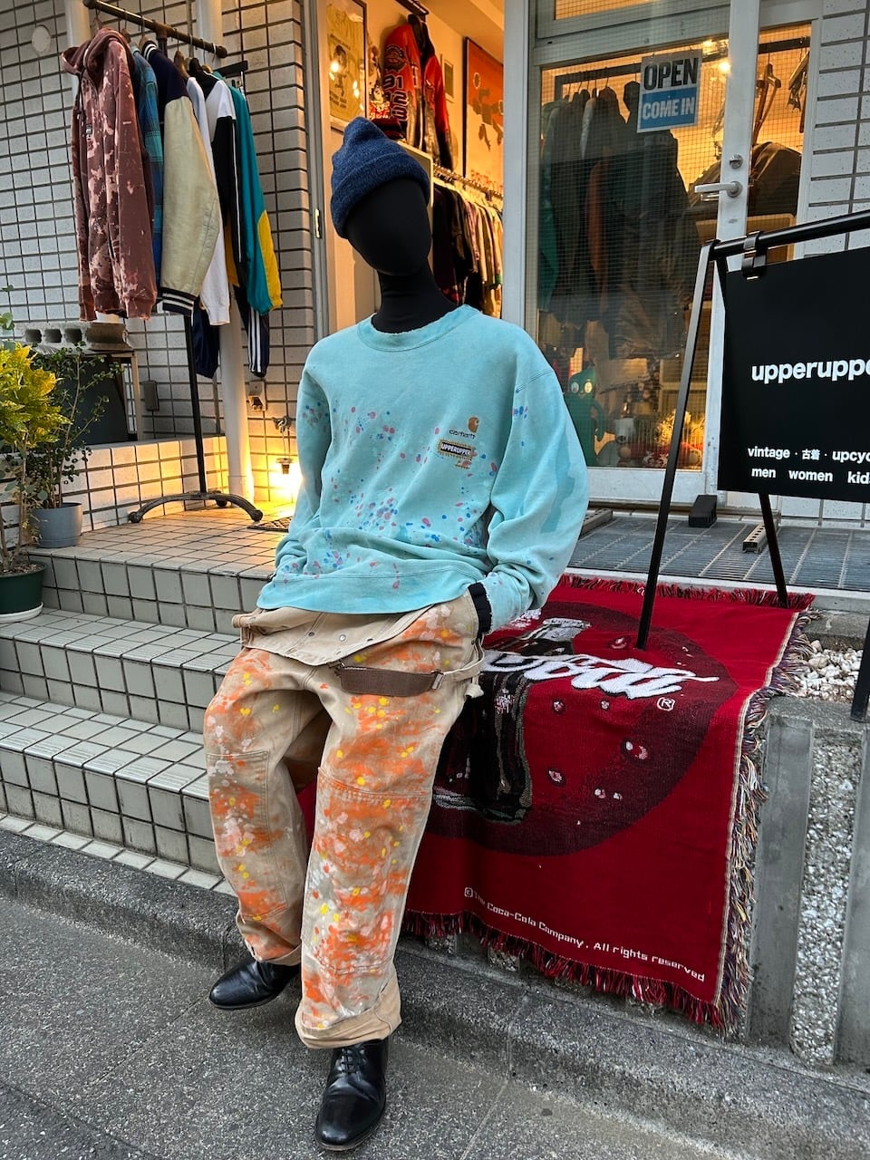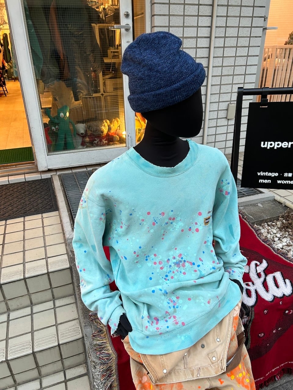 ご覧いただきありがとうございます!こちらのUPRUPR upcycle sweatshirt XLは、1990年頃のCarharttリバースウィーブスウェットを使用したアップサイクル品です。元々のダメージとそのボロい雰囲気を活かし、変色加工により独特の色むらを作り出し、発色の良いペイントを散りばめ独特なアート感溢れる一着に仕上げました。