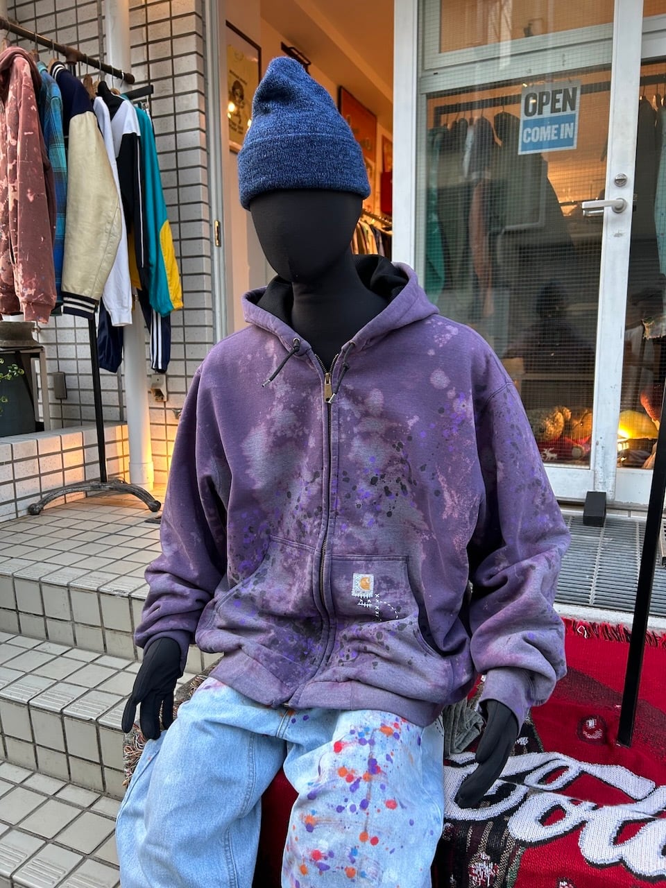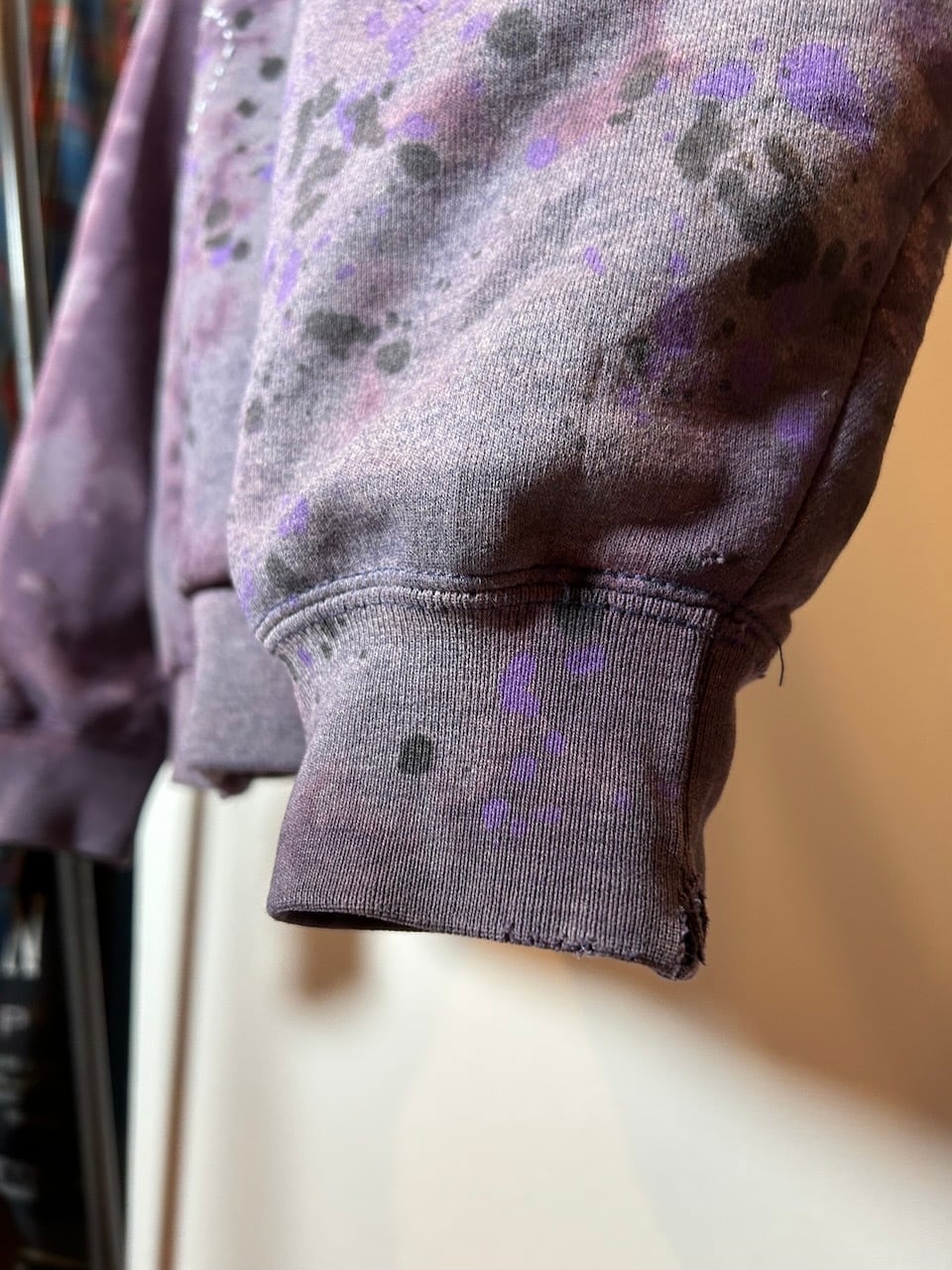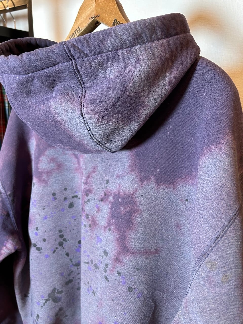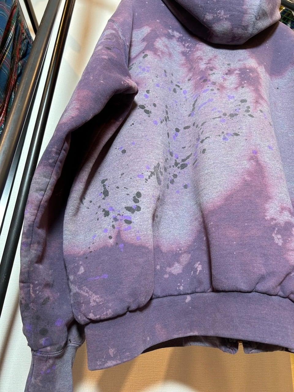 ご覧いただきありがとうございます!こちらのUPRUPR upcycle zip hoodie XLは、1990年代後期のCarharttジップパーカーをベースにしたアップサイクル品です。変色加工によって独特な色むらを生み出し、同系色のペイントを散りばめ美しい一着に仕上げました。全体的に暗めの色味ですが、明るく優しい水色の刺繍ステッチがアクセントとなり柔らかな風合いを作り出しています。メッシュ裏地付きで機能性も搭載!