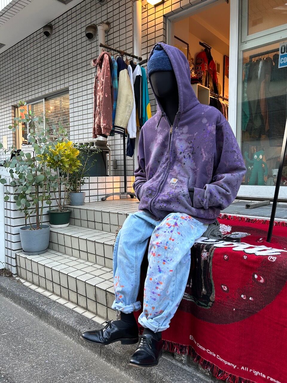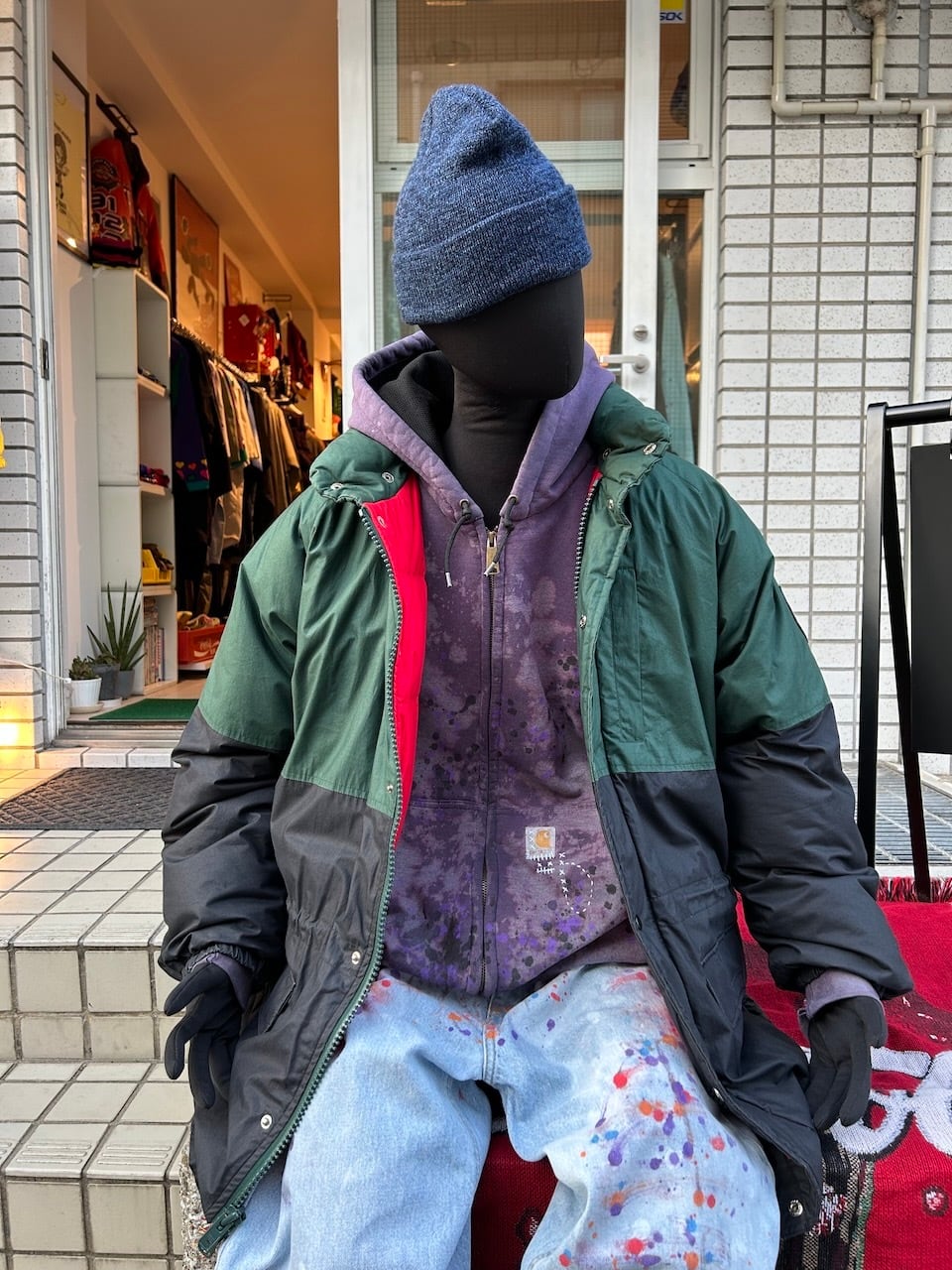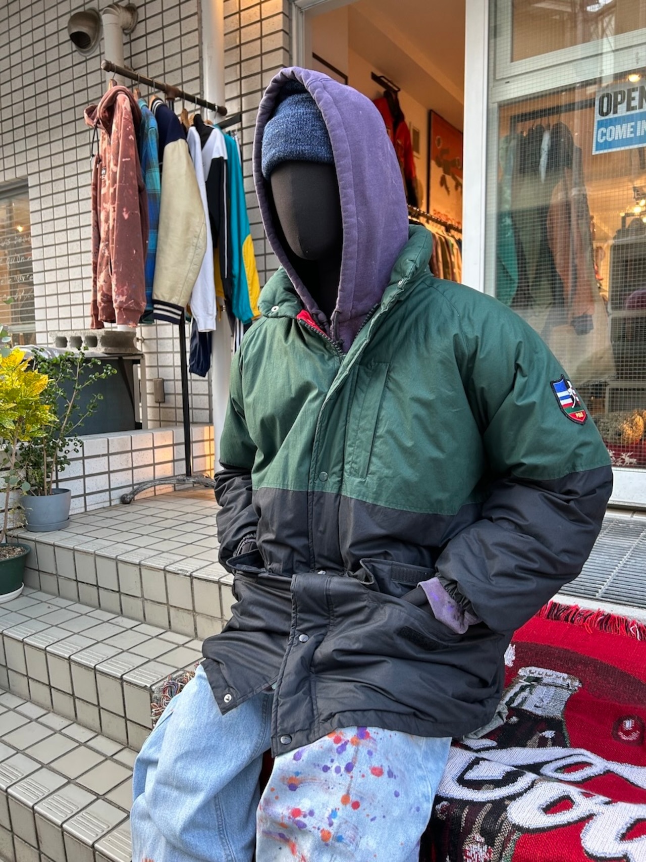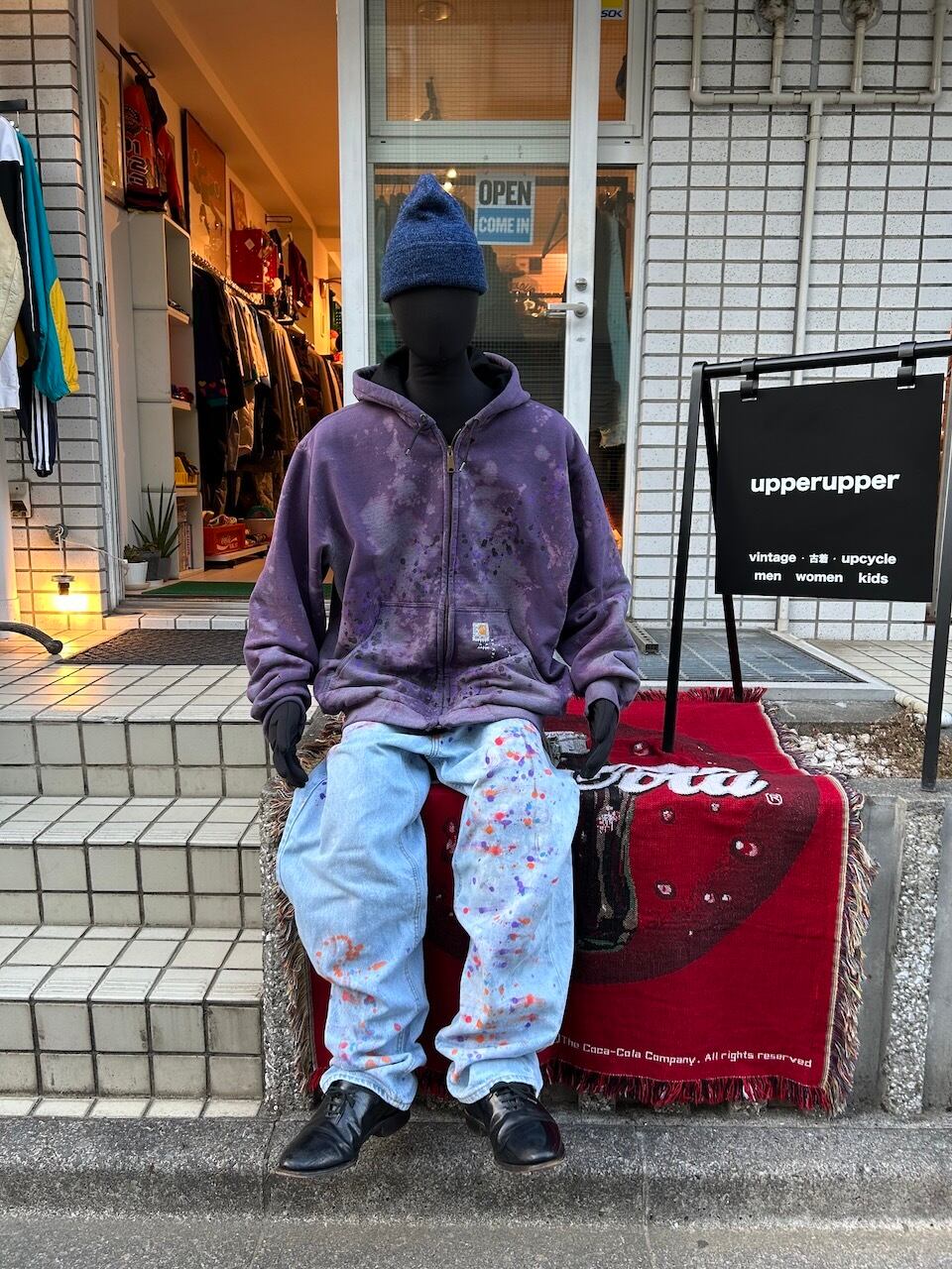 ・古着アップサイクル品のため、変色やダメージ、使用感が見受けられますが、個性的な魅力としてお楽しみいただけます。