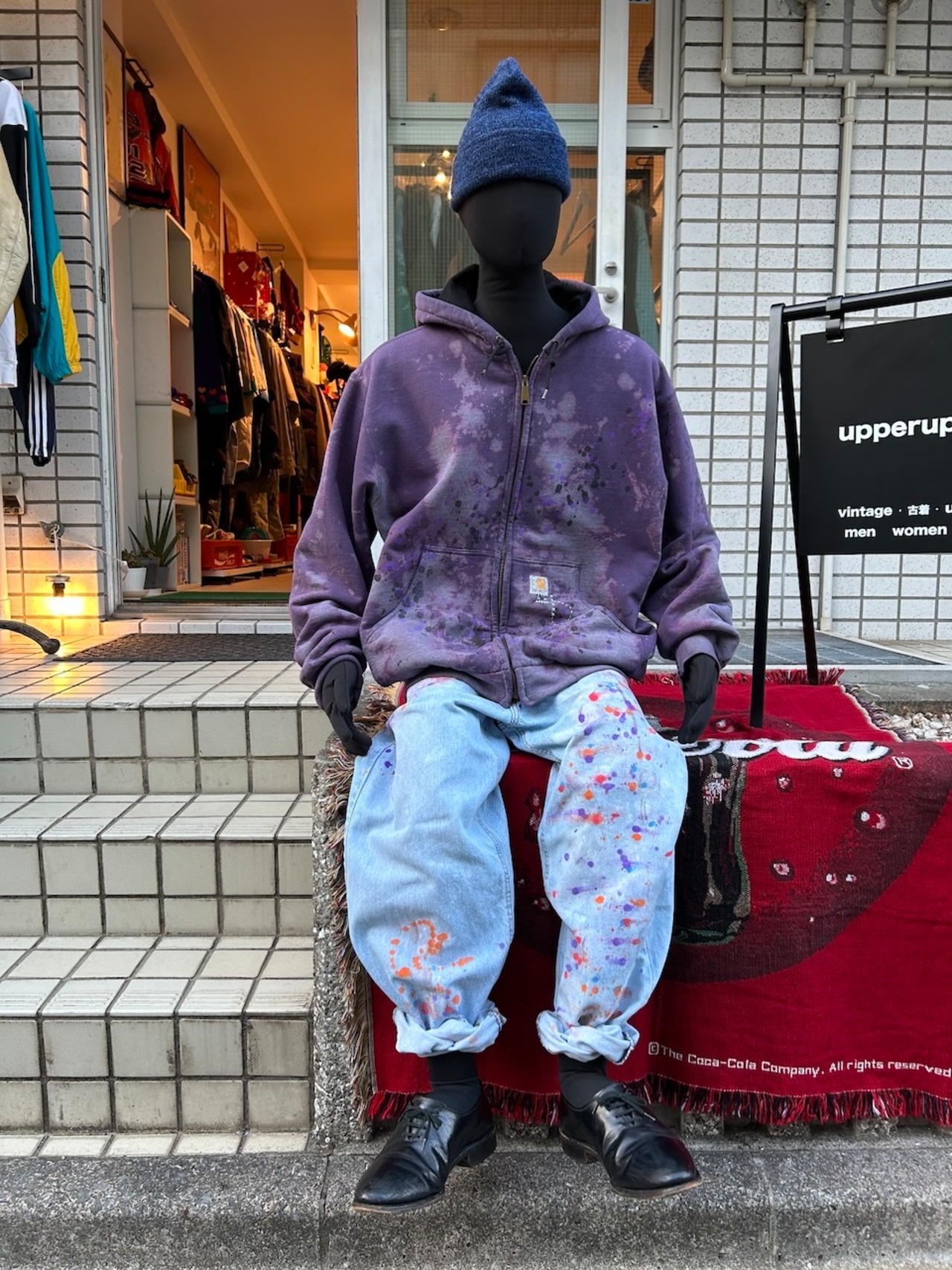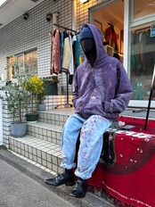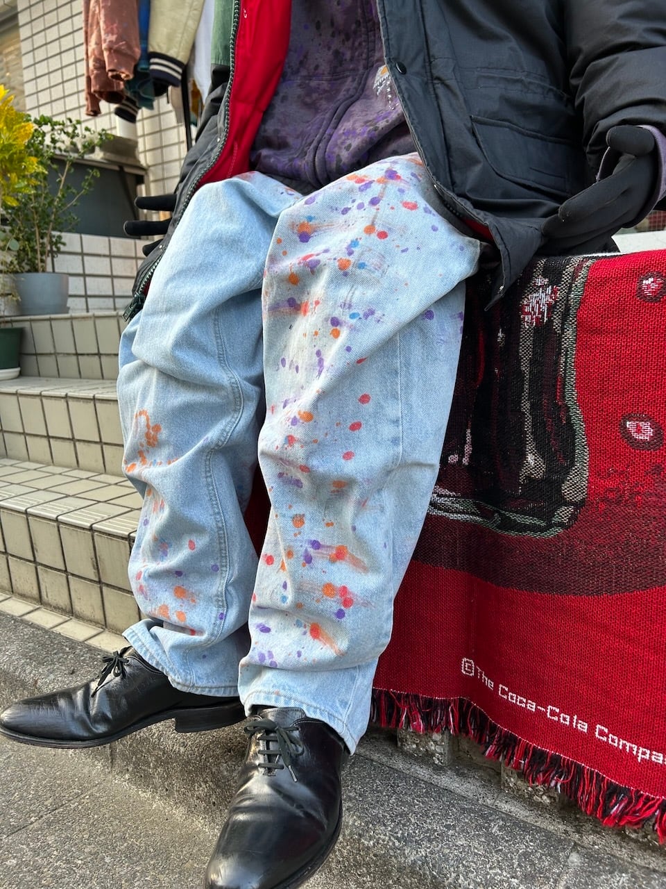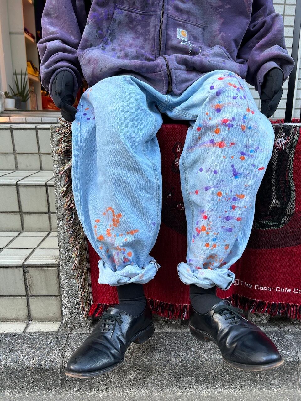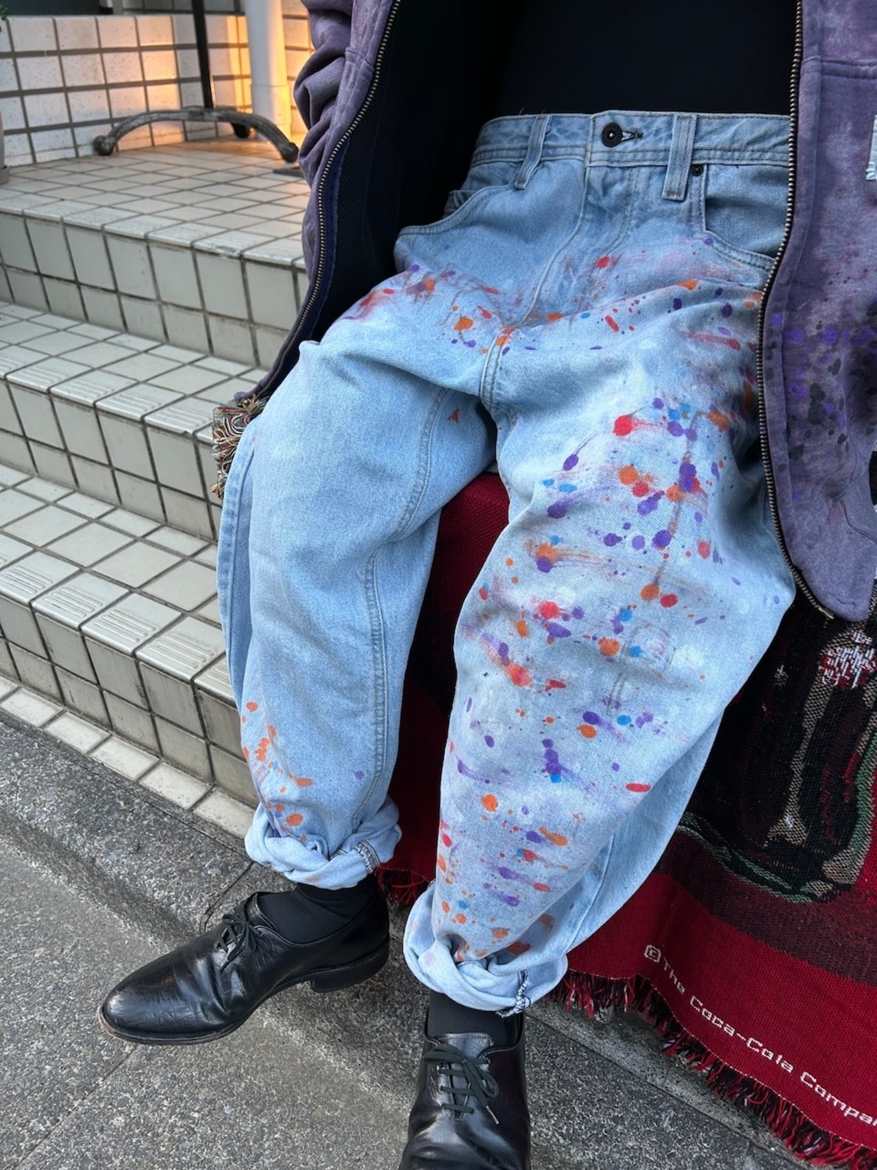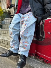 ご覧いただきありがとうございます!こちらのUPRUPR upcycle jeans W32は、2010年代後期のLAブランドEmpyre製バギージーンズを使用した独自のアップサイクル品です。変色加工により色むらを作り、全体にペイントデザインを加え、バックポケットには手縫いの刺繍を施しました。程よいバギーシルエットと明るめの配色が目を惹く一着です。