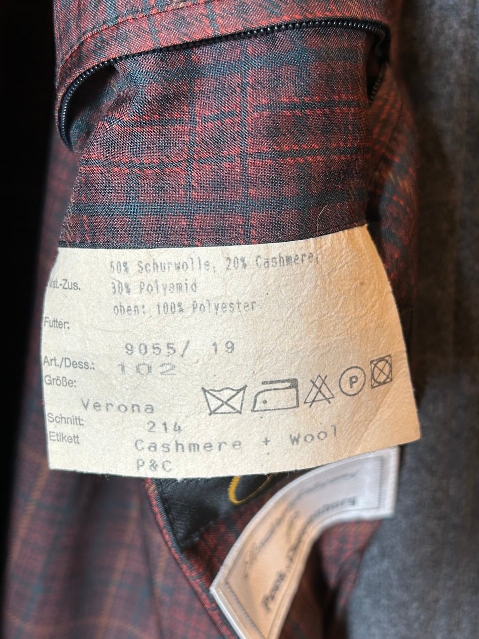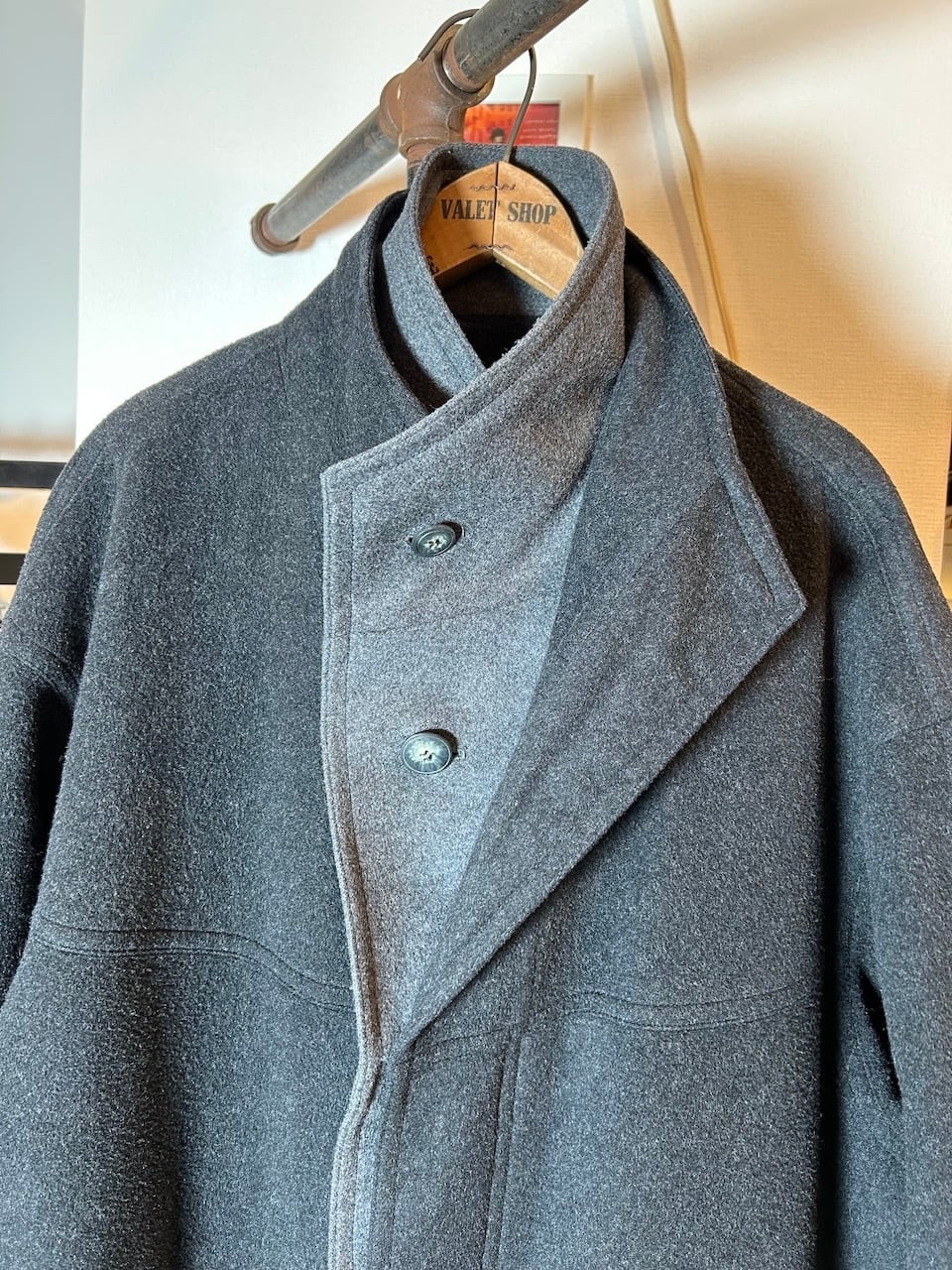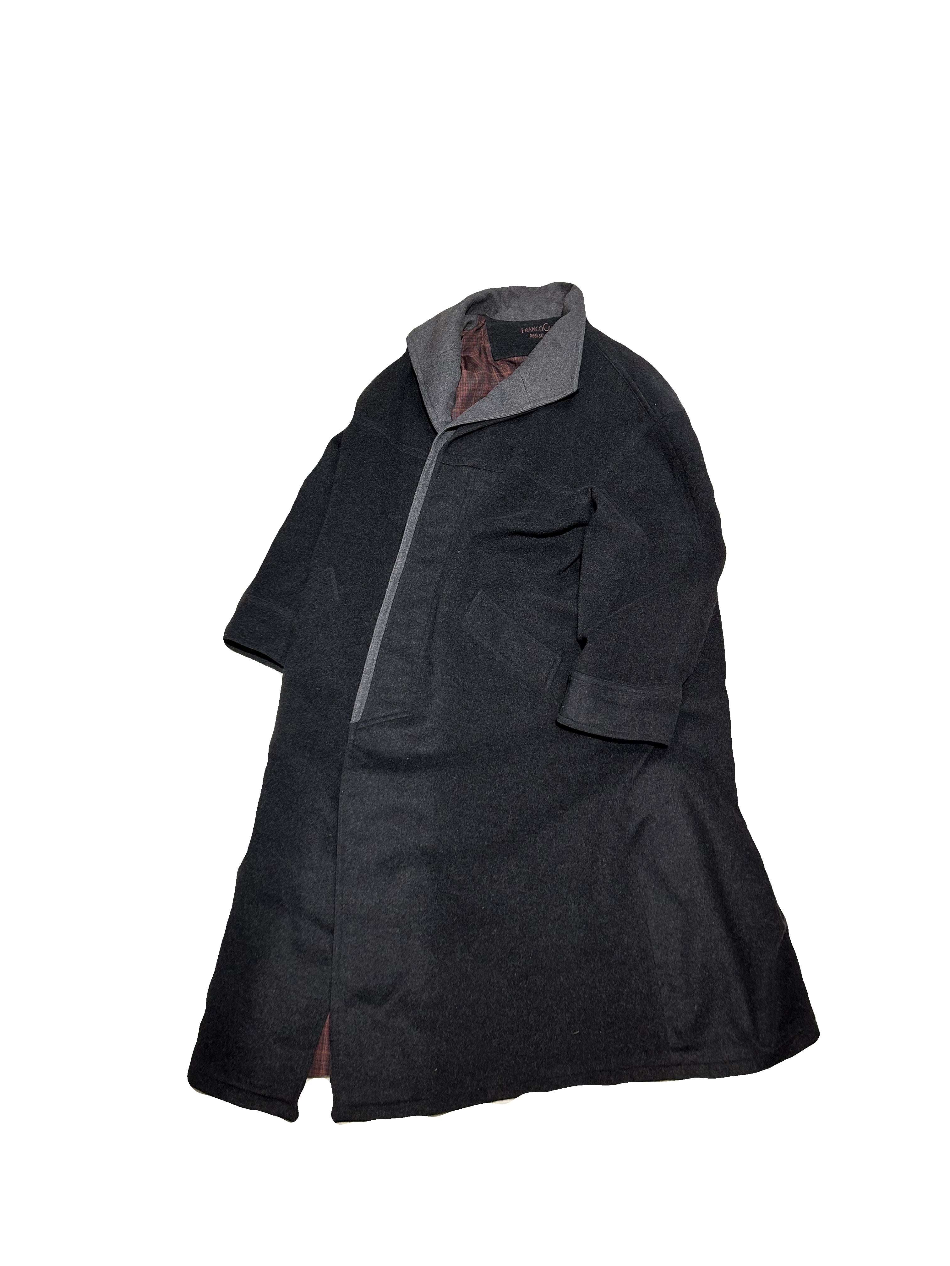 ご覧いただきありがとうございます!こちらの00's cashmere coat XLは、2000年代ドイツ製のFranco Callegariデザインによるカシミアコートです。ツートンのダブルレイヤー仕様の襟元がデザインの特徴で、広めの袖ぐりと袖幅により、ゆとりあるシルエットを実現しています。20%はカシミアを使用しており、上質な肌触りと温かさが感じられる一着です。生地感も柔らかく肩も綺麗に落ちるのでオーバーサイズでも使えます。シンプル、スタイリッシュで高品質。ミニマルなスタイルにピッタリなコートですね!