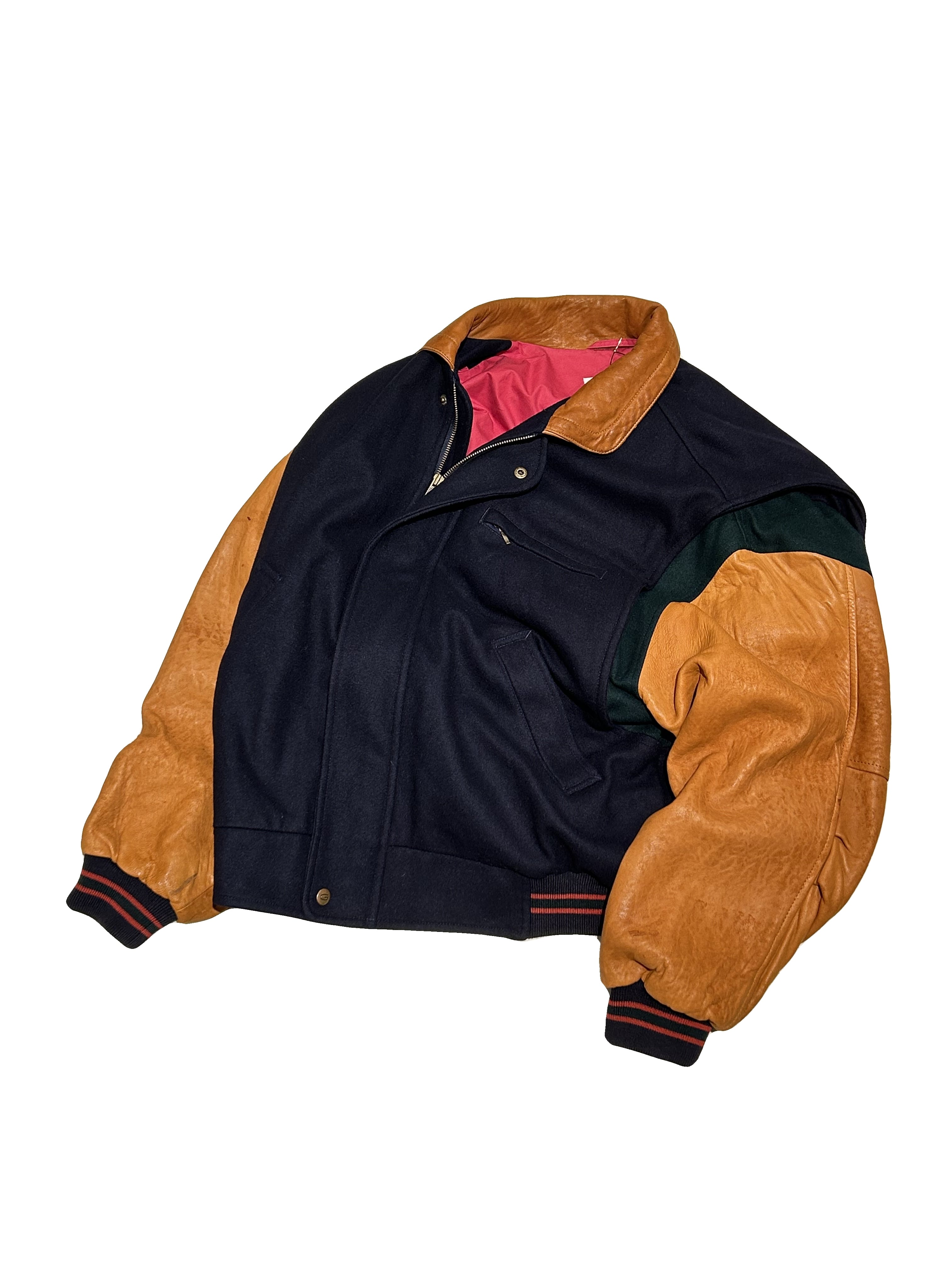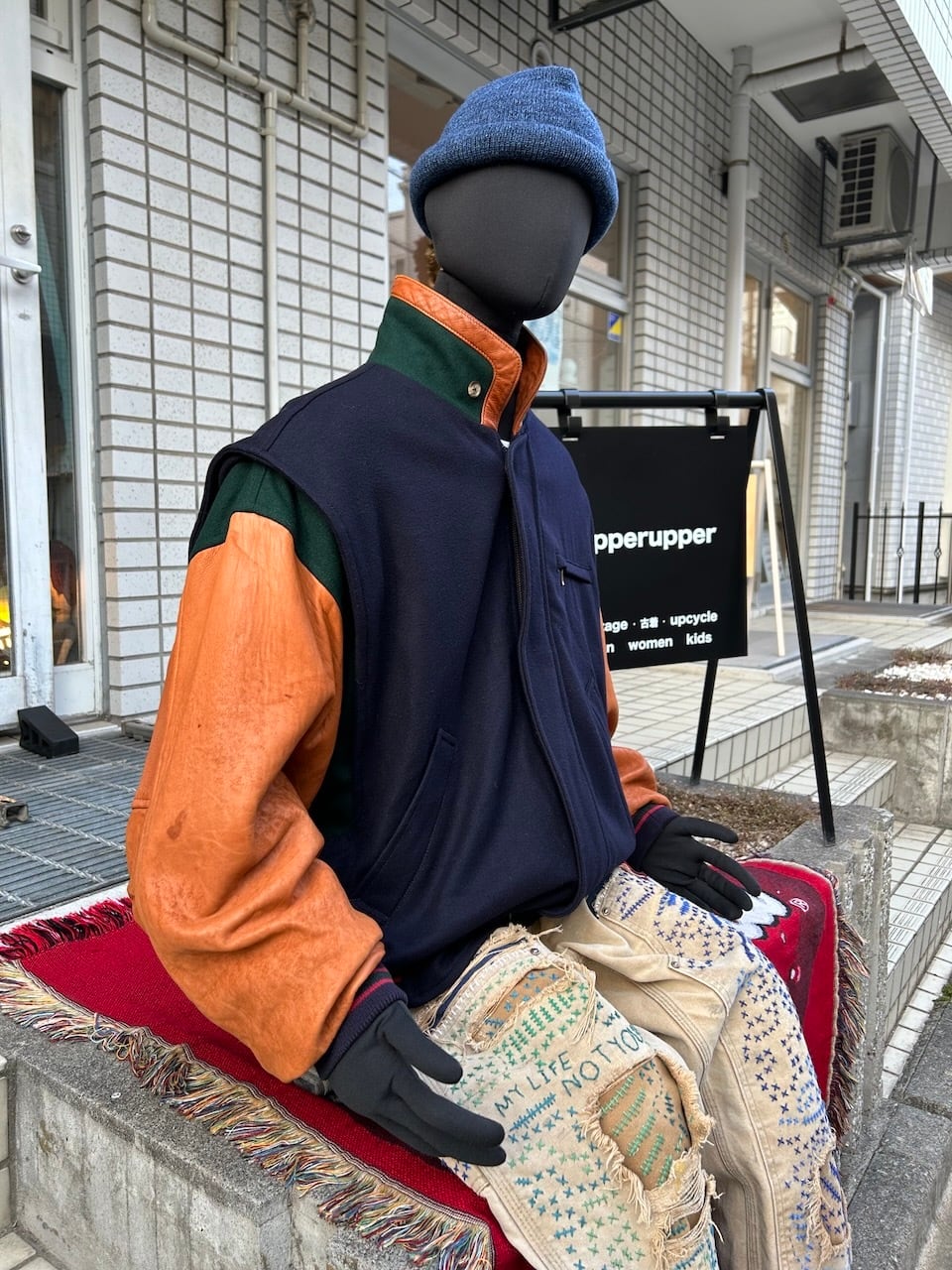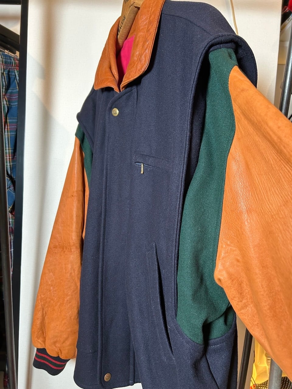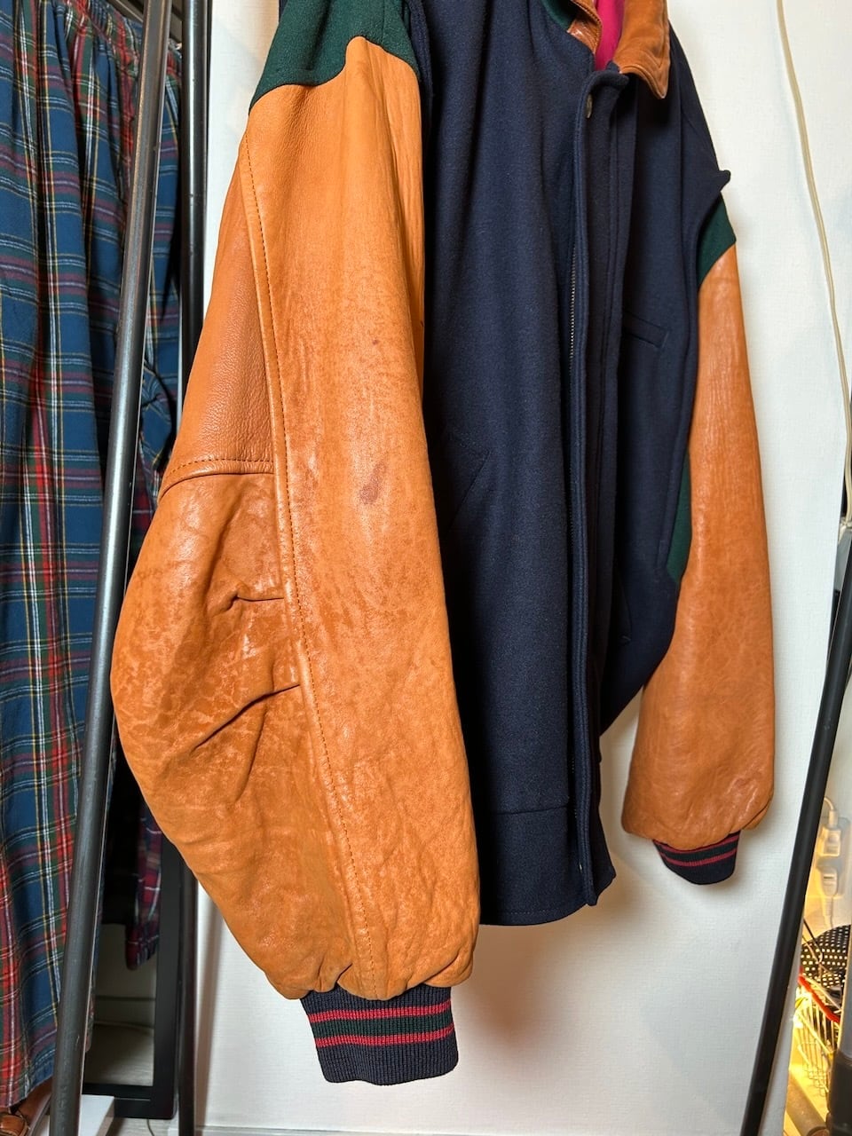 ・ウールボディにレザー袖で、スタジャンをアップデートしたようなジャケット。