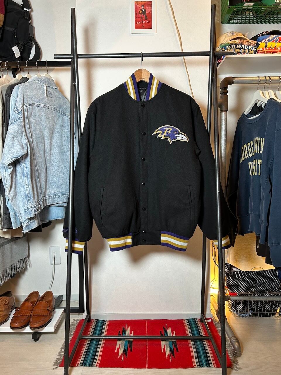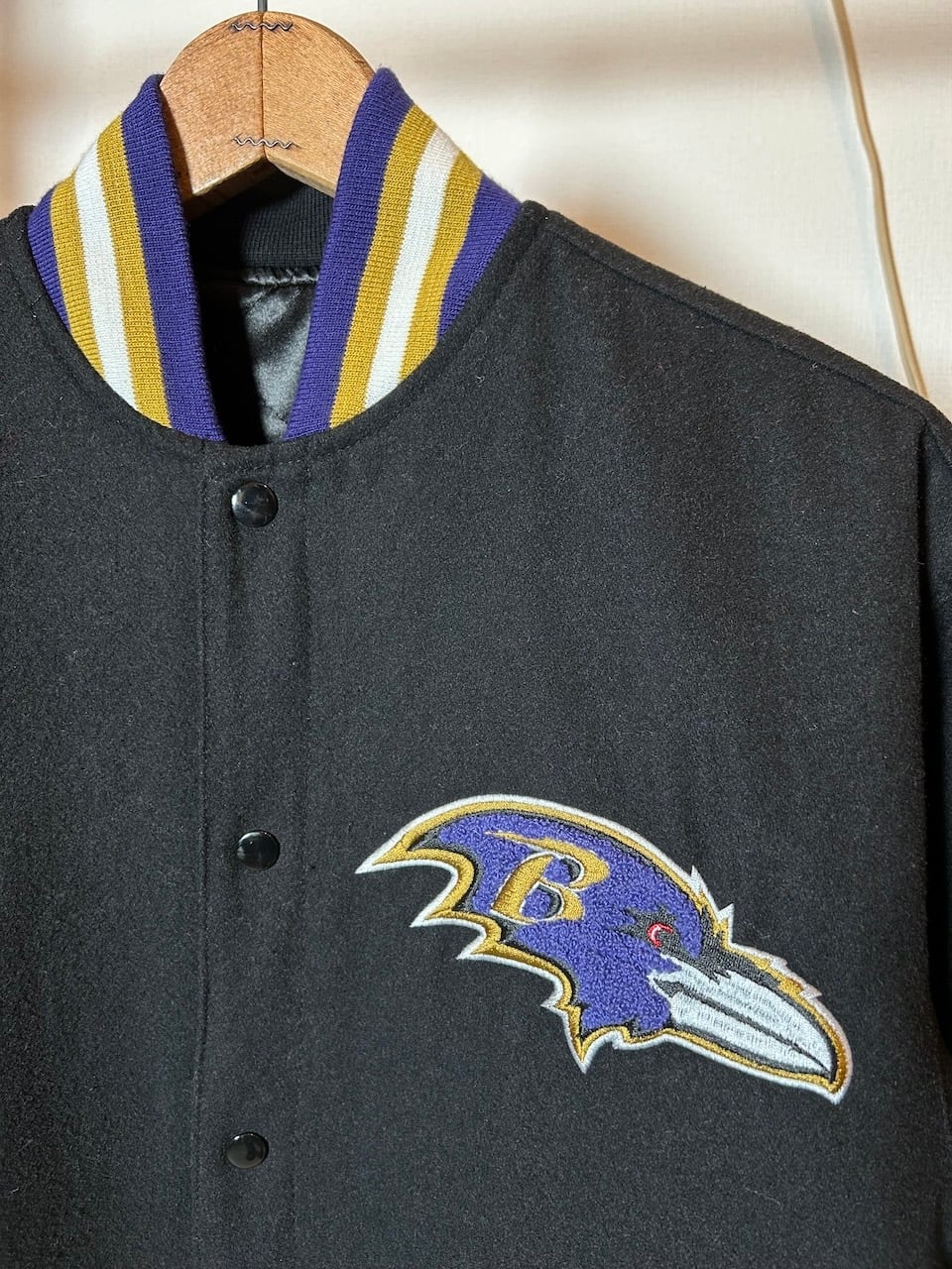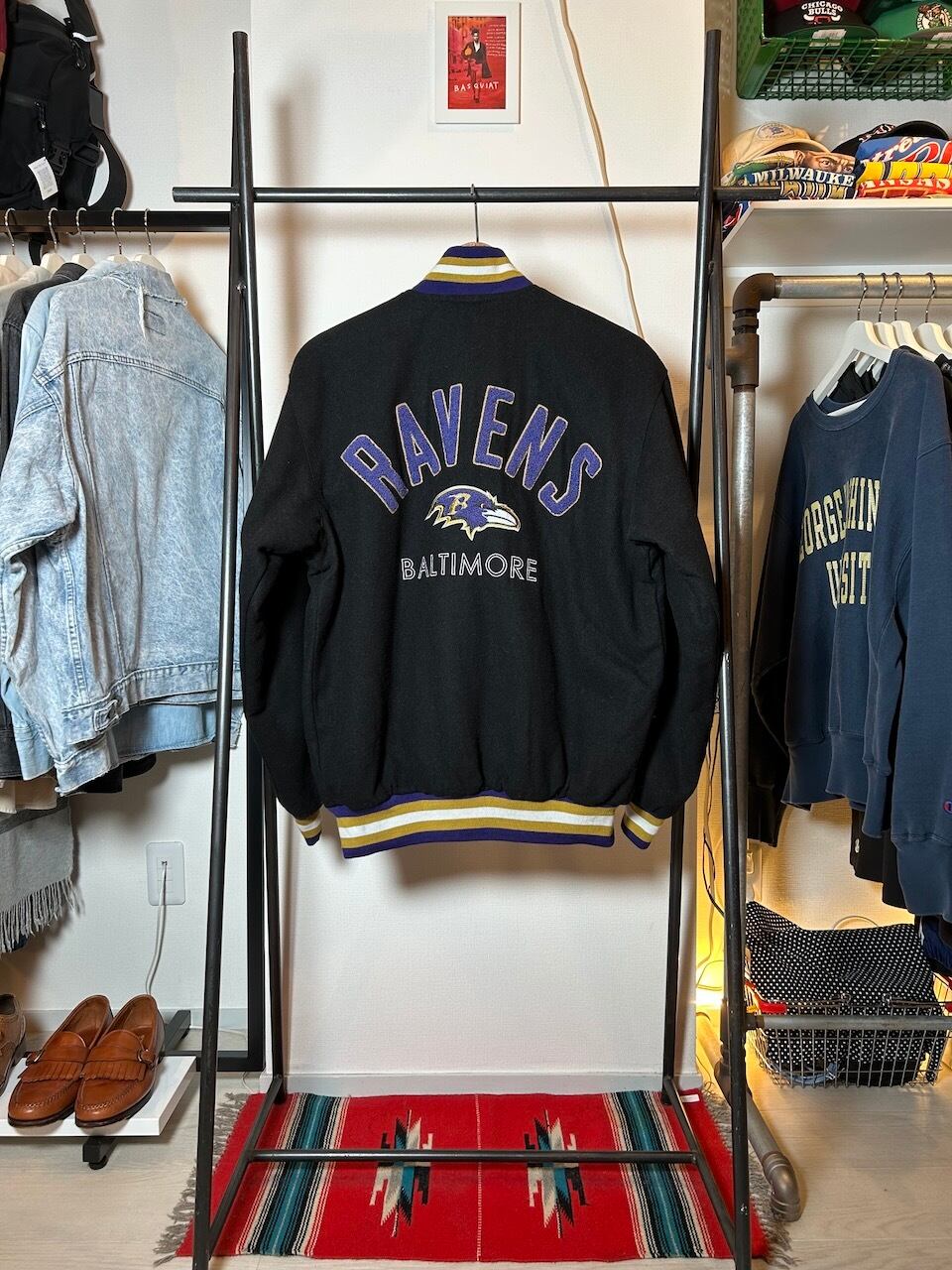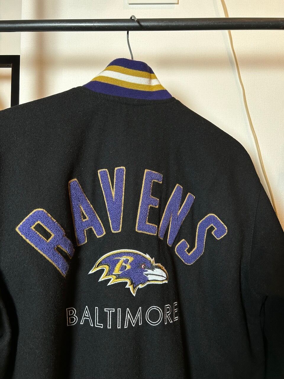 ご覧いただきありがとうございます!こちらの2008 Ravens reversible varsity jacket Sは、2008年製のNFLボルティモアレイブンズのリバーシブルスタジャンです。全面ウールとサテンキルティングの切り返しデザインが特徴的で、両面とも一軍級のスタイルを誇ります。どちらの面でも着用できるため、その日の気分やコーディネートに合わせて自由にスタイルを楽しめるのが魅力、必ず重宝します!