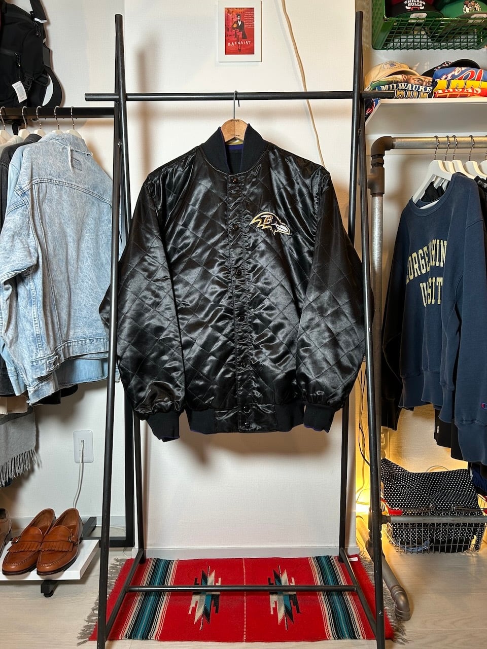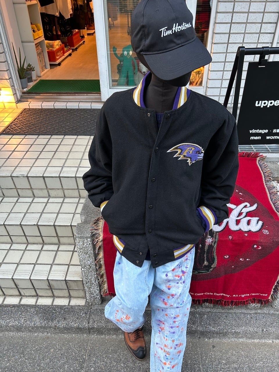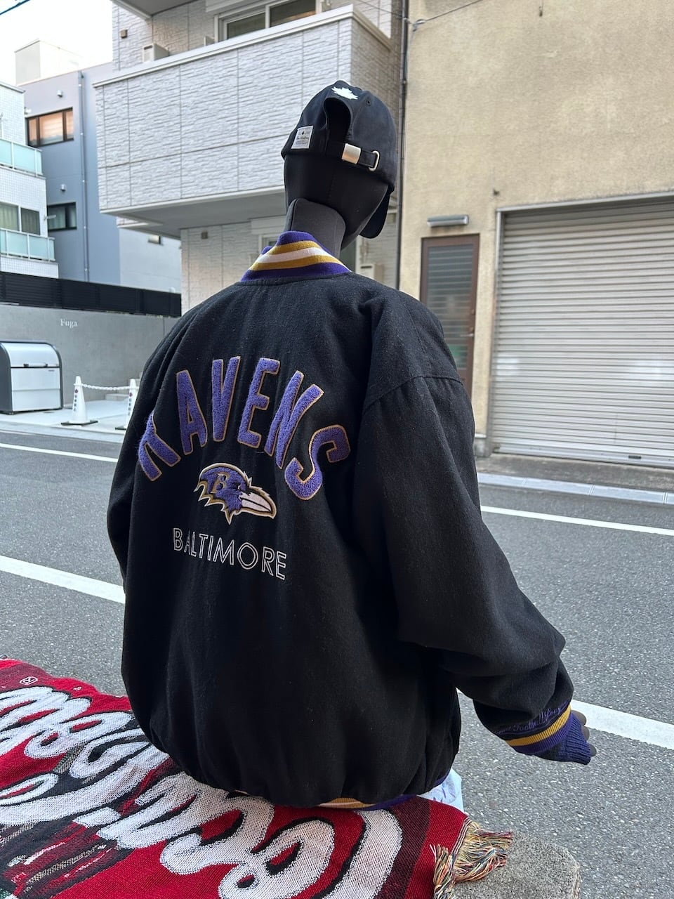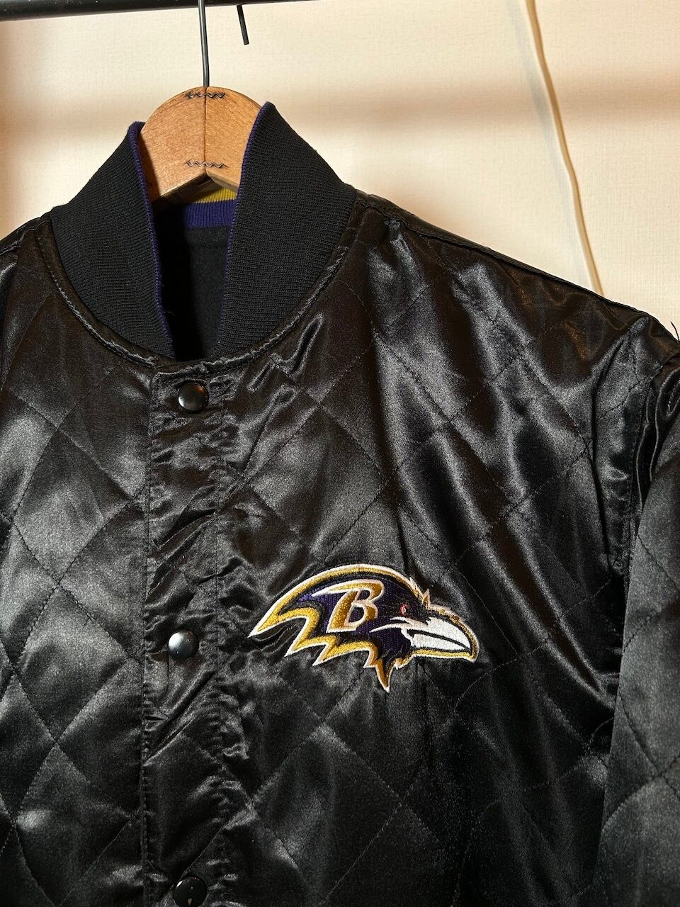 ご覧いただきありがとうございます!こちらの2008 Ravens reversible varsity jacket Sは、2008年製のNFLボルティモアレイブンズのリバーシブルスタジャンです。全面ウールとサテンキルティングの切り返しデザインが特徴的で、両面とも一軍級のスタイルを誇ります。どちらの面でも着用できるため、その日の気分やコーディネートに合わせて自由にスタイルを楽しめるのが魅力、必ず重宝します!