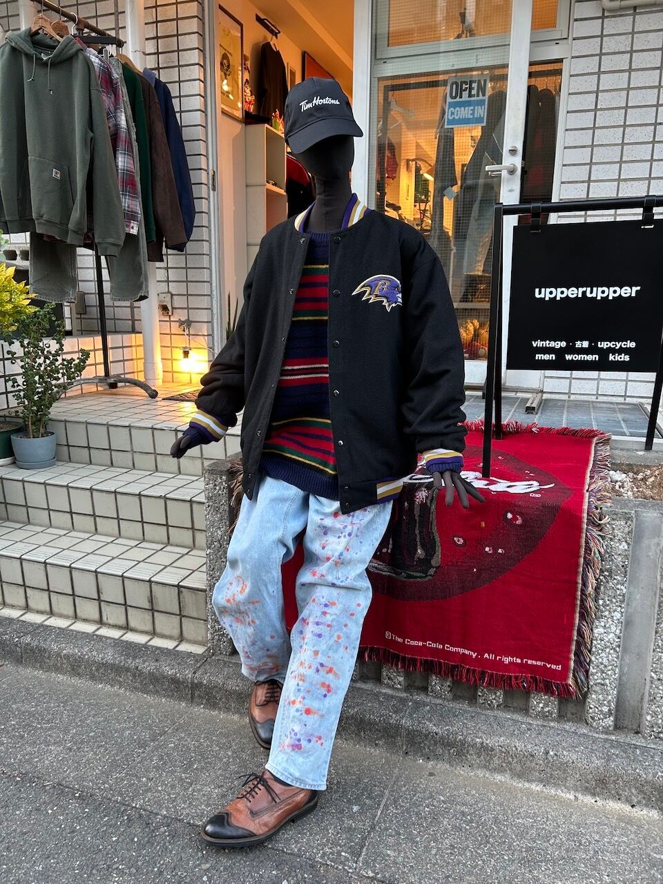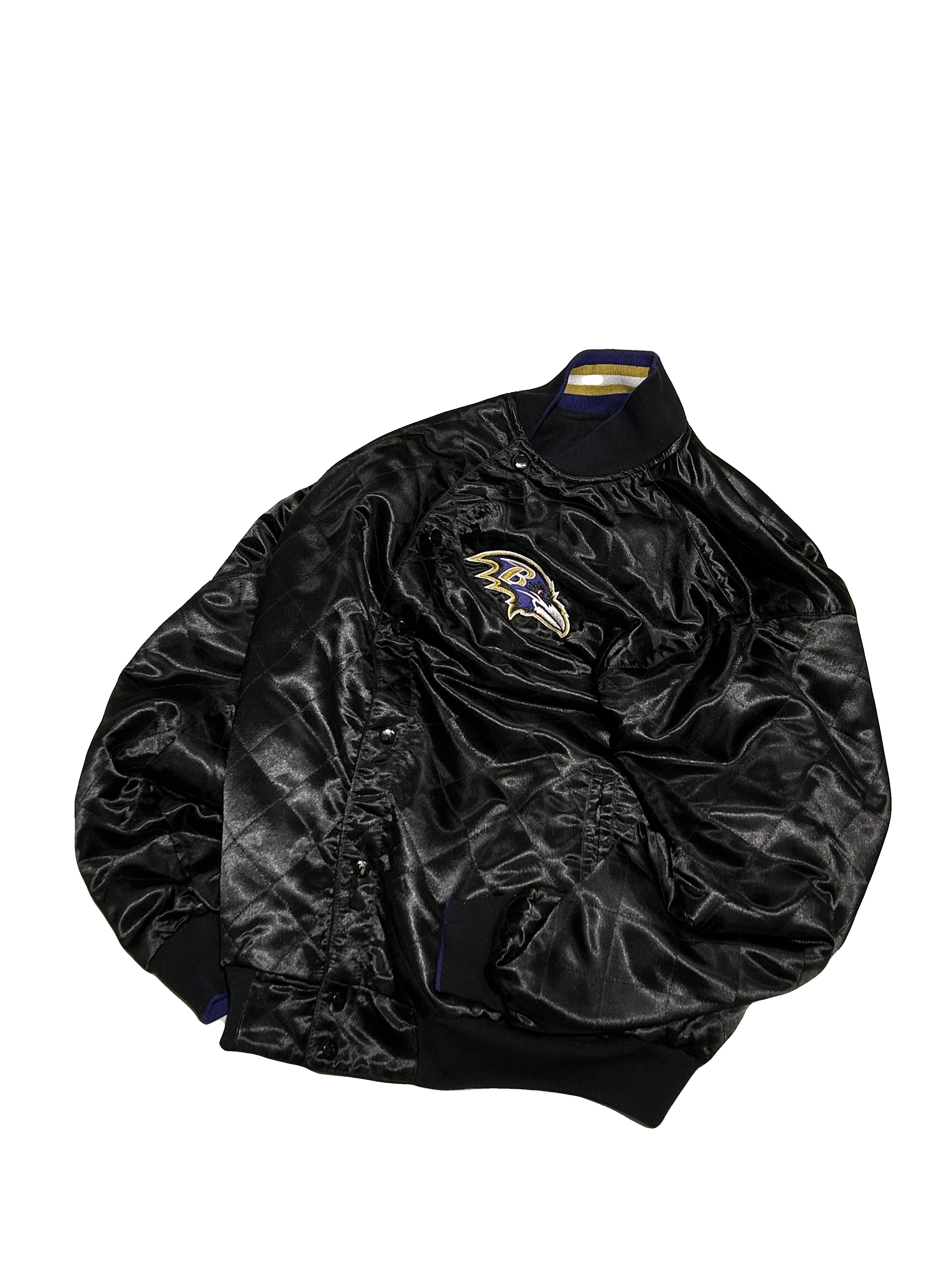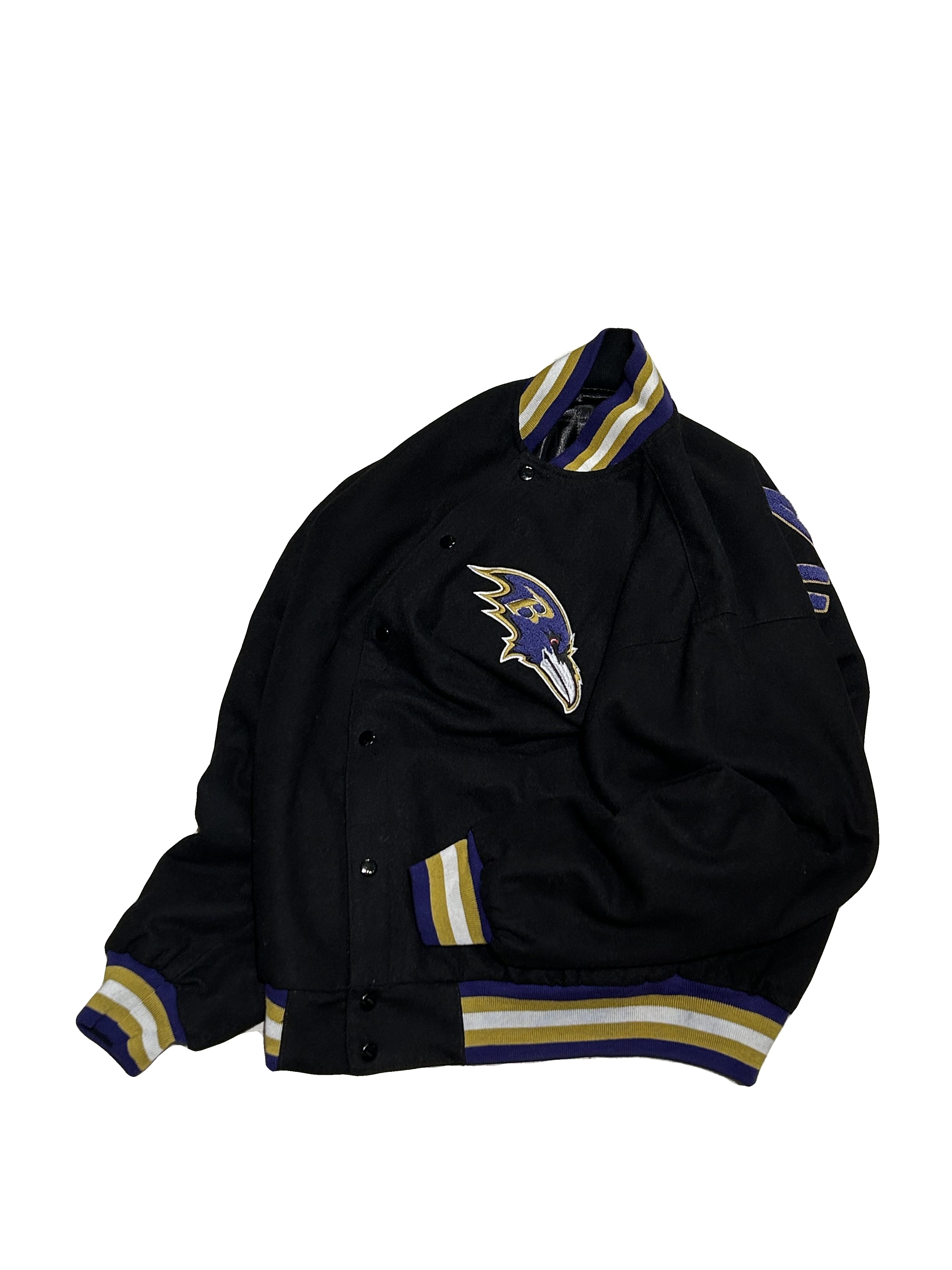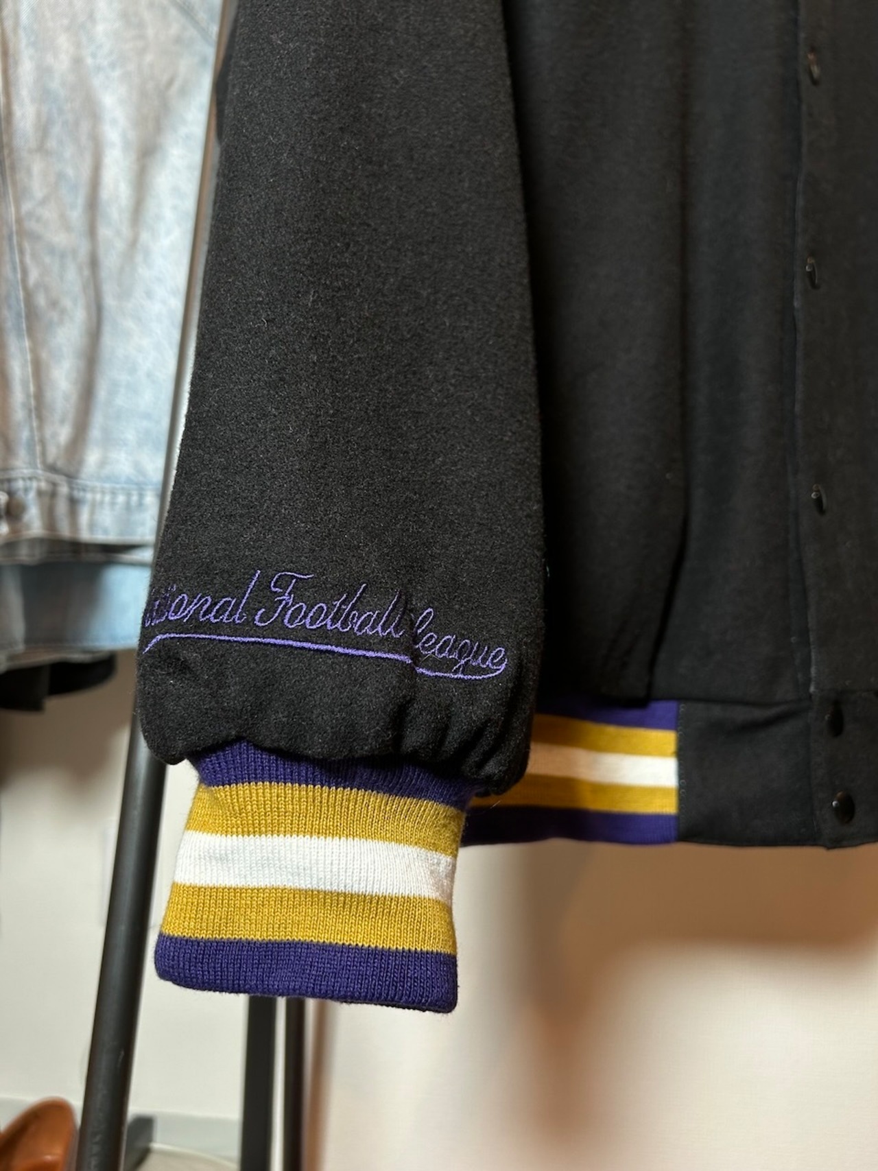 ご覧いただきありがとうございます!こちらの2008 Ravens reversible varsity jacket Sは、2008年製のNFLボルティモアレイブンズのリバーシブルスタジャンです。全面ウールとサテンキルティングの切り返しデザインが特徴的で、両面とも一軍級のスタイルを誇ります。どちらの面でも着用できるため、その日の気分やコーディネートに合わせて自由にスタイルを楽しめるのが魅力、必ず重宝します!