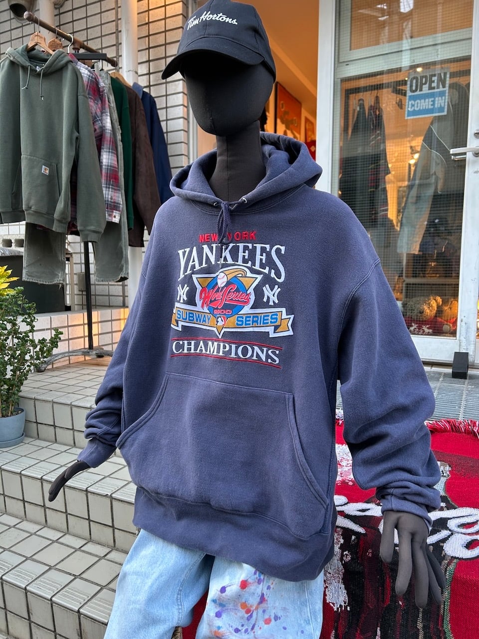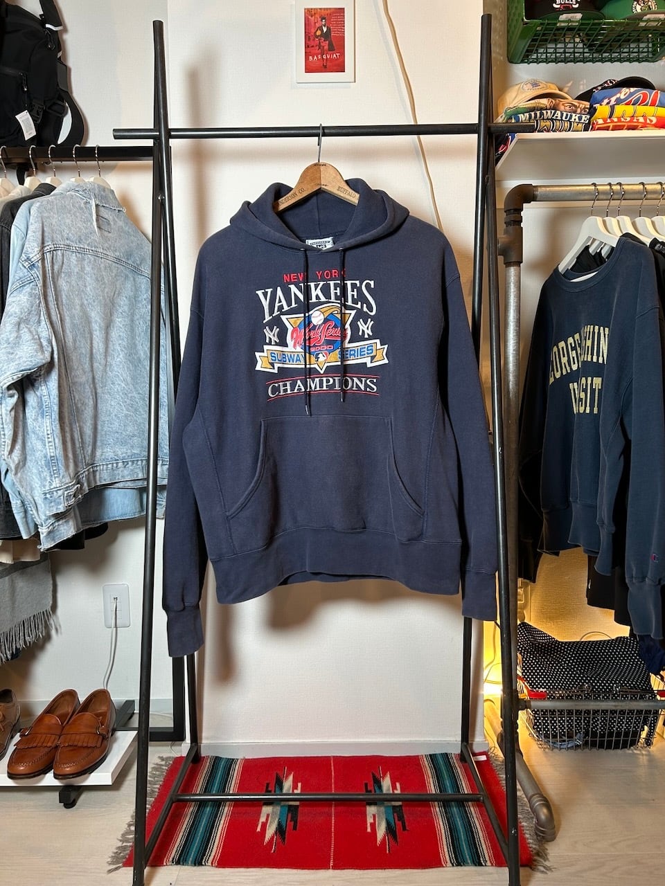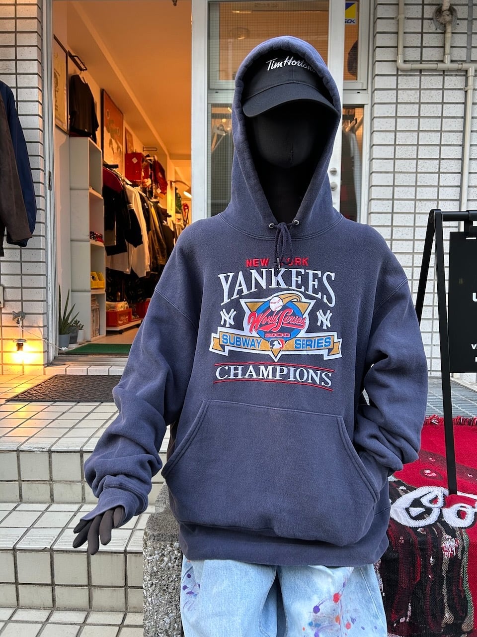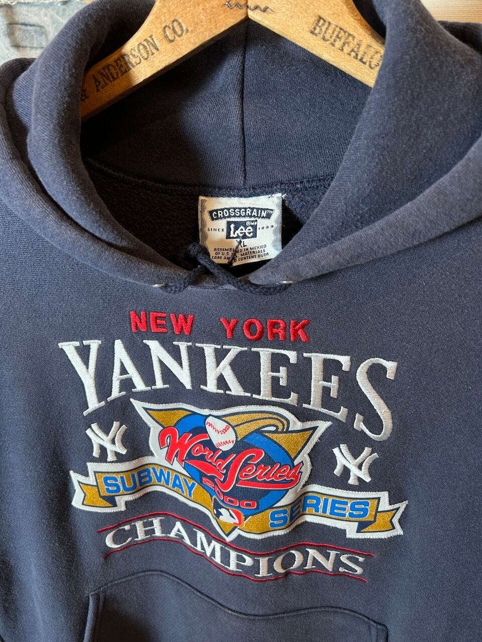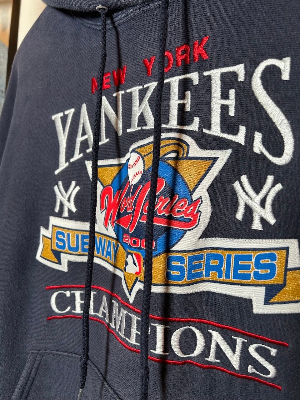 ご覧いただきありがとうございます!こちらの2000 Yankees hoodie XLは、2000年製のヤンキース刺繍入りパーカーです。対メッツとのワールドシリーズ、通称サブウェイシリーズを記念した特別な一着です。プリントワッペンのレトロな風合いと光沢のある刺繍が絶妙なバランス!