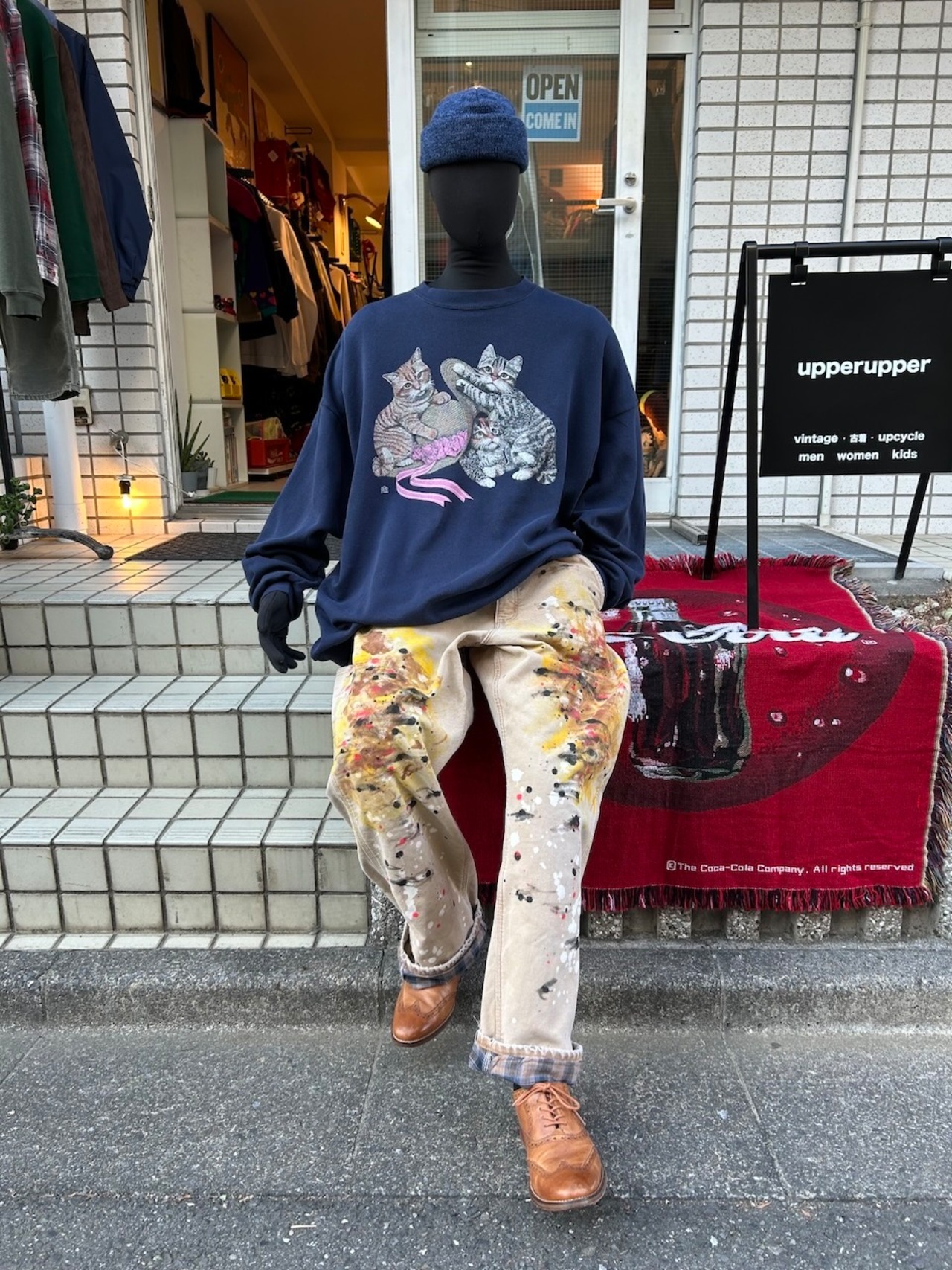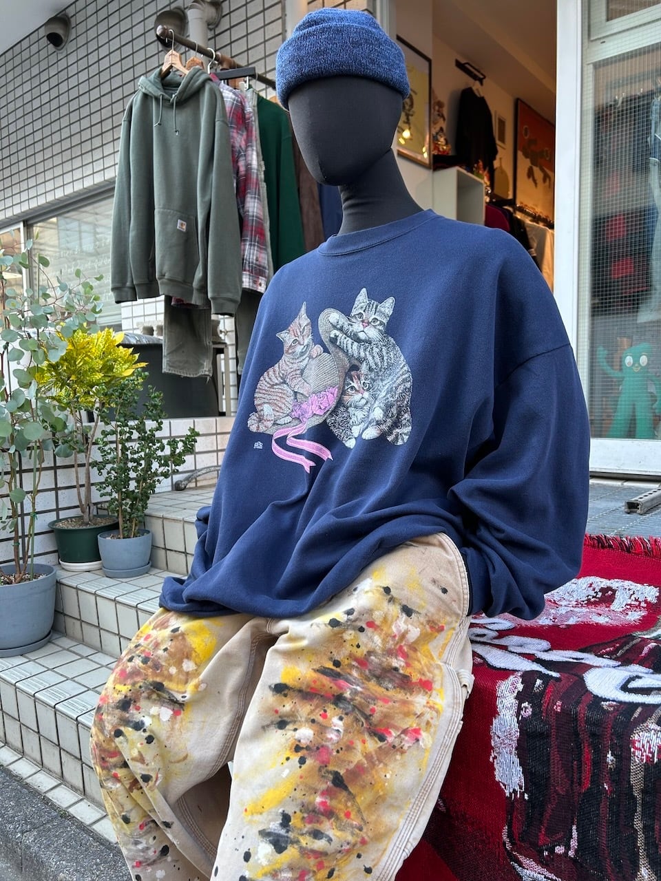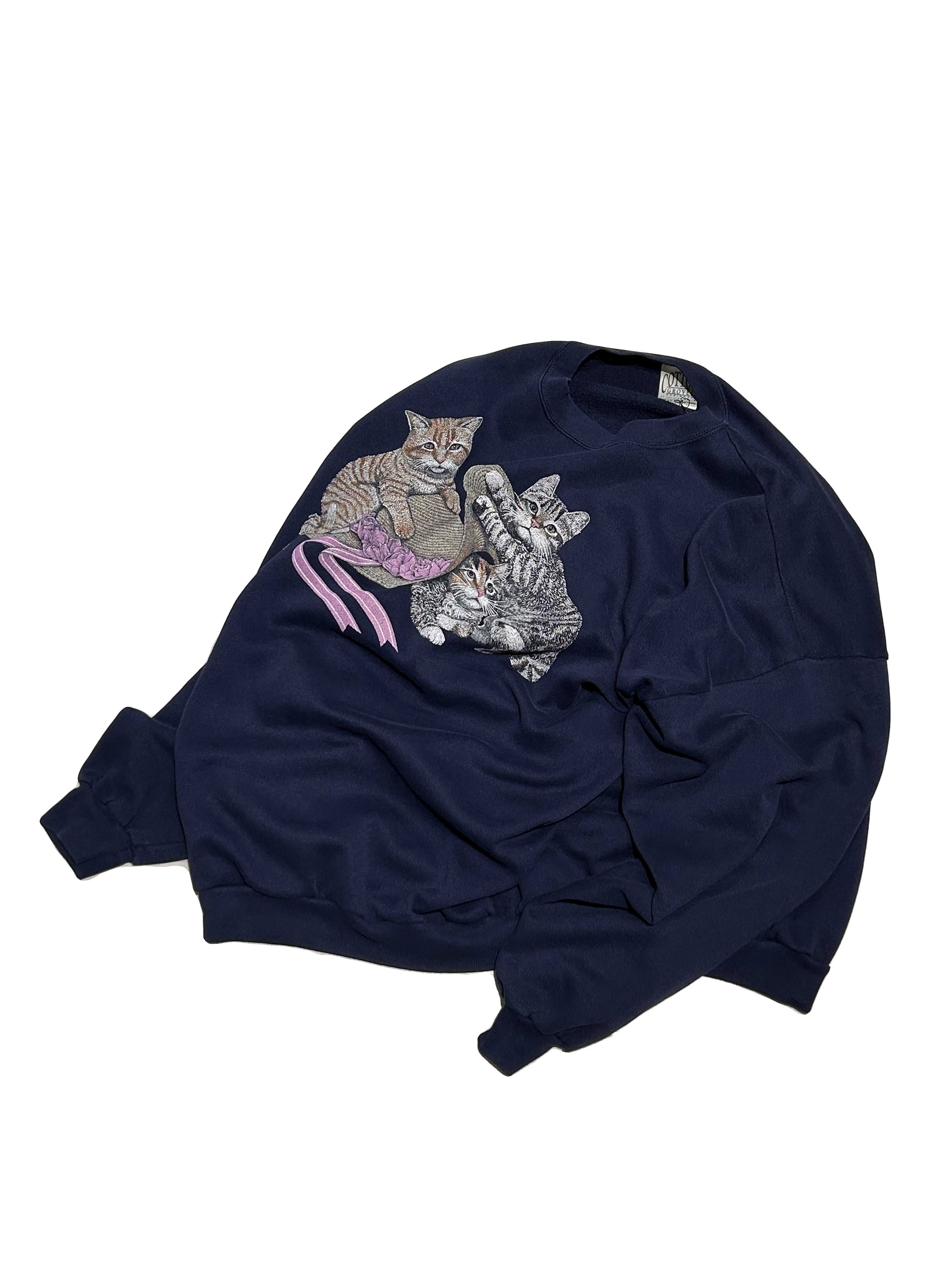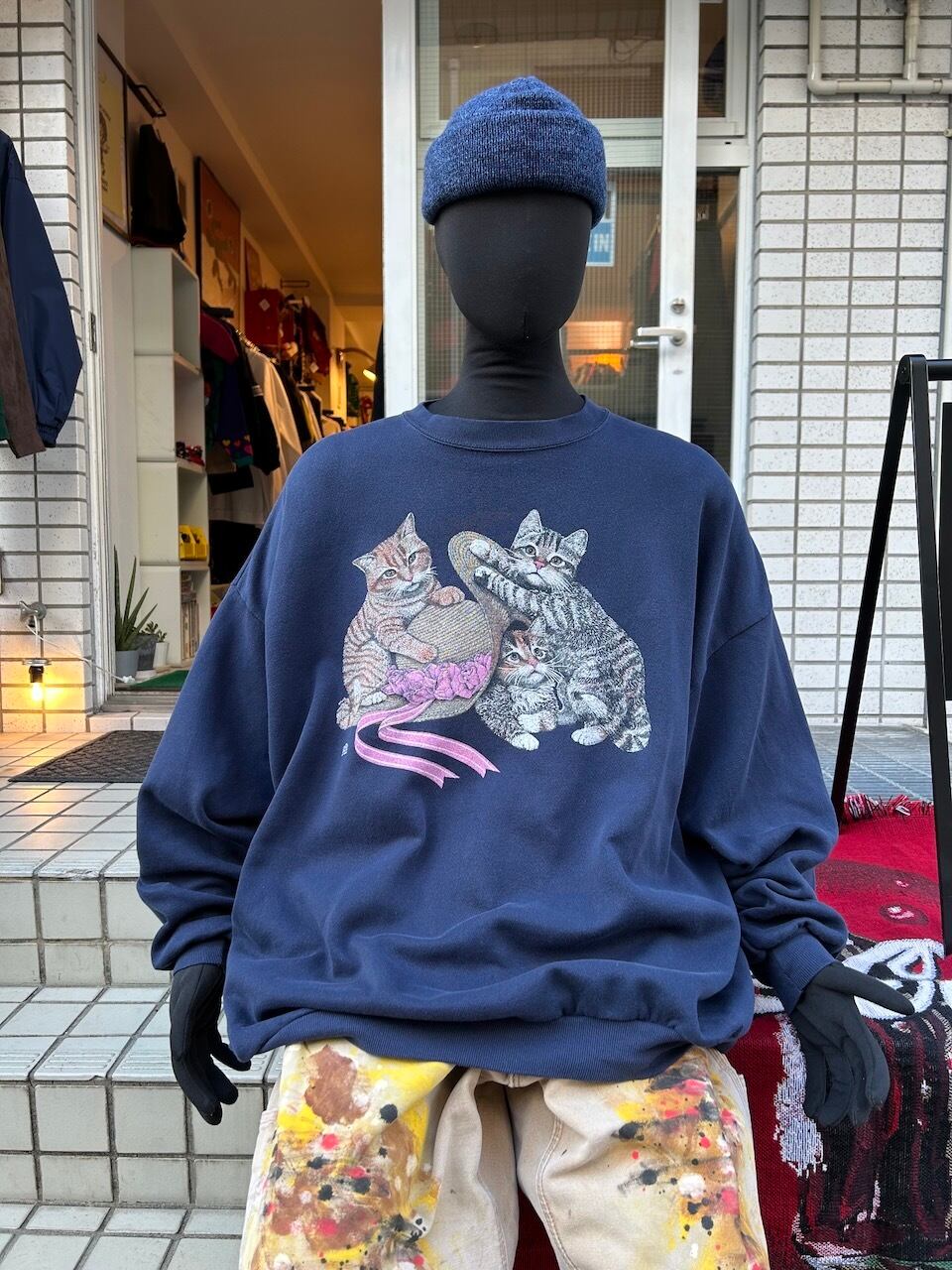 ご覧いただきありがとうございます!こちらの90's cat sweatshirt 3XLは、90年代アメリカ製のネコイラストが愛らしいスウェットです。麦わら帽子はレトロ感を感じさせ、三匹の子猫たちにはリアルな愛らしさしかありません。3XLビッグサイズのゆったりとしたシルエットで抜群のゆるさです。