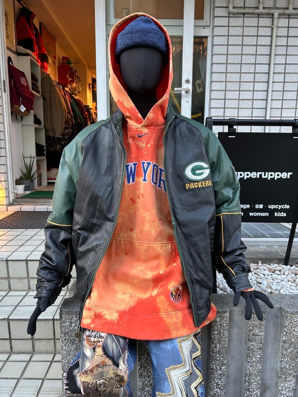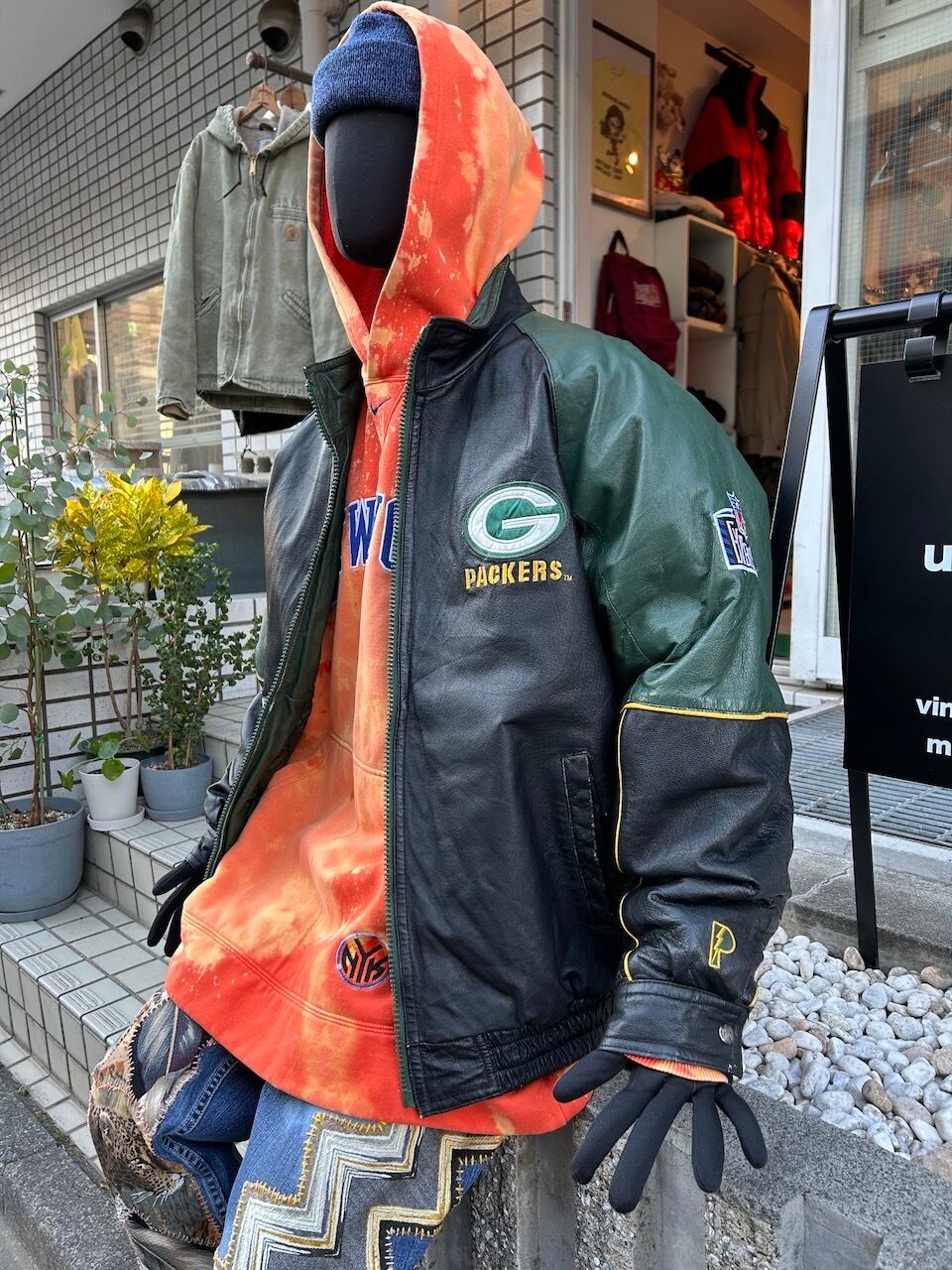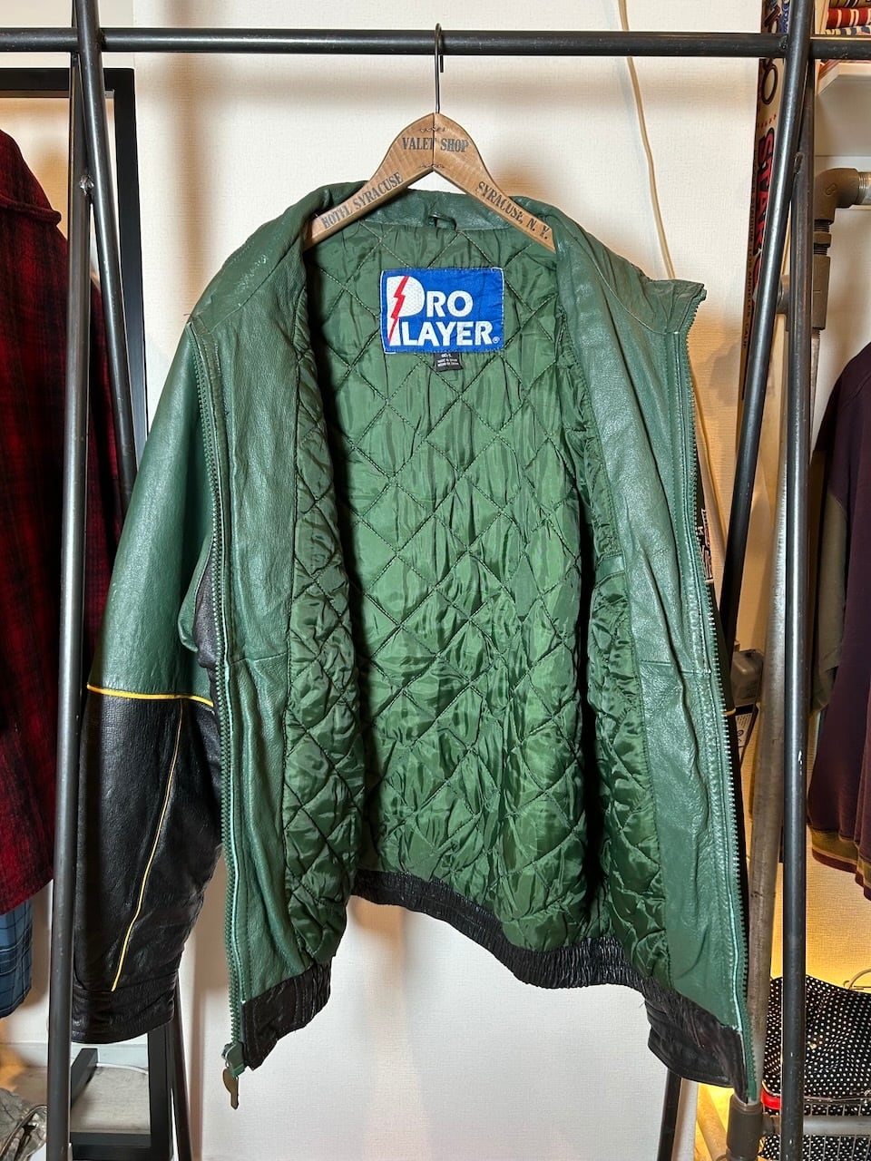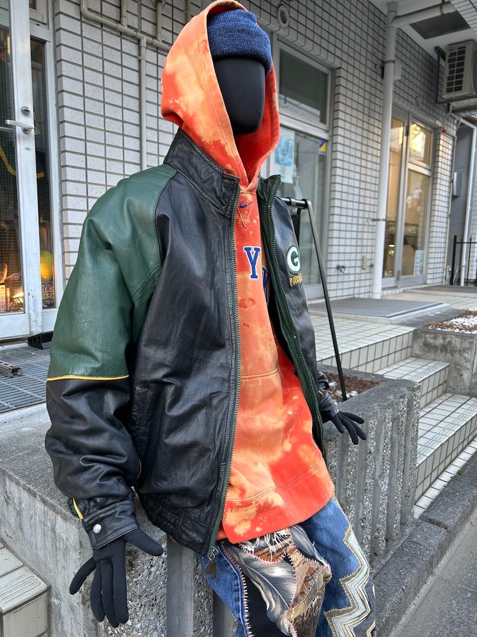 ご覧いただきありがとうございます!こちらの90's Packers leather jacket Lは、90年代のプロプレイヤー製NFLグリーンベイパッカーズレザージャケットです。しっかりとしたレザー素材に、ナイロンのキルティング裏地が施されているので保温性は高く、デザインや配色は非常に洗練されています。パッカーズのチームカラーが魅力的で、ファッション性も高いので活躍間違いなし。