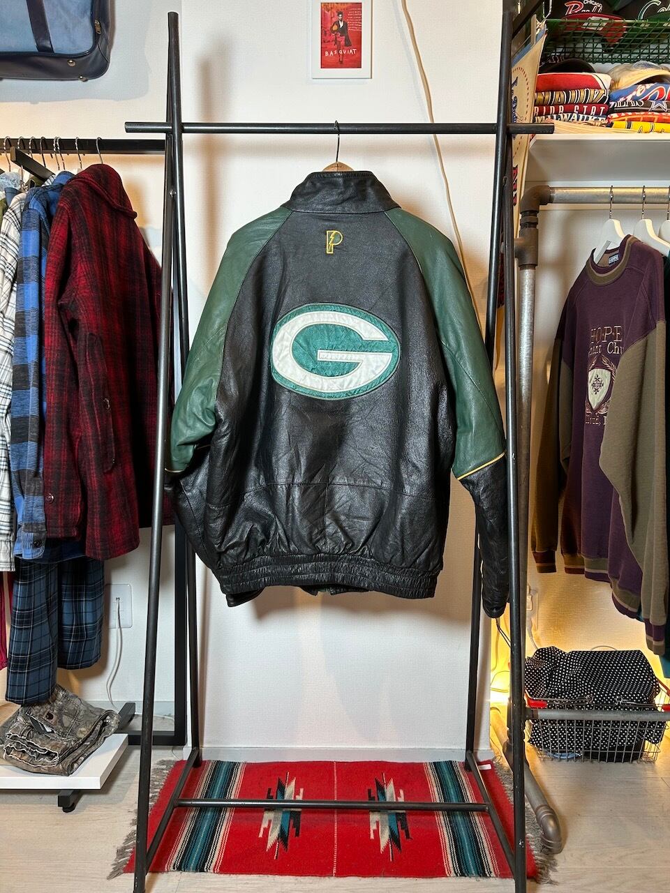 90's Packers leather jacket L