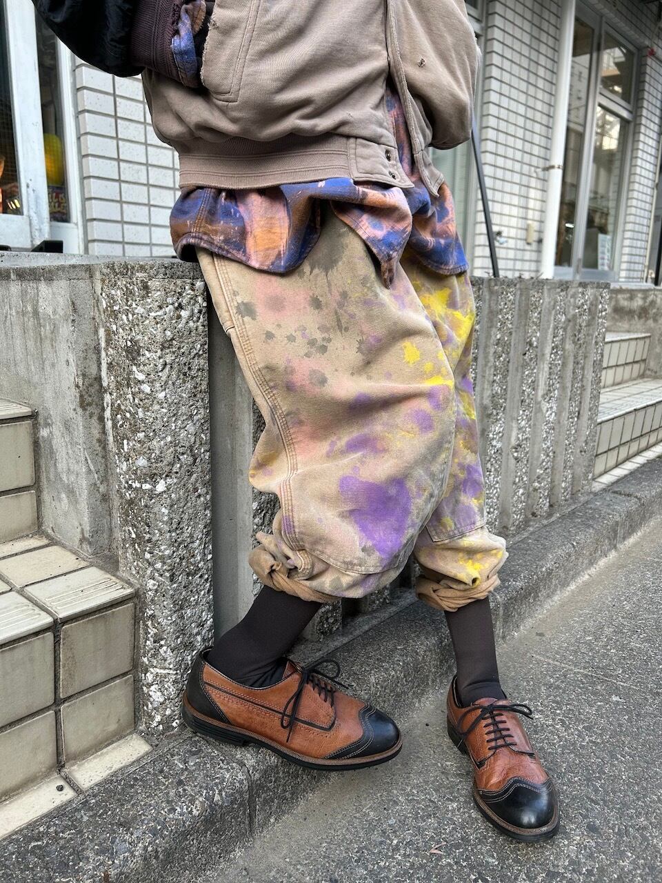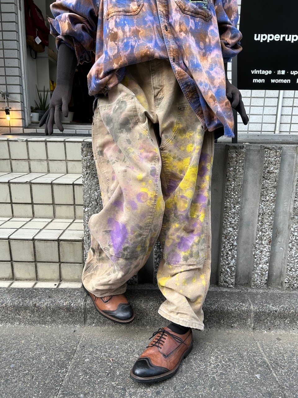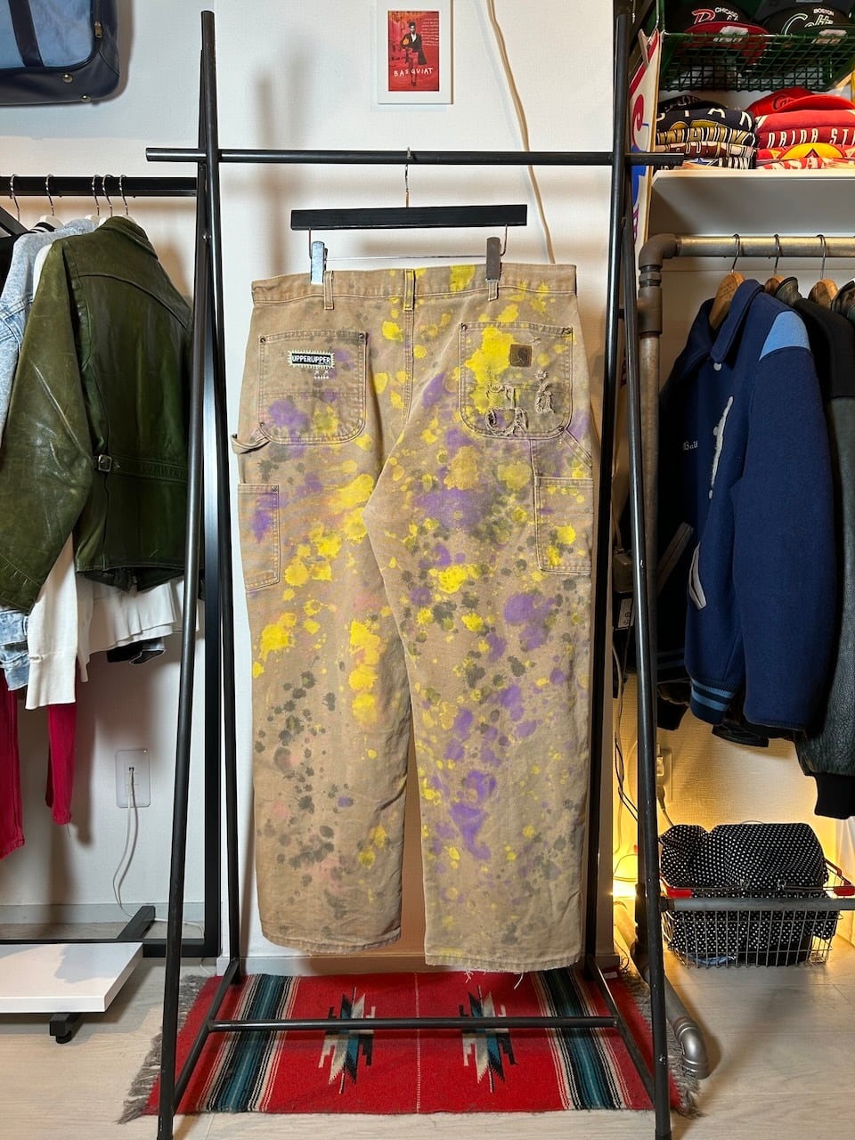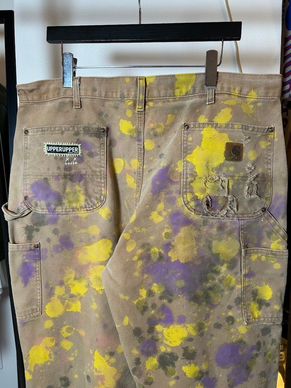 ご覧いただきありがとうございます!こちらのUPRUPR upcycle pants W38は、2000年代のカーハートダブルニーダックパンツを使用したアップサイクル品です。程よいダメージ感のあるボディに、大胆なペイント加工を施したアートな一枚です。人気の定番アイテムに手作業で個性を持たせた、ユニークな存在感を楽しめるアイテムとなっています。