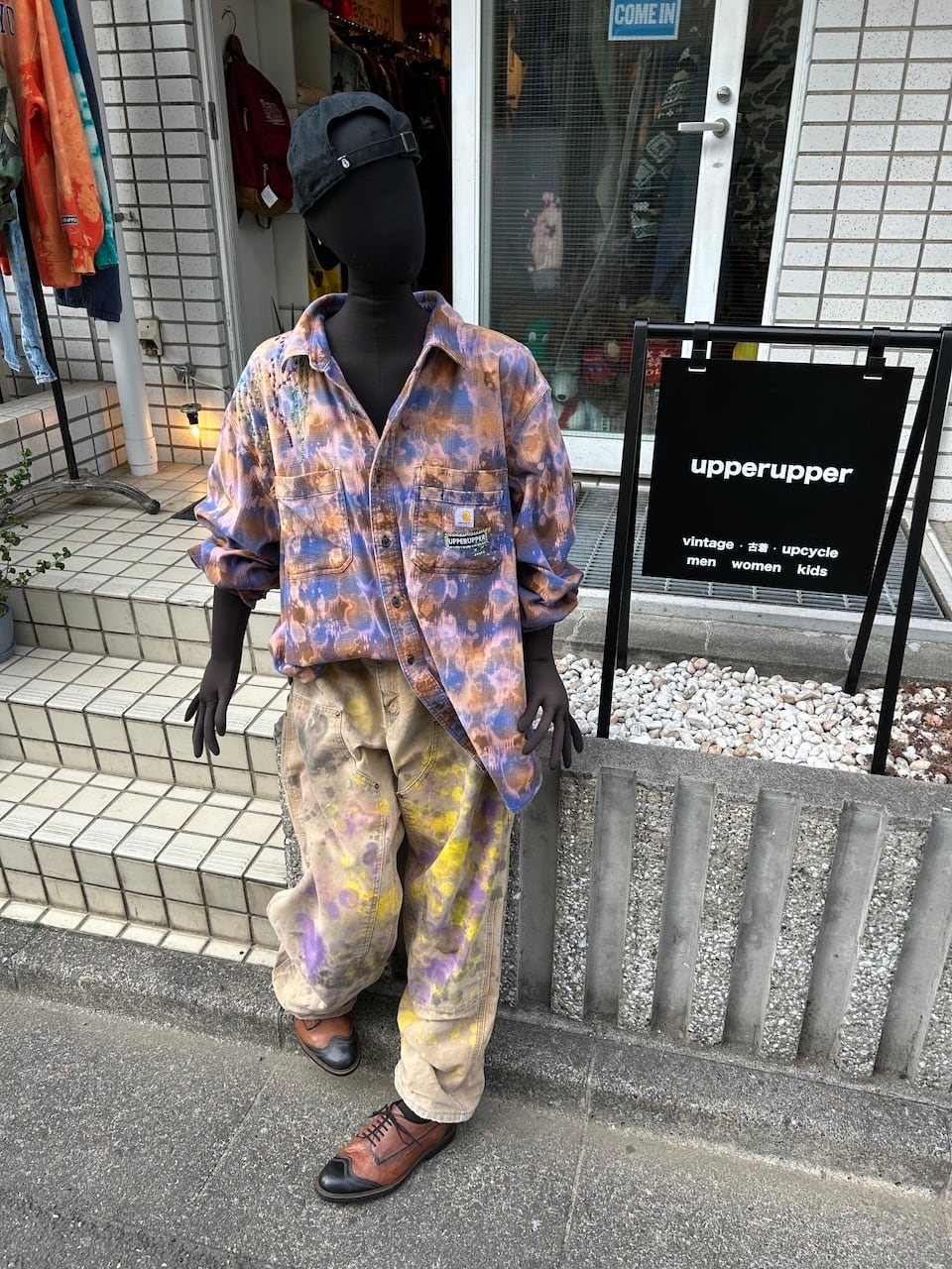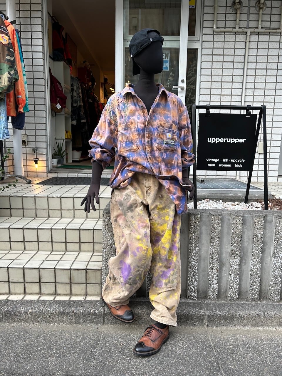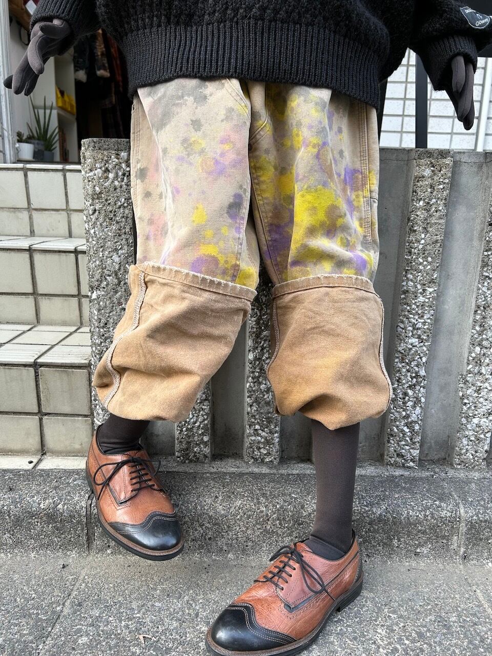 ご覧いただきありがとうございます!こちらのUPRUPR upcycle pants W38は、2000年代のカーハートダブルニーダックパンツを使用したアップサイクル品です。程よいダメージ感のあるボディに、大胆なペイント加工を施したアートな一枚です。人気の定番アイテムに手作業で個性を持たせた、ユニークな存在感を楽しめるアイテムとなっています。