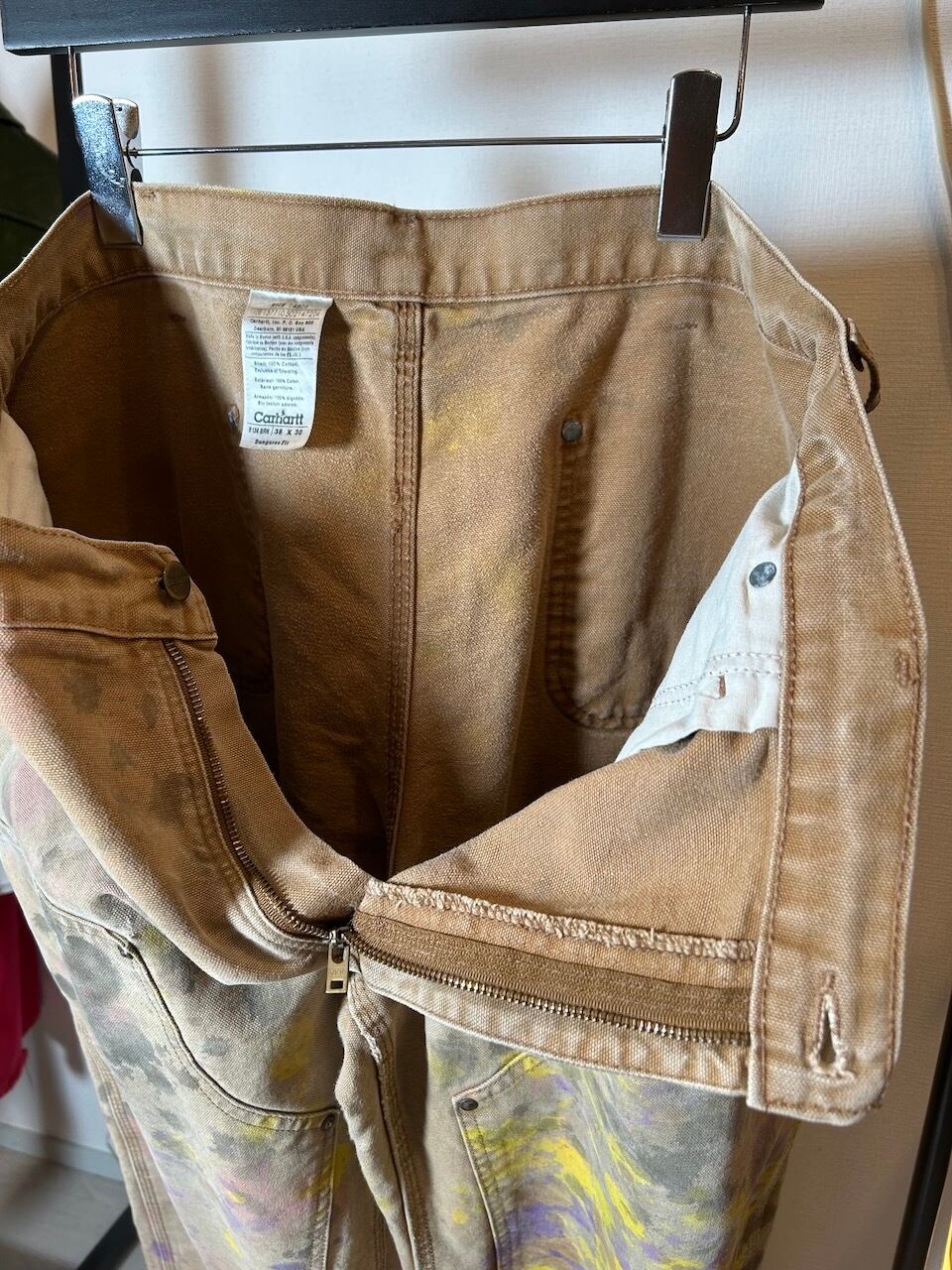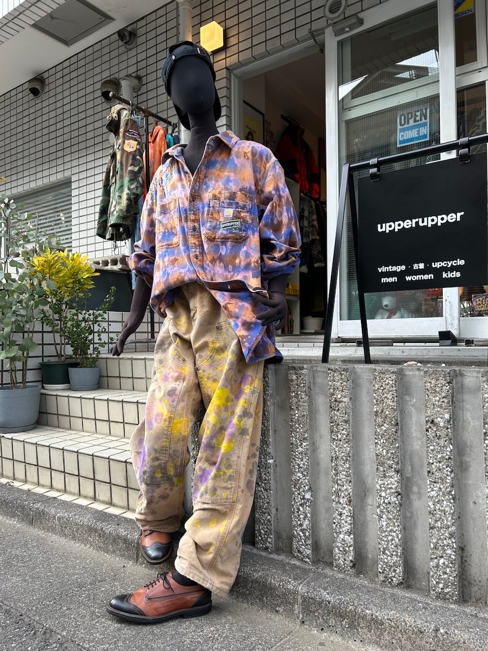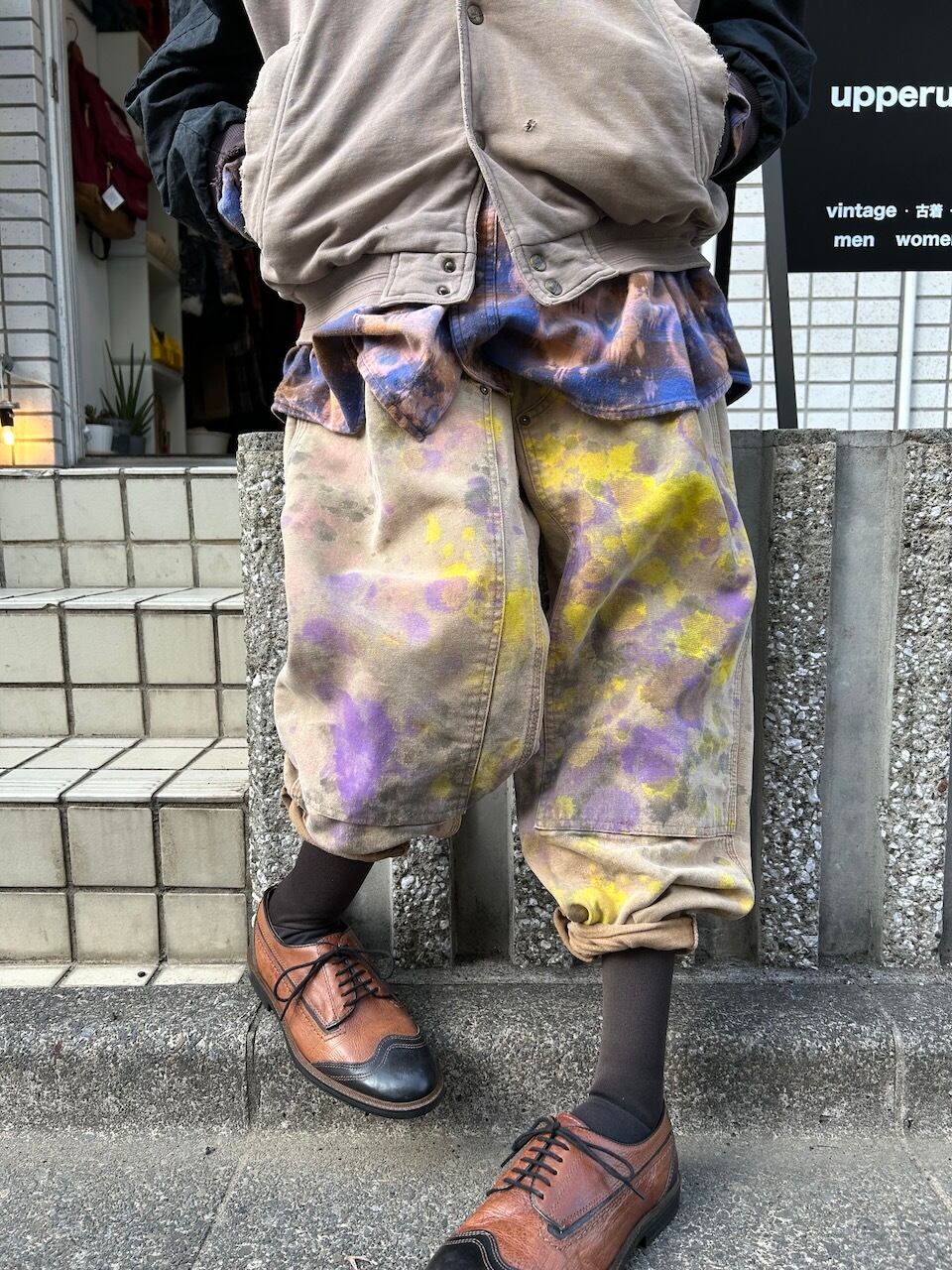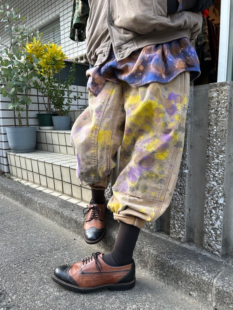 ご覧いただきありがとうございます!こちらのUPRUPR upcycle pants W38は、2000年代のカーハートダブルニーダックパンツを使用したアップサイクル品です。程よいダメージ感のあるボディに、大胆なペイント加工を施したアートな一枚です。人気の定番アイテムに手作業で個性を持たせた、ユニークな存在感を楽しめるアイテムとなっています。