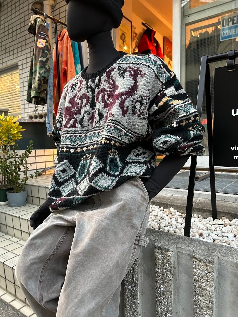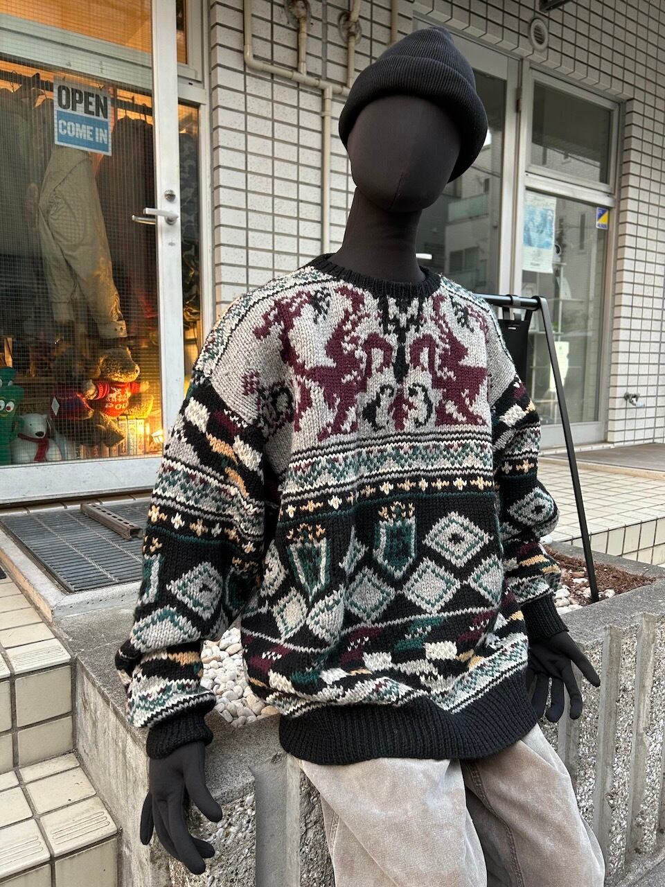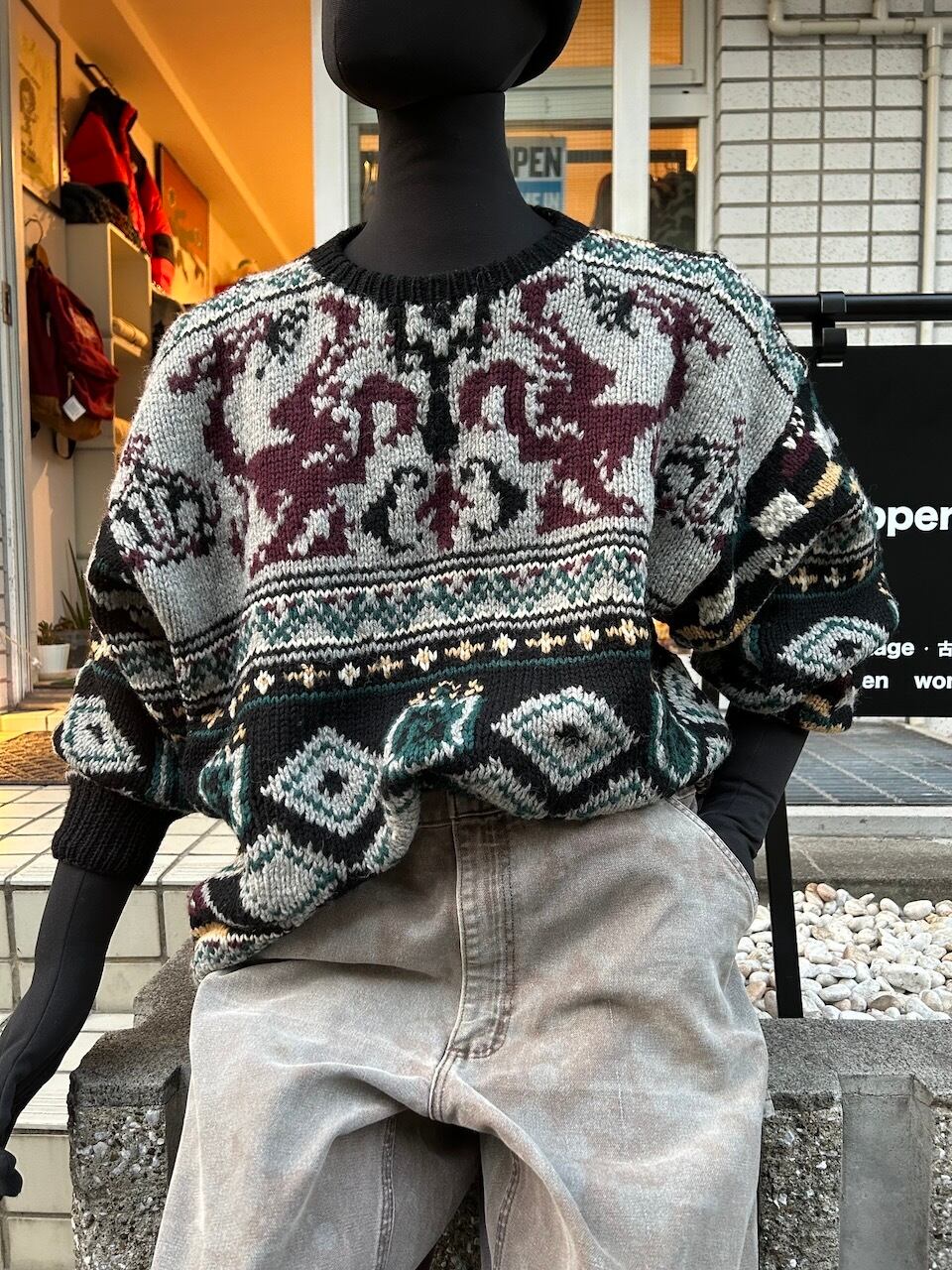 90's hand-knit sweater M