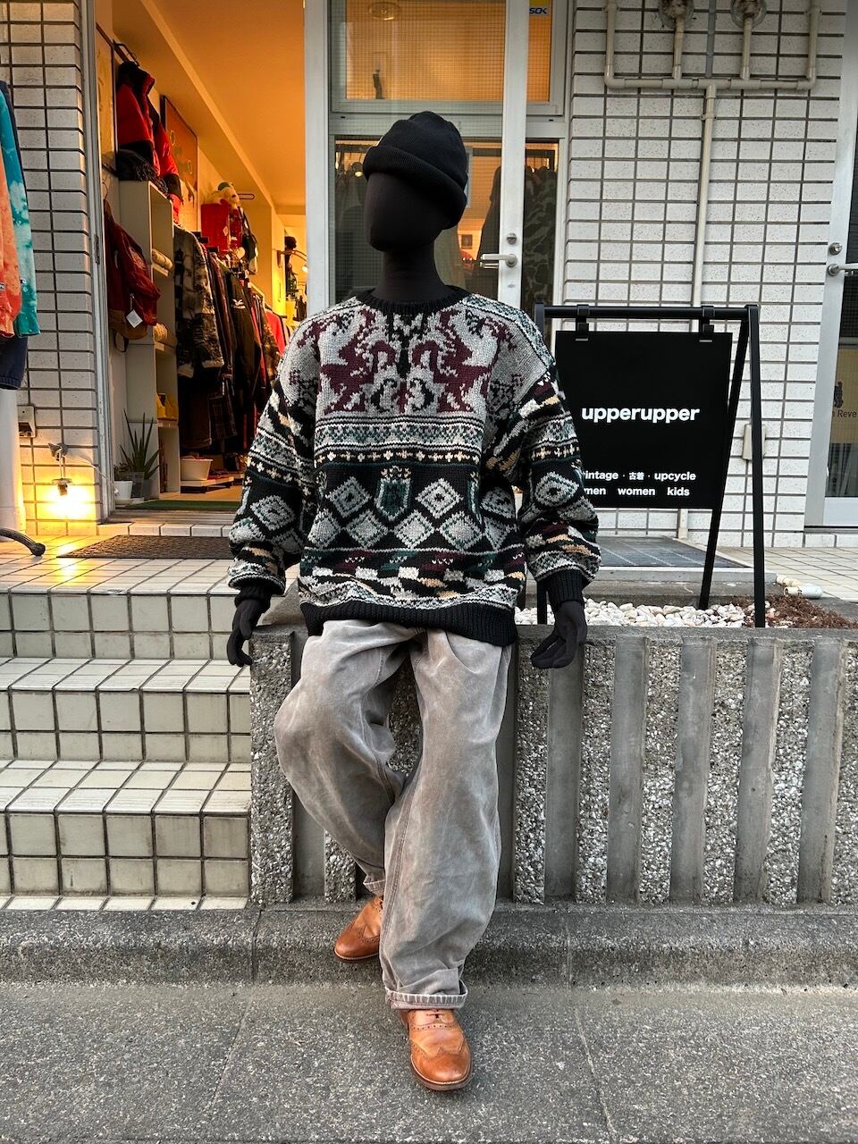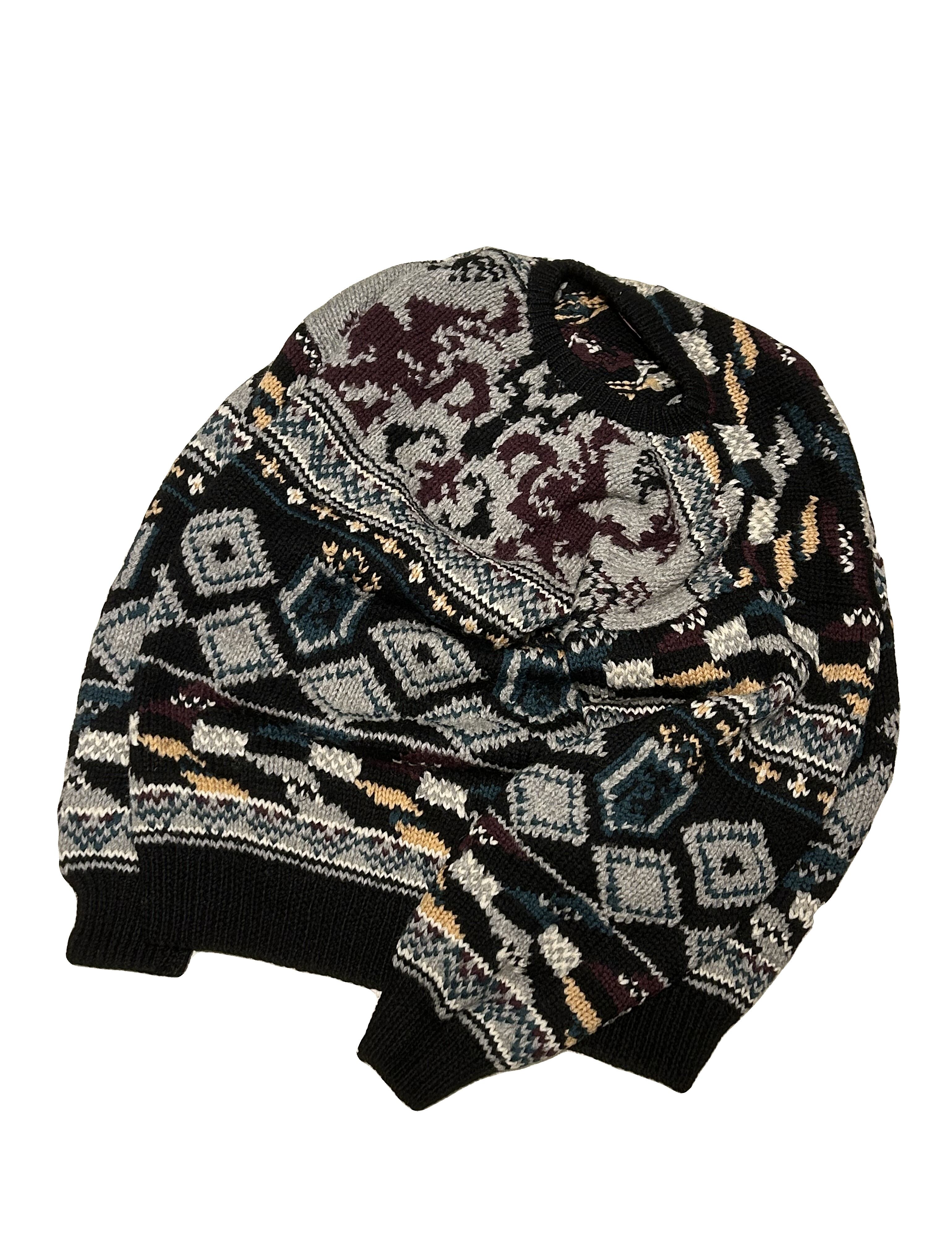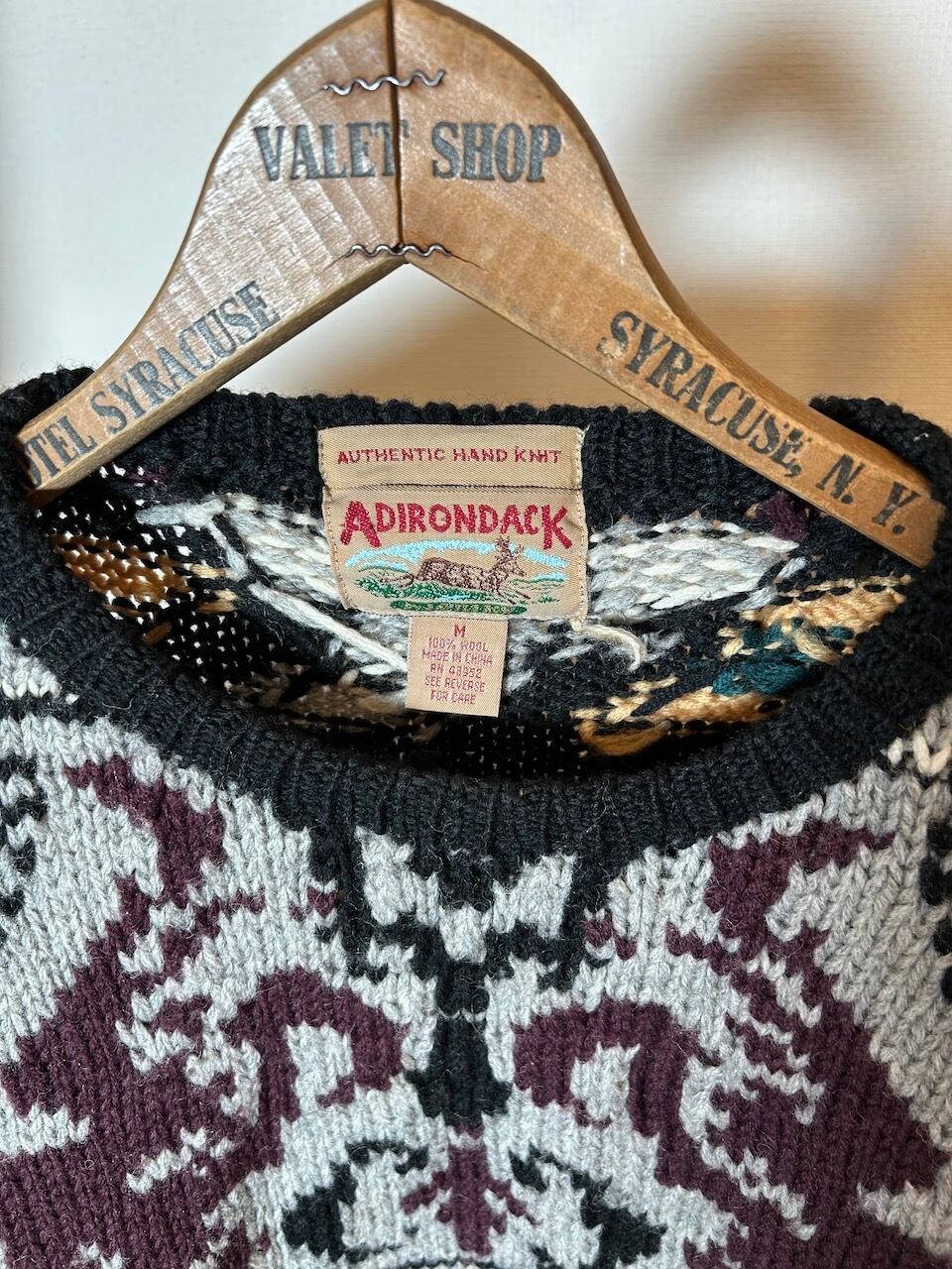 ご覧いただきありがとうございます!こちらの90's hand-knit sweater Mは、1990年代のAdirondack製のハンドニットウールセーターです。オールウールの素材が持つ重さと柔らかさが絶妙に融合し、高級感漂う洗練されたハンドニットによるデザインが特徴です。クルーネックの柄ニットは着やすく、スタイルしやすい一着です。