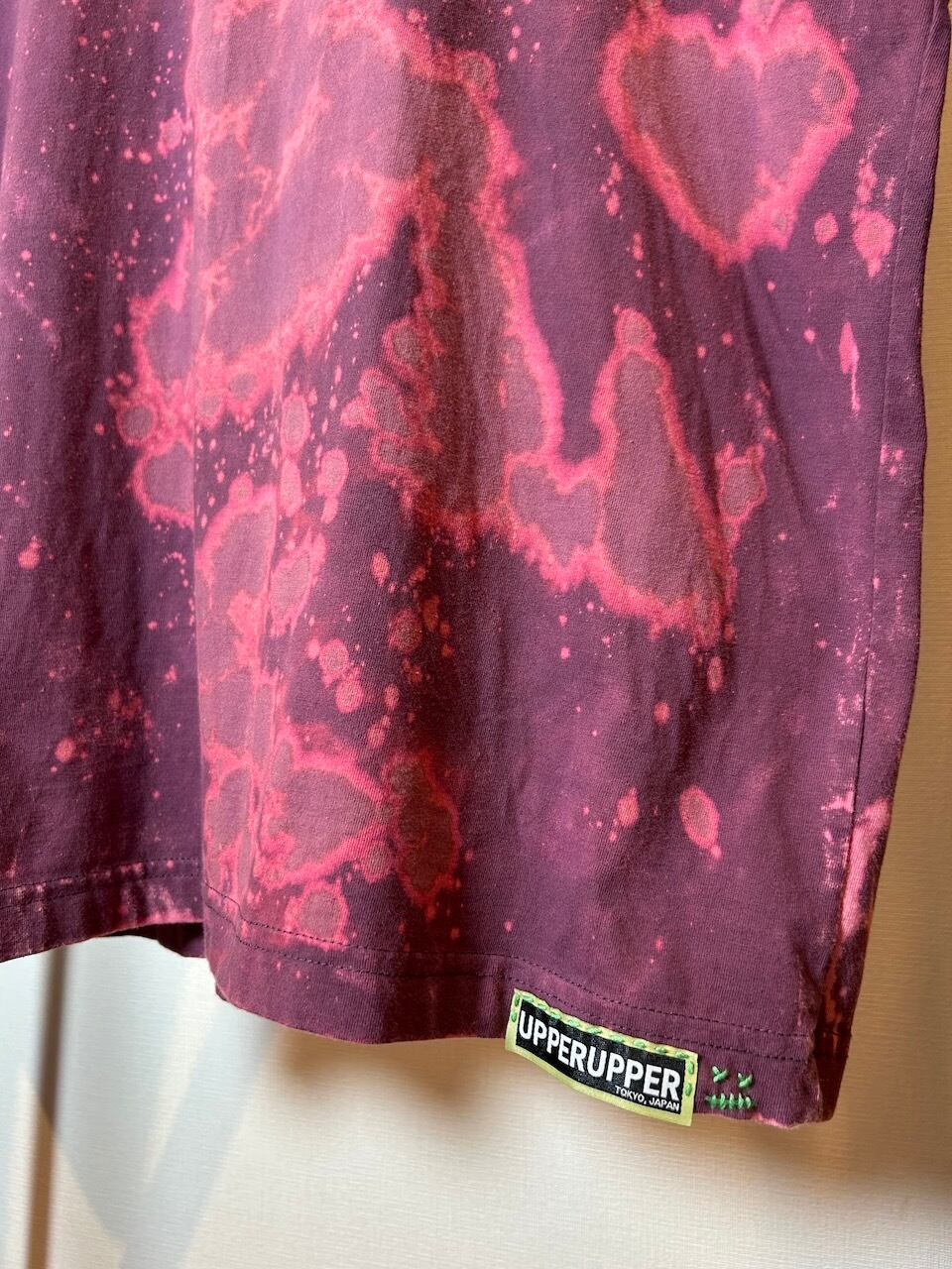 ご覧いただきありがとうございます!こちらのUPRUPR upcycle Tee Lは、カナダ製のエディバウアーを使用したアップサイクル品です。大胆かつ巧妙な変色加工を施し、クラシックな定番ブランドTシャツに新鮮な雰囲気を持たせました。絶妙な配色が融合し、独特の風合いを放つ一着に仕上がっています。