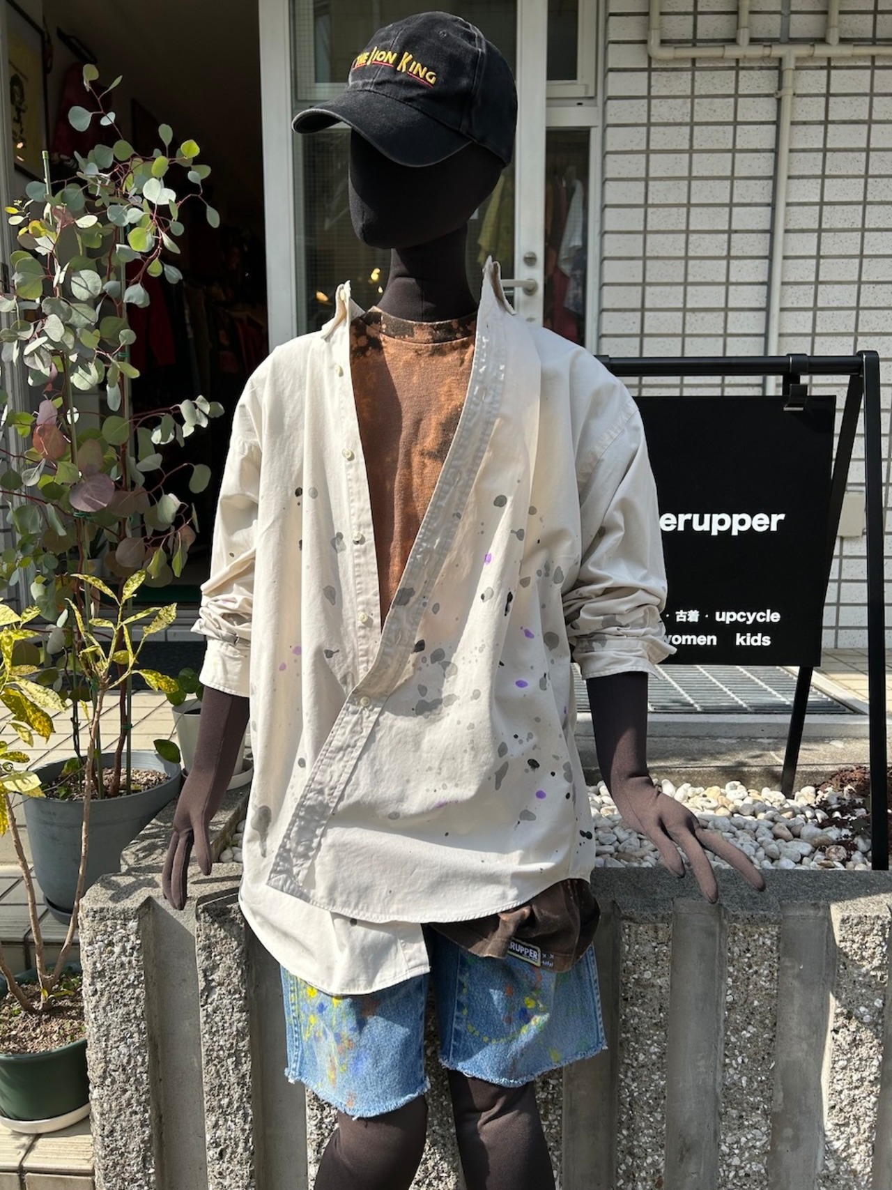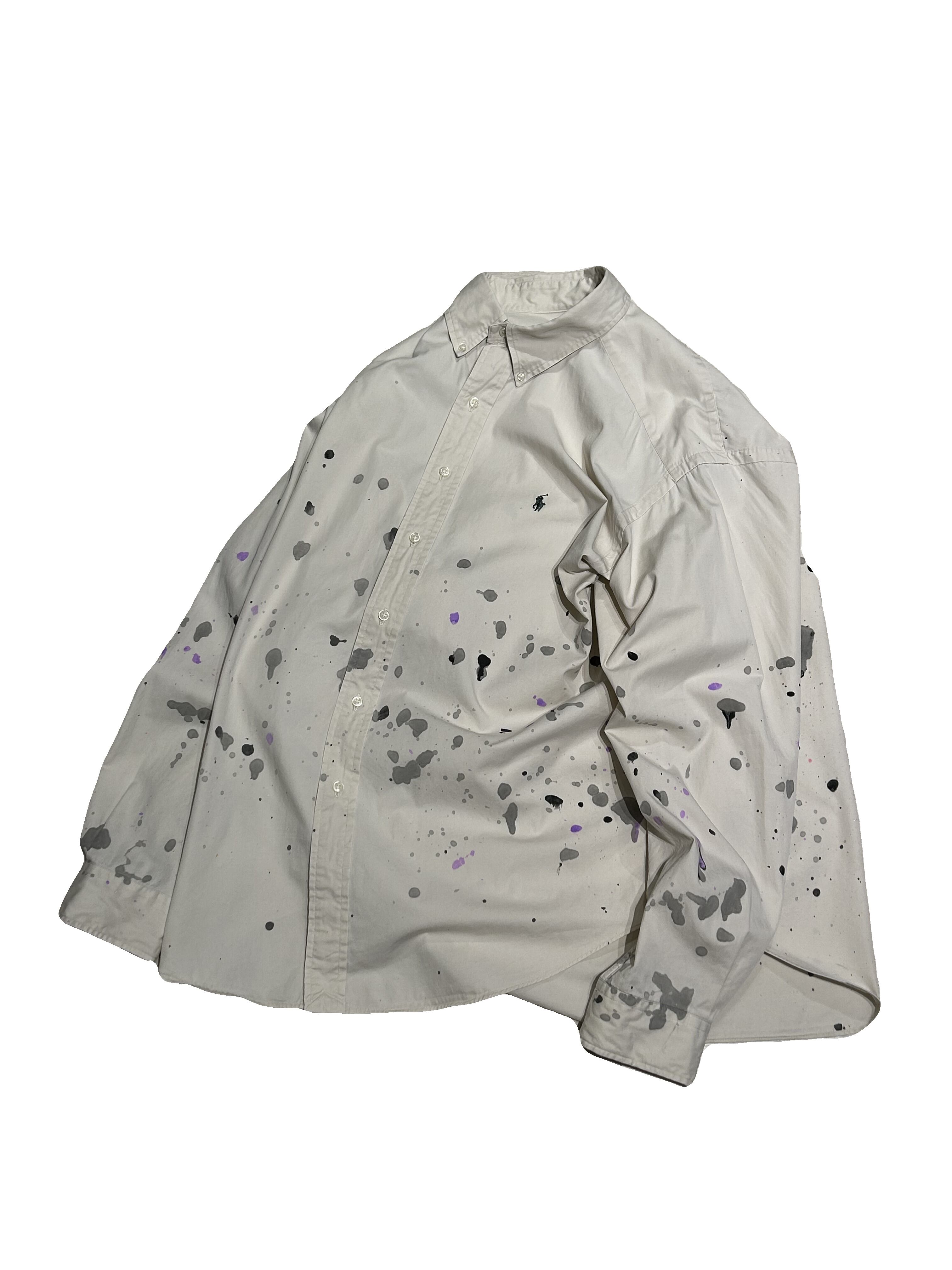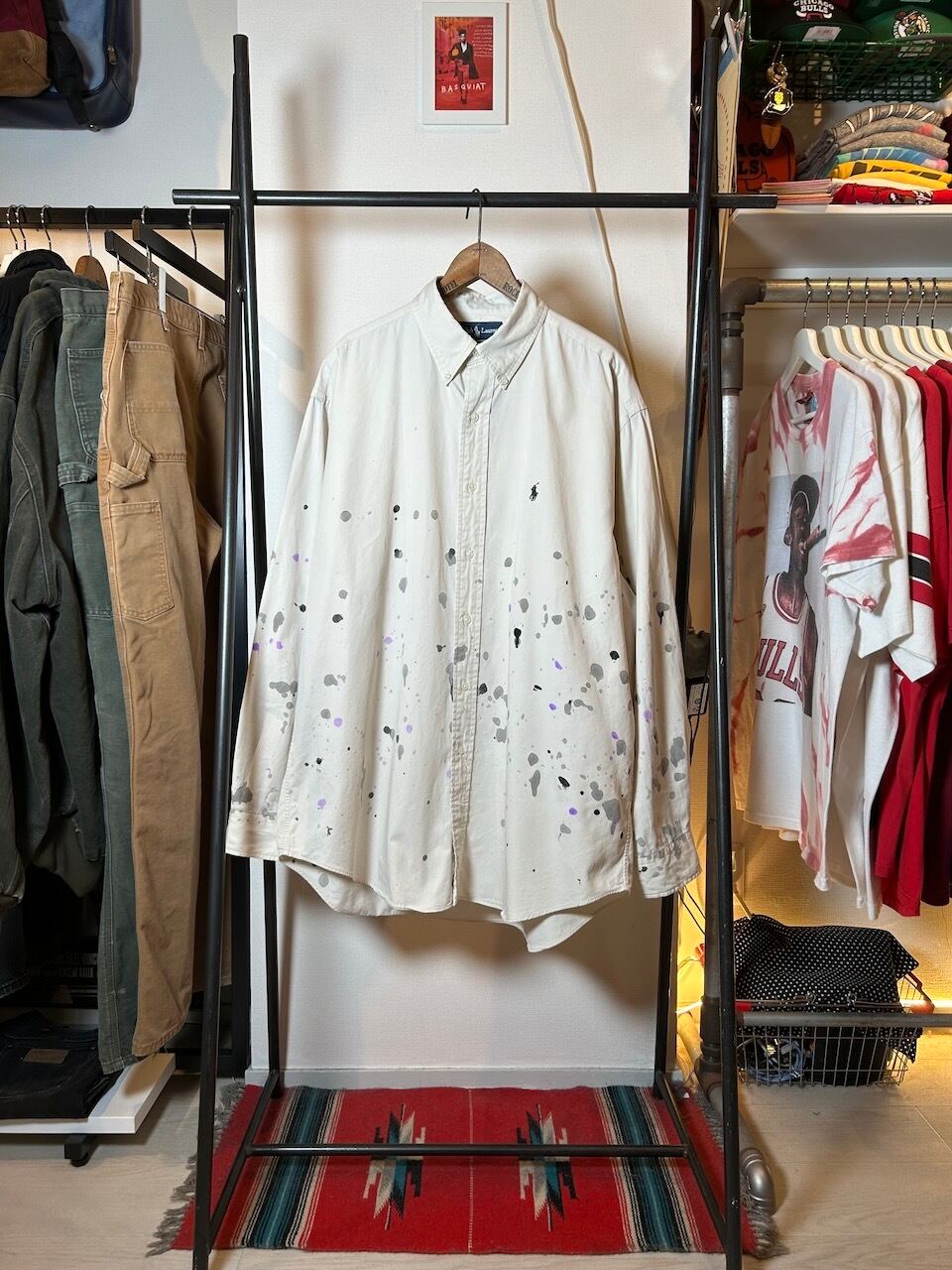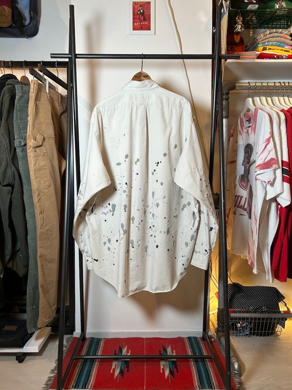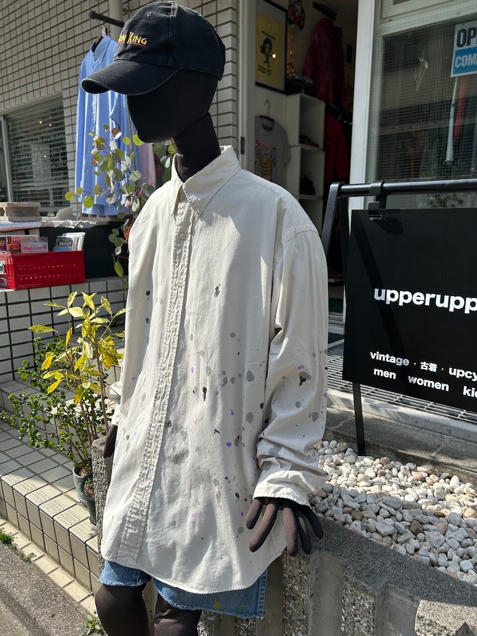 こちらの UPRUPR upcycle shirt Lは、2000年頃のラルフローレンシャツを使用したアップサイクル品です。シンプルな定番のボタンダウンにカラフルなペイントを散りばめたデザインで、ラフなアート感とワーク感を演出しました。