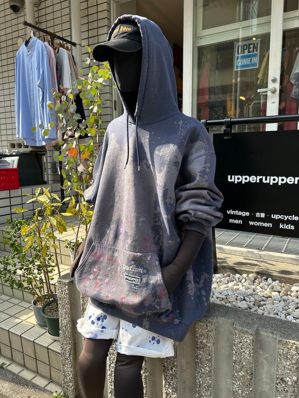 こちらの UPRUPR upcycle hoodie 2XLは、2000年代のカーハートを使用したアップサイクル品です。独自の変色加工で色むらを施し、カラフルなペイントを飛び散らし、ラフなアート感を演出しました。当時感溢れるゆるいシルエットの定番パーカーを、ユニークに仕上げた1着です。