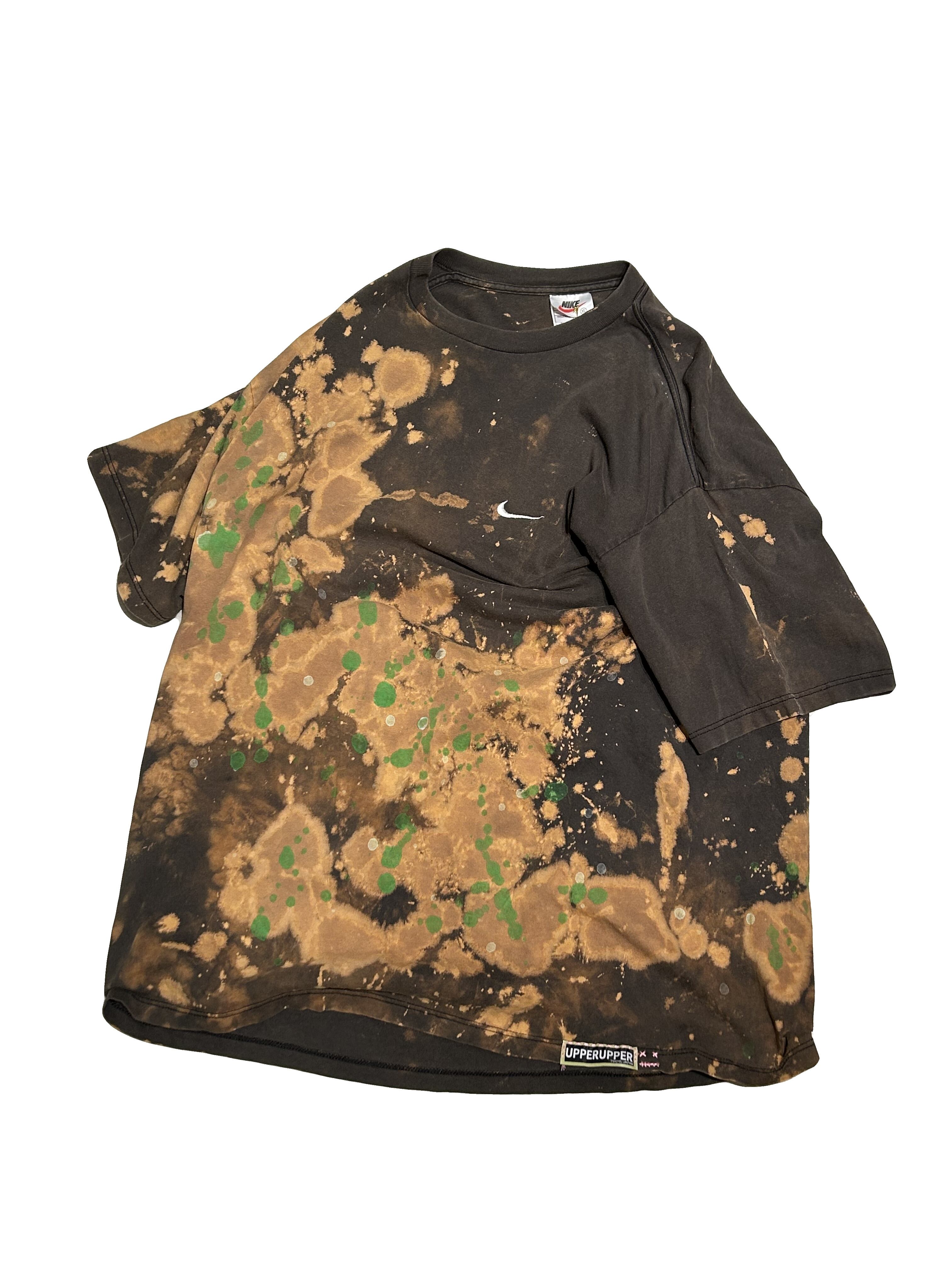 こちらの UPRUPR upcycle Tee XLは、90年代アメリカ製のNIKE Tシャツを使用したアップサイクル品です。大胆な変色加工とカラフルなペイントを施し、ラフなアート感を演出しました。当時感溢れるシルエットと生地感の定番Tシャツに、個性豊かな魅力を加えた一着に仕上がっています!
