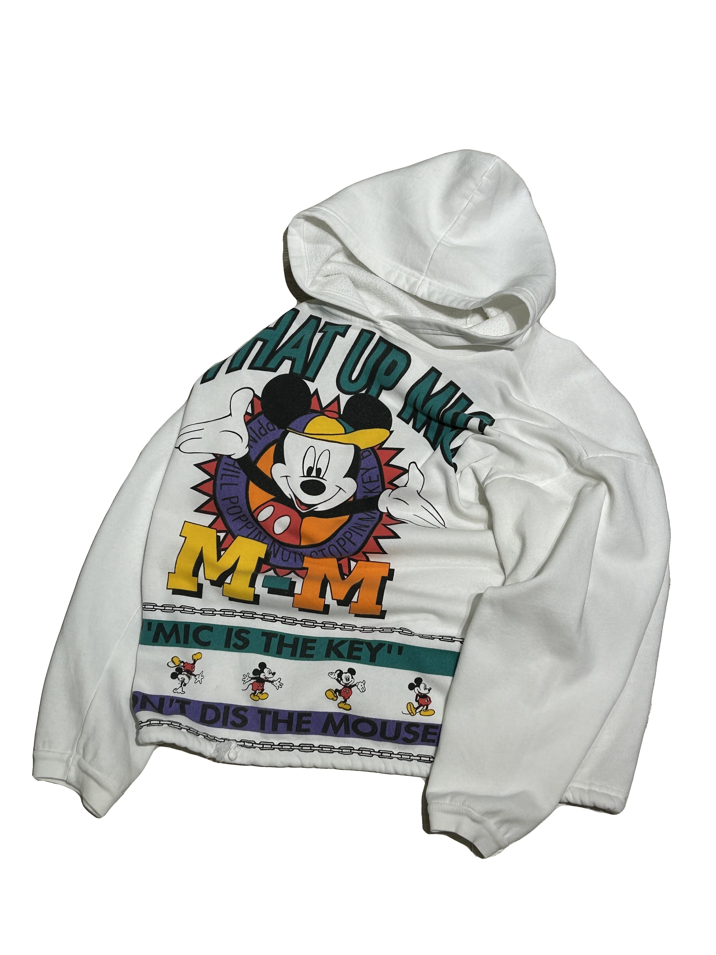 こちらの 90's Mickey hoodie Lは、90年代のミッキーのプリントパーカーです。クロスカラーズを彷彿とさせるデザインとミッキーのコラボっぷりが可愛すぎ。レトロ感溢れるシルエットと生地感、さらに、白ボディで使い勝手も抜群な一枚です!